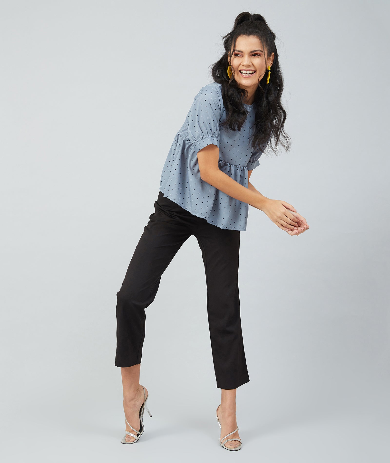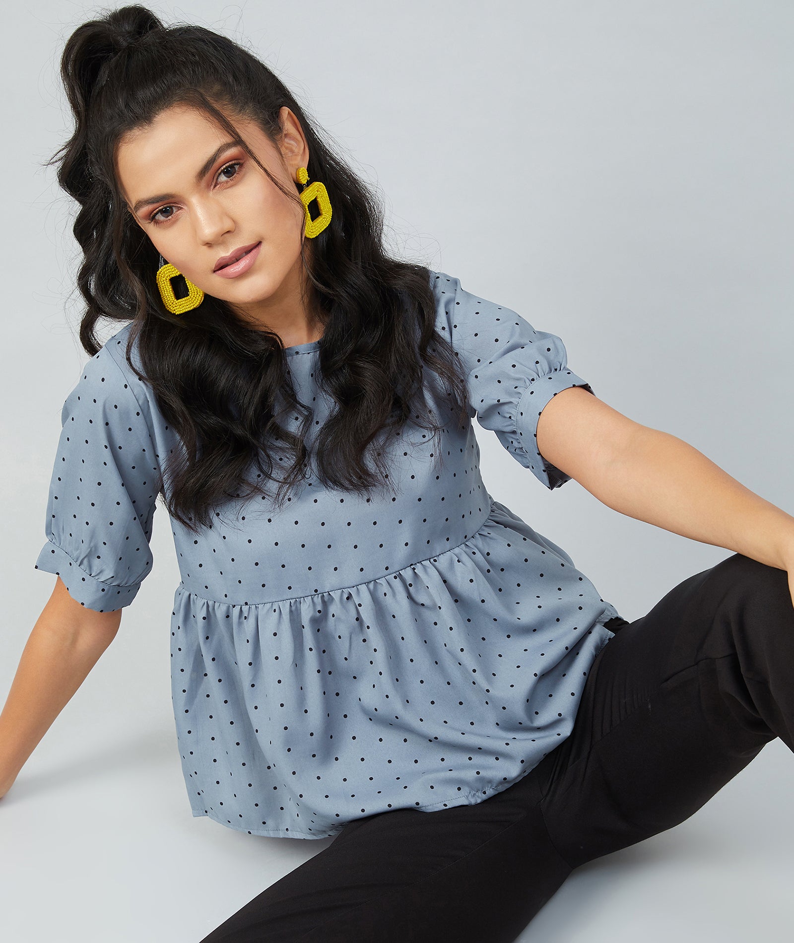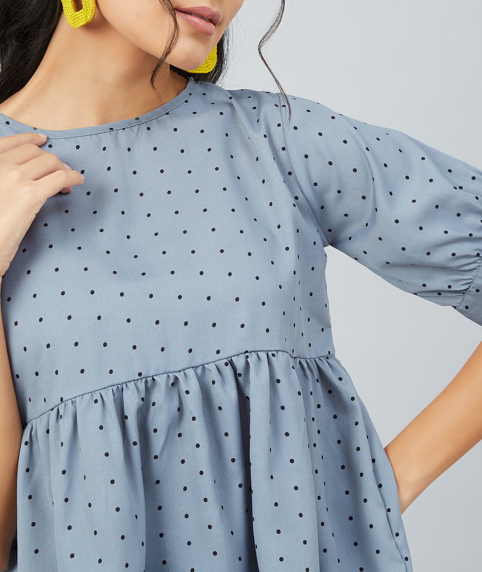 Chimpaaanzee women Grey Crepe Polka Doted Half Sleeve Style Top
