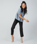 This model has a height of 5 feet 7 inches and is wearing a Top of Size "S"
