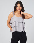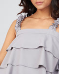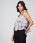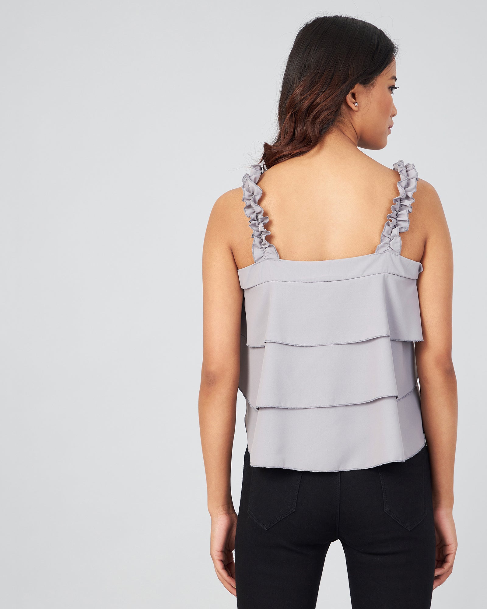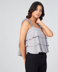 Chimpaaanzee Women Grey Solid Ruffled Crop Top