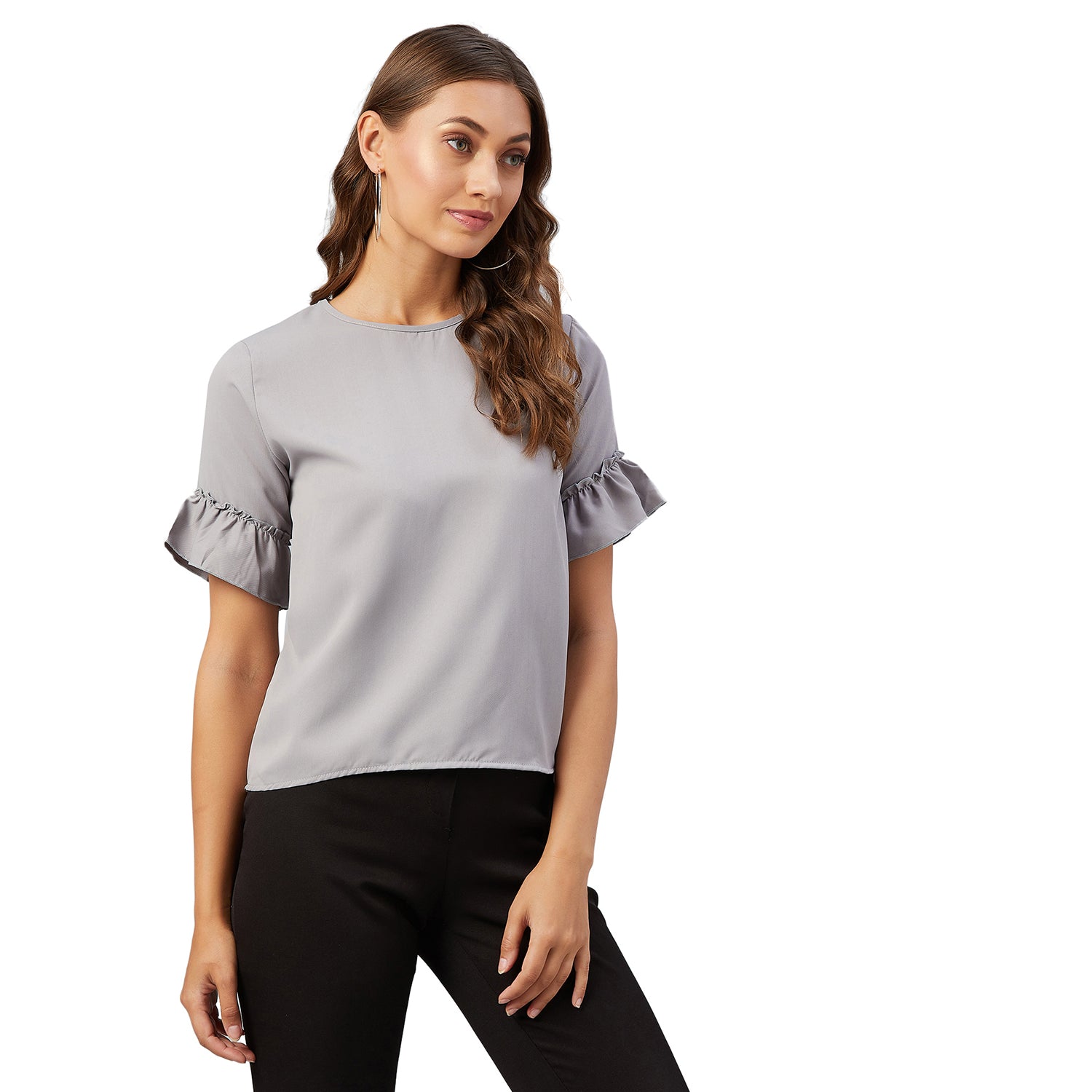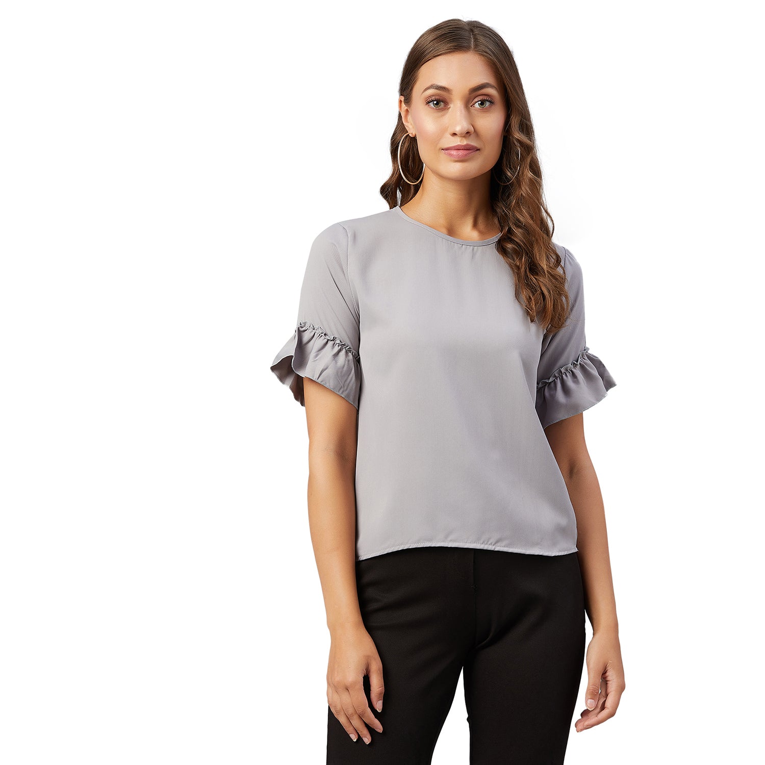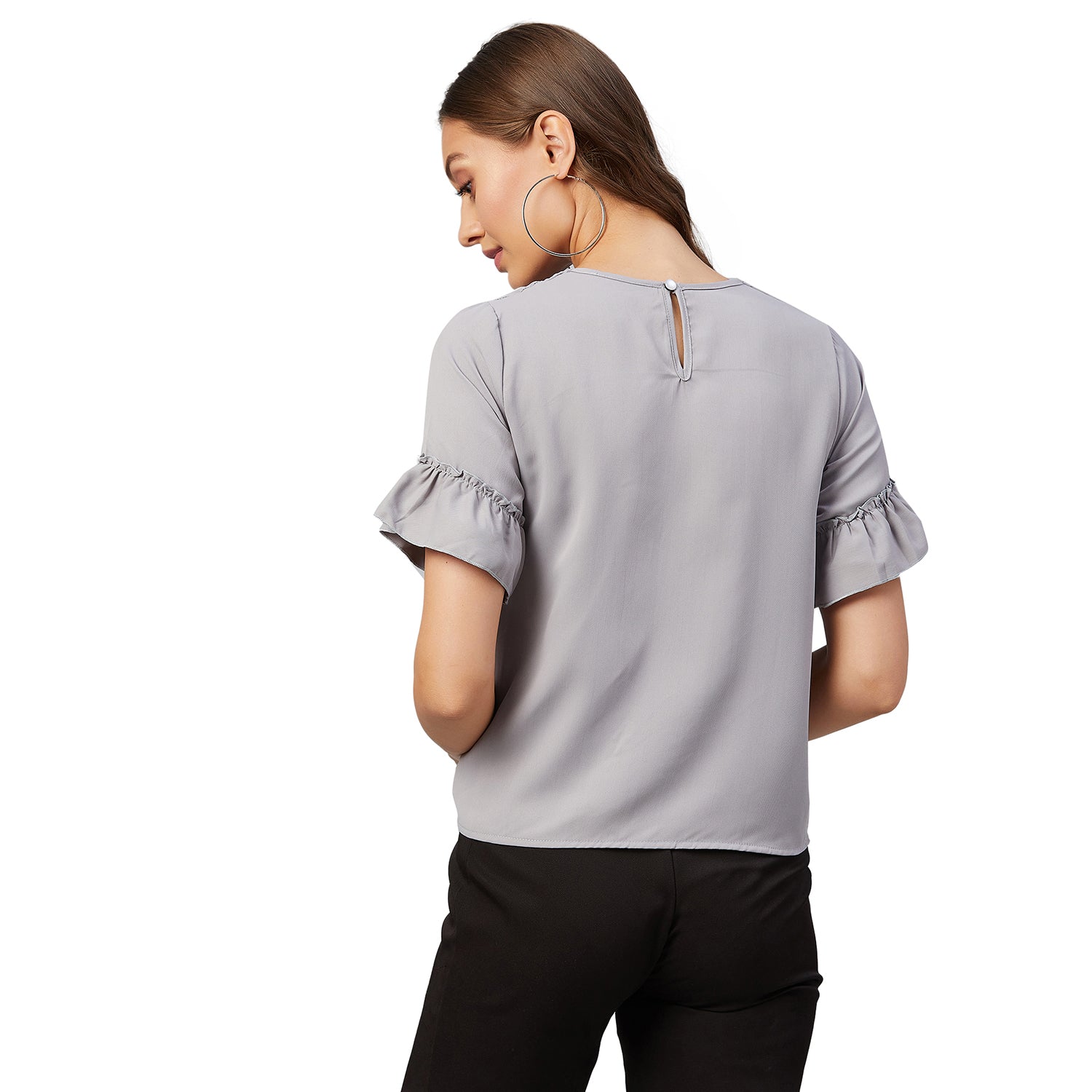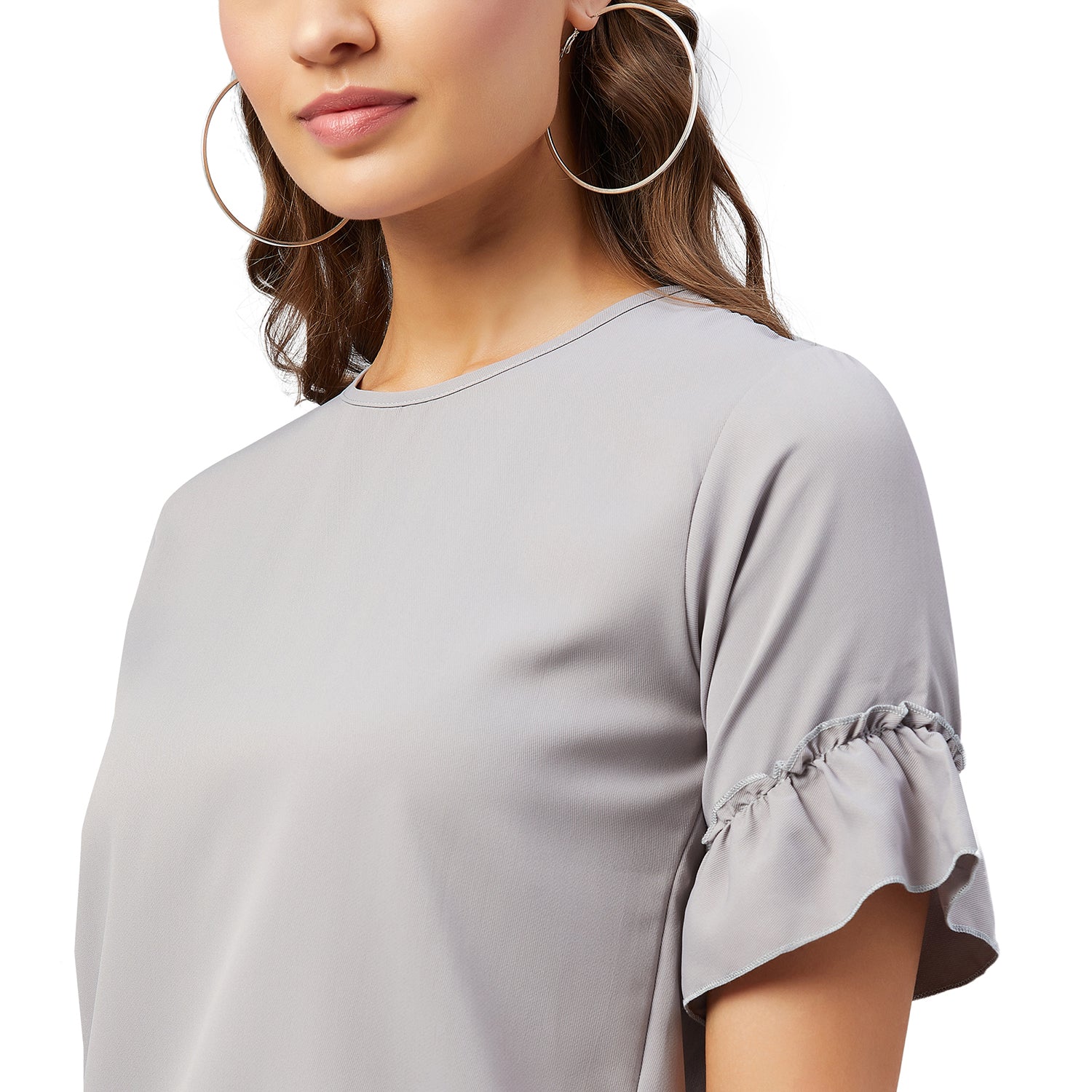 Chimpaaanzee Women Grey Solid Ruffled sleeve Top