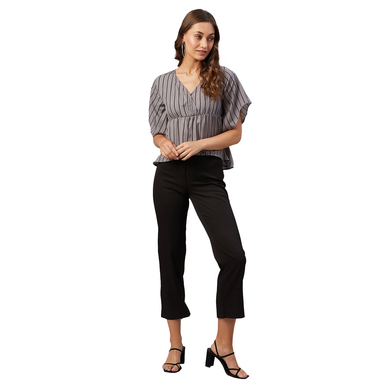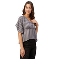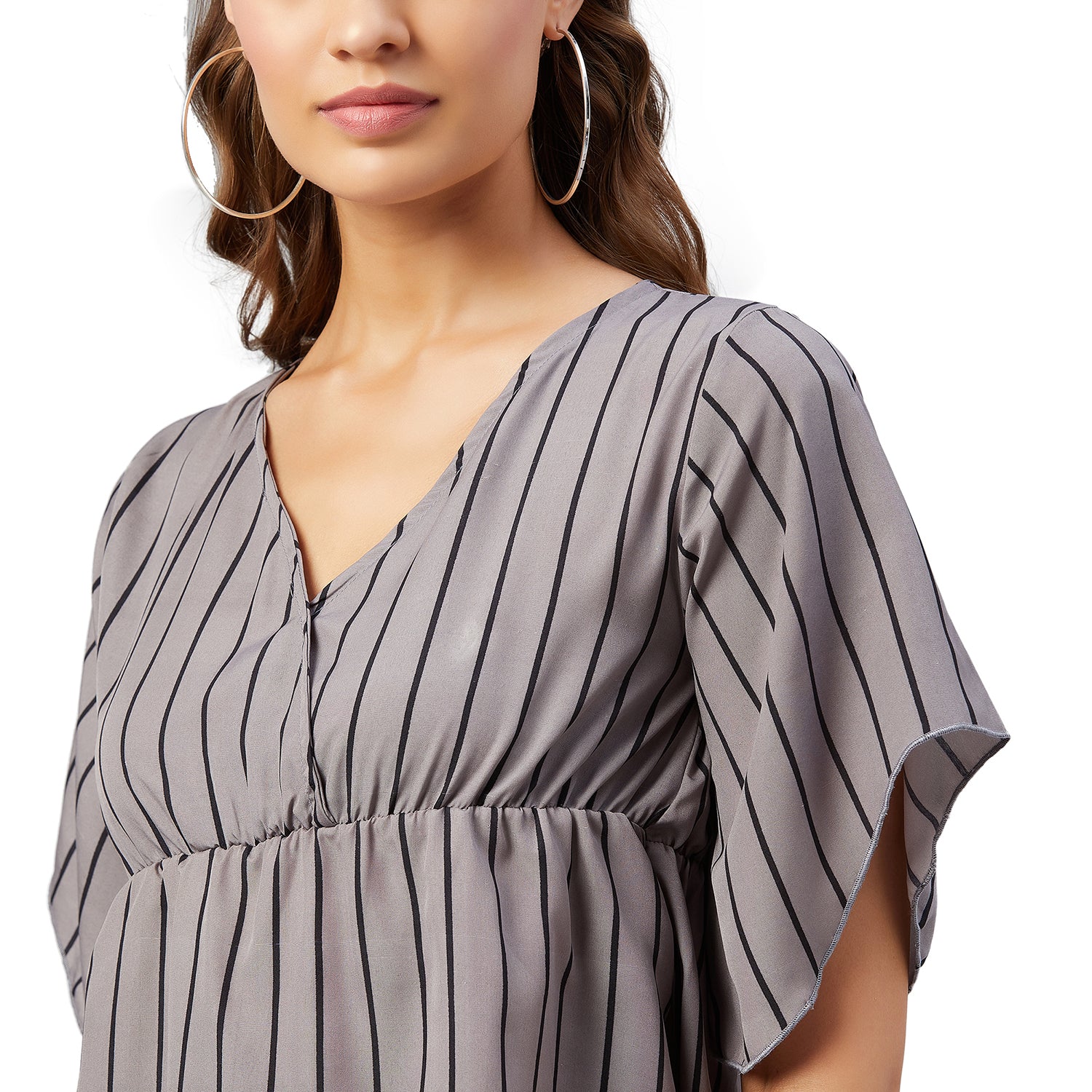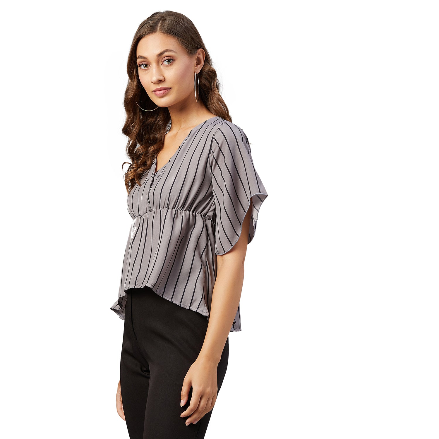 Chimpaaanzee Women Grey Striped Crepe Asymmetrical Top