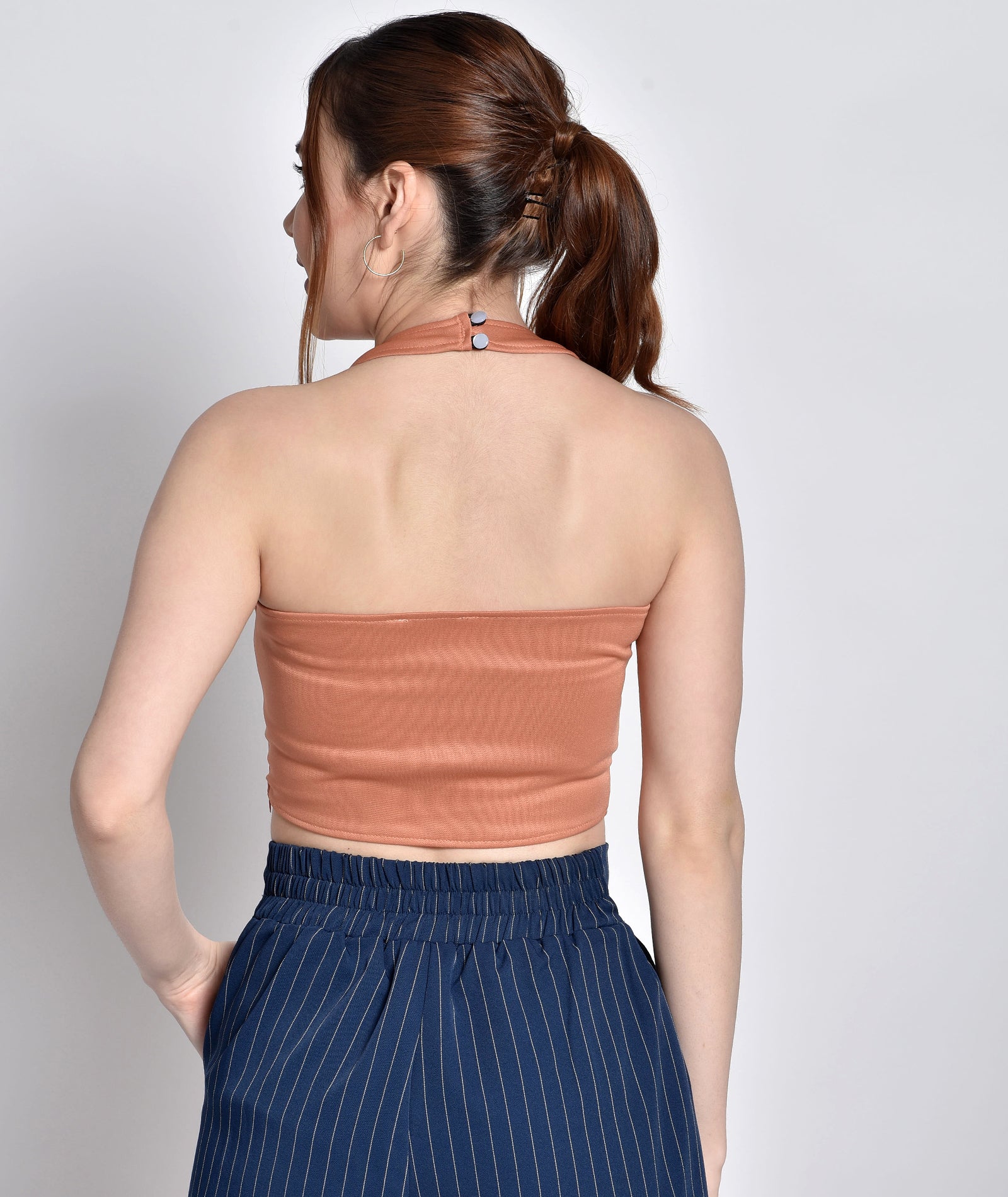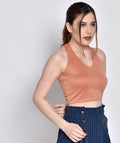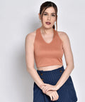 Chimpaaanzee Women Halter Neck Peach Bodycon Top