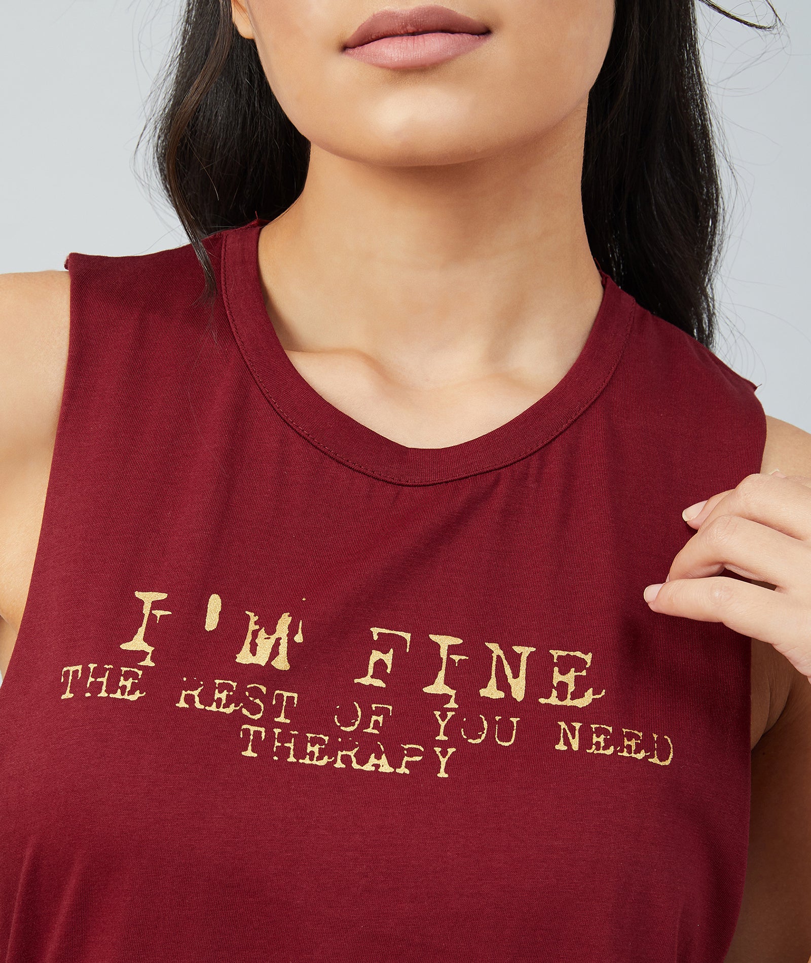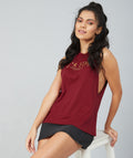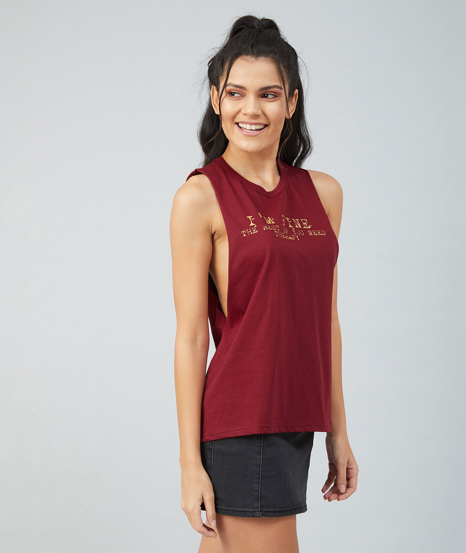 Chimpaaanzee Women Maroon Big Armhole Round Neck T-shirt