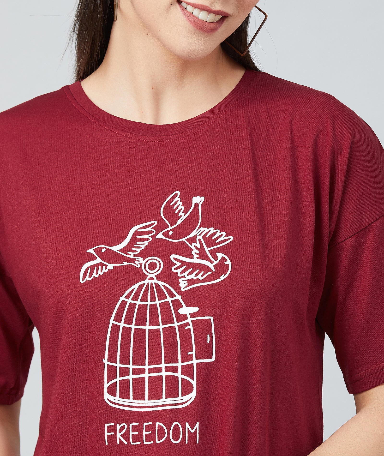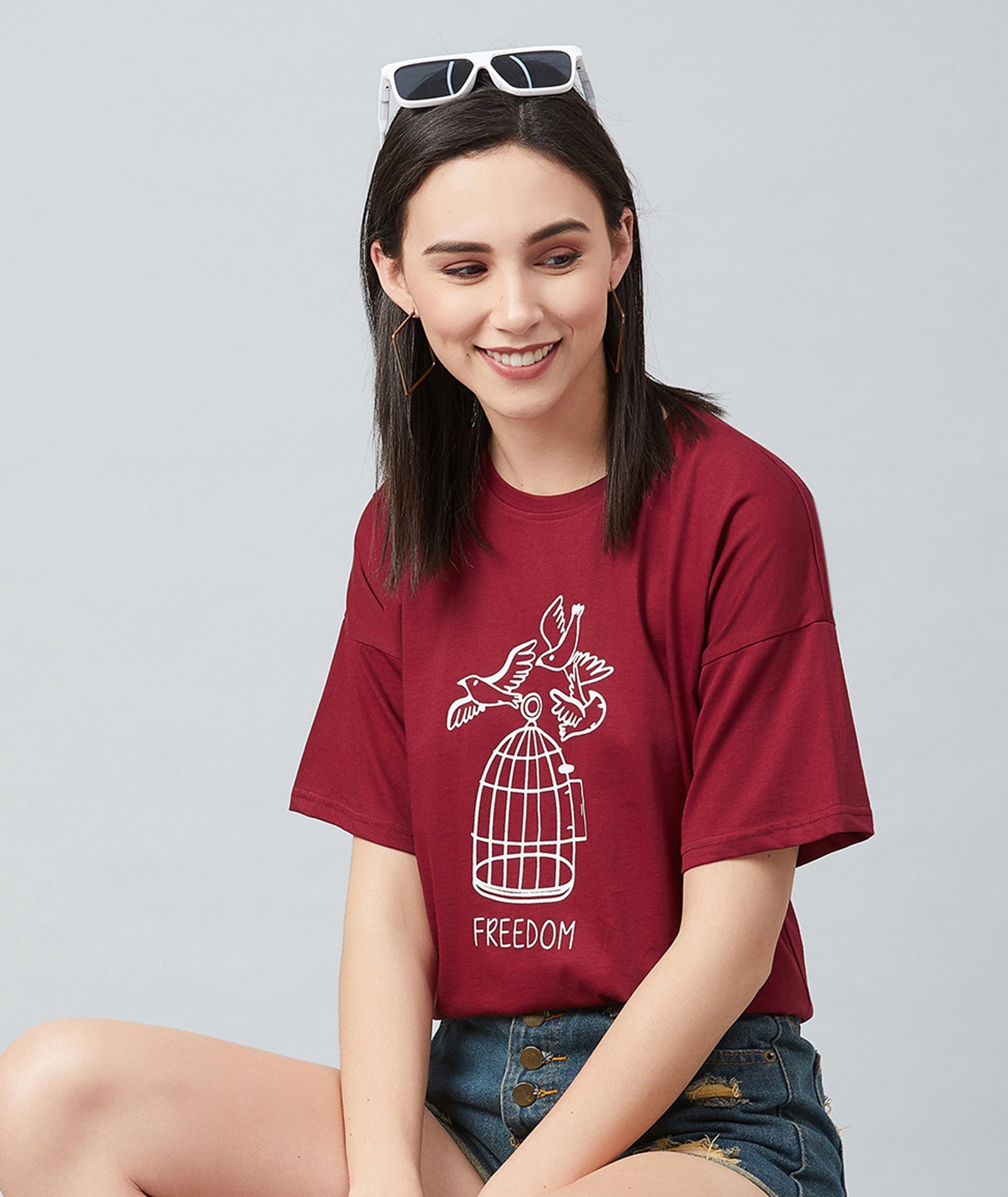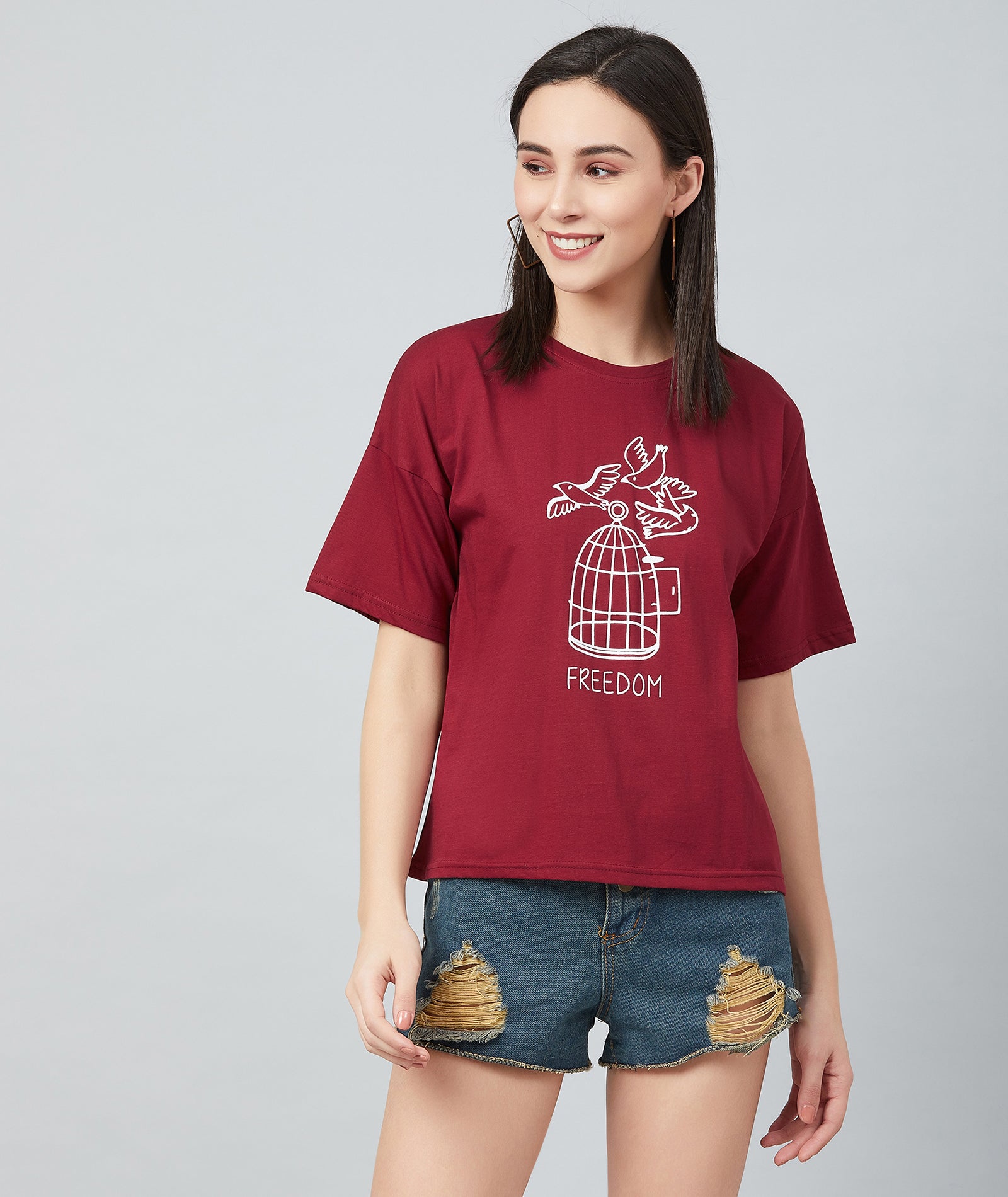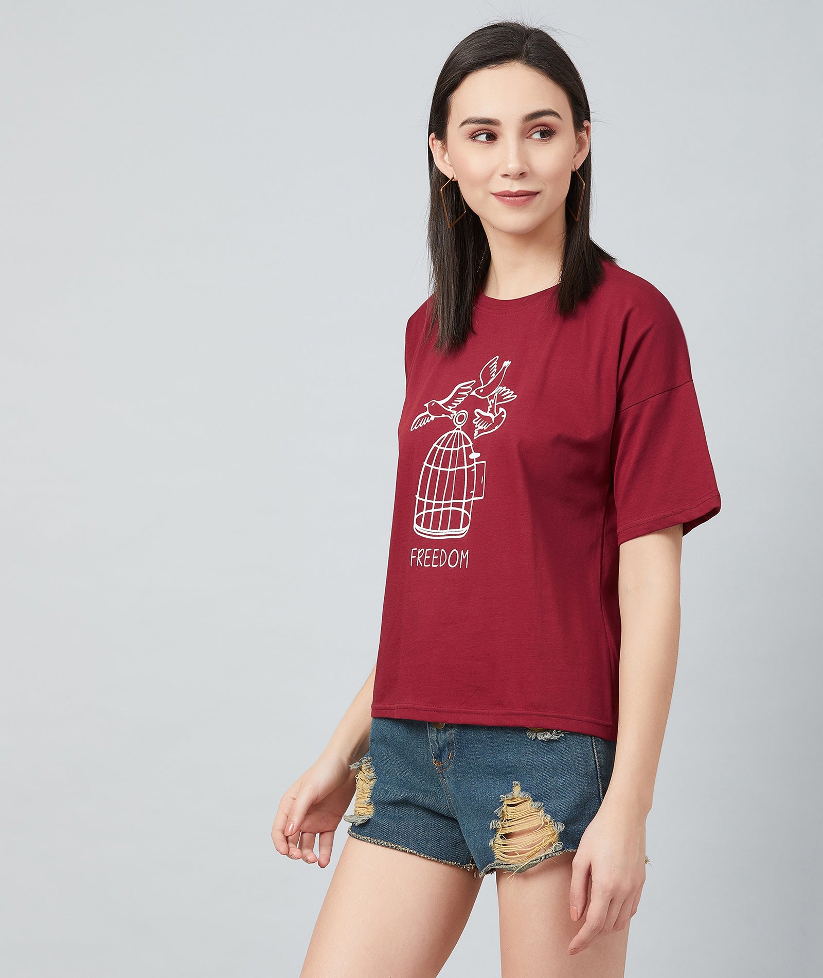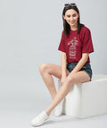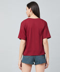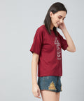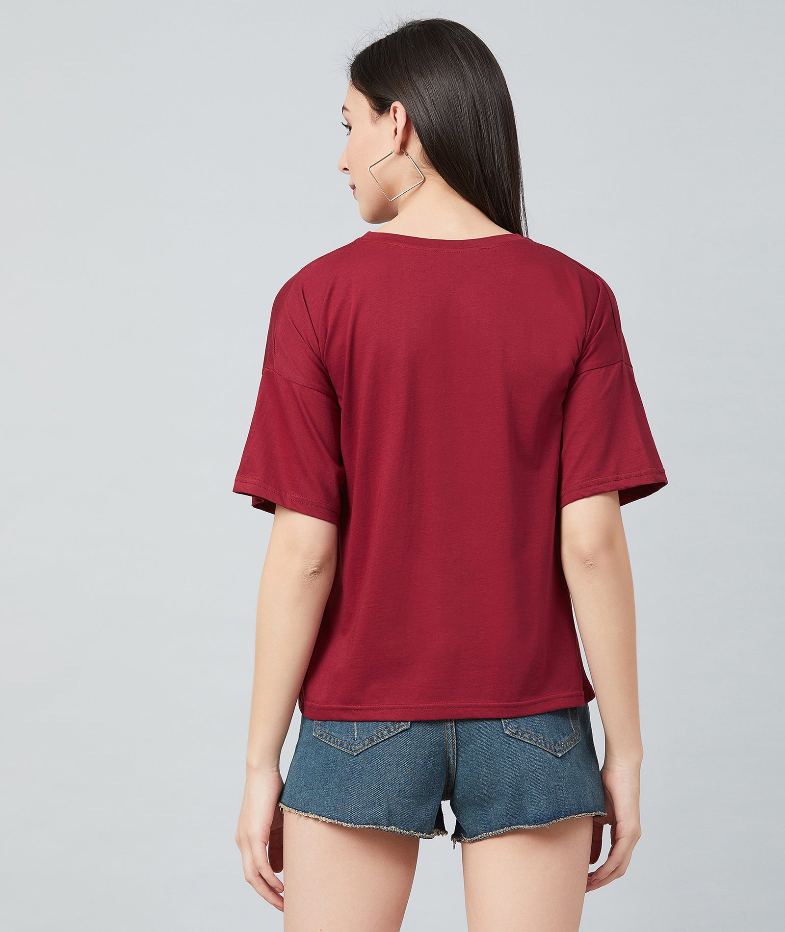 Chimpaaanzee Women Maroon Big Shoulder Half Sleeve T-shirt