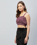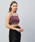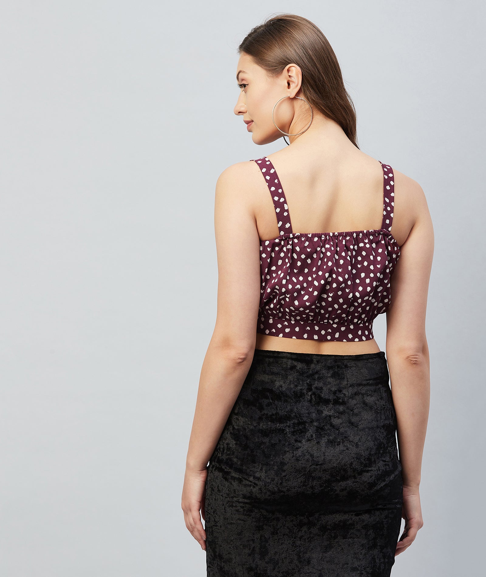 This model has a height of 5 feet 8 inches and is wearing a Top of Size "S"