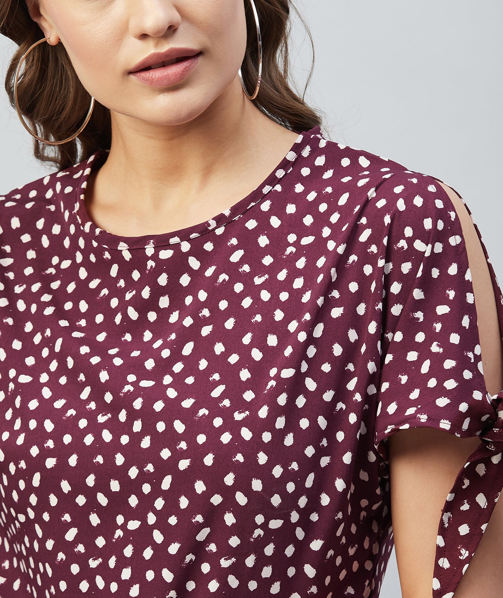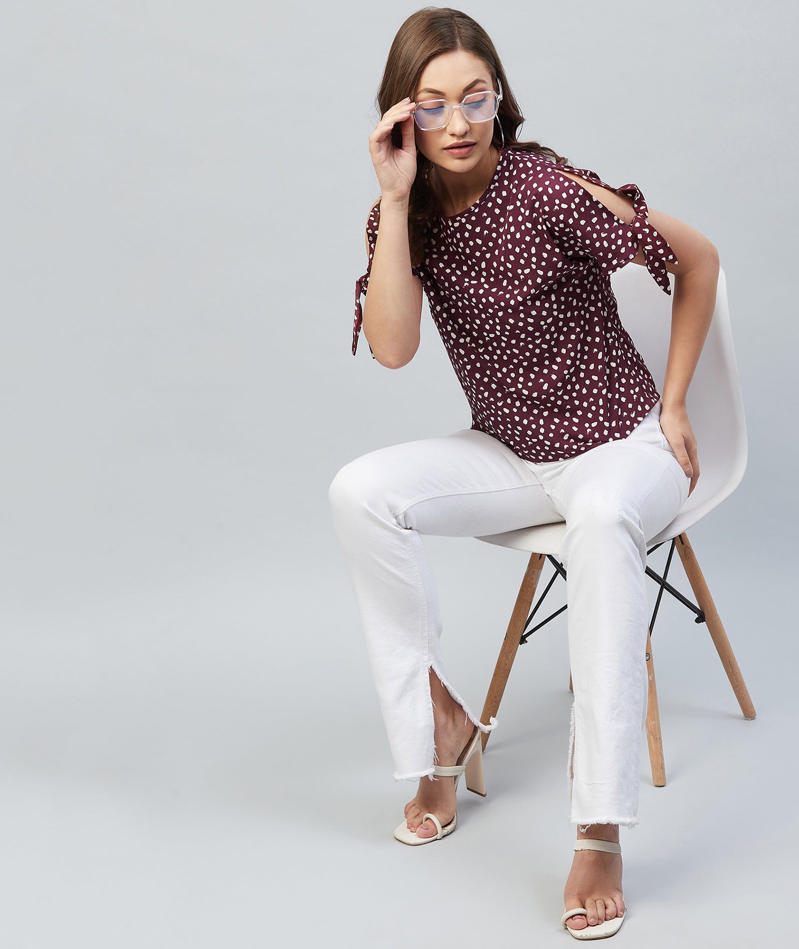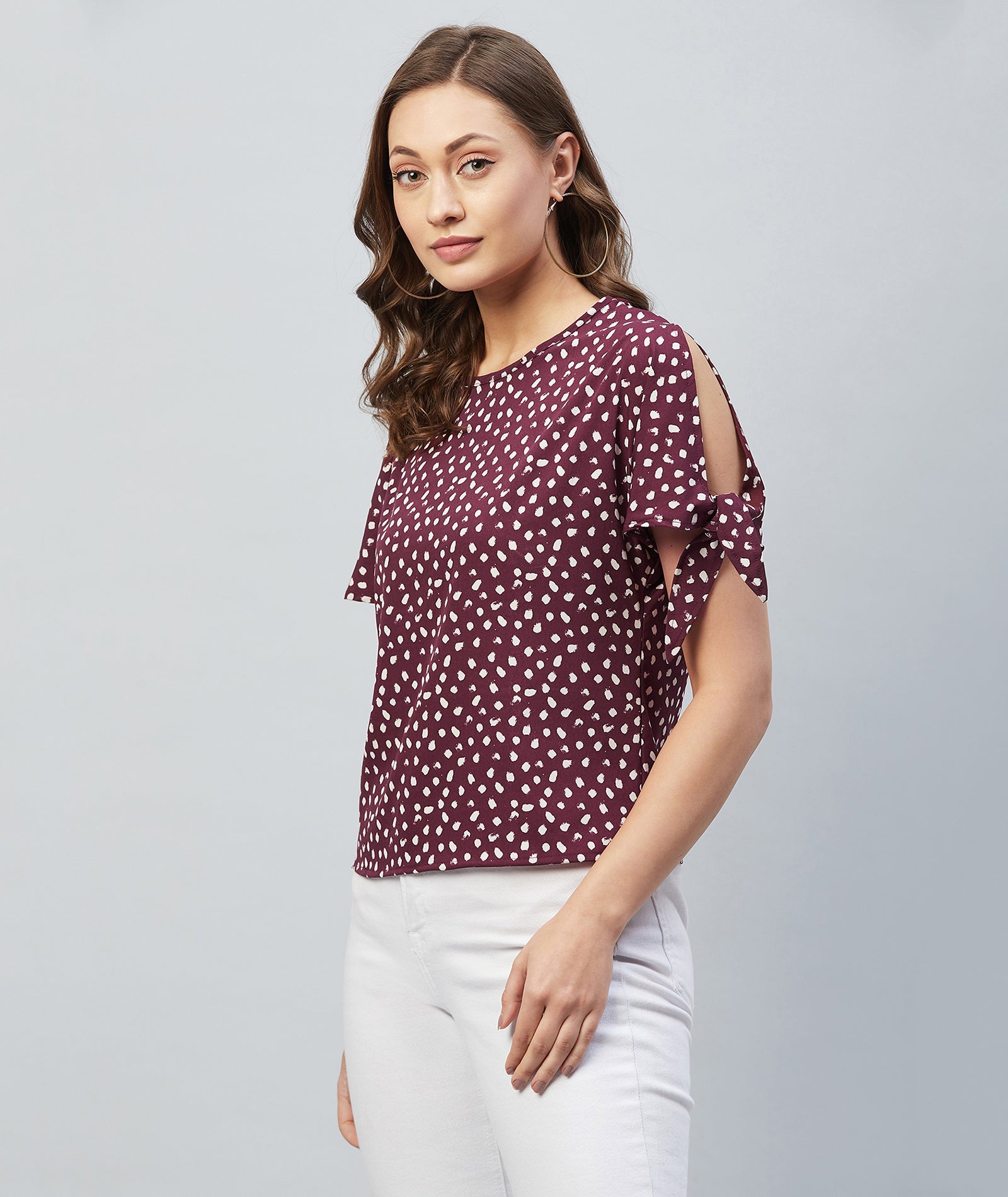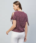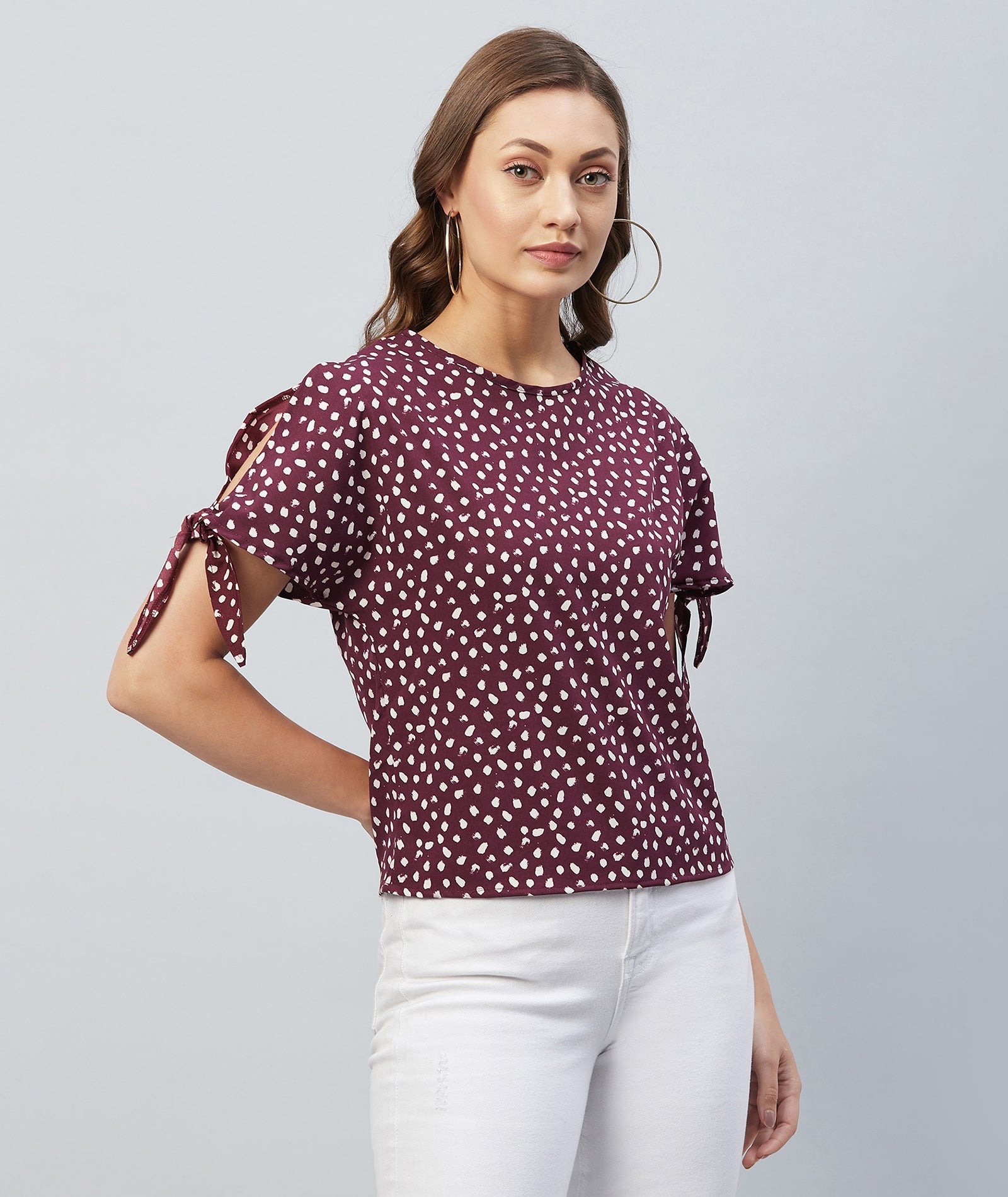 Chimpaaanzee Women Maroon Printed Knotted Sleeve Top