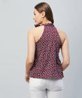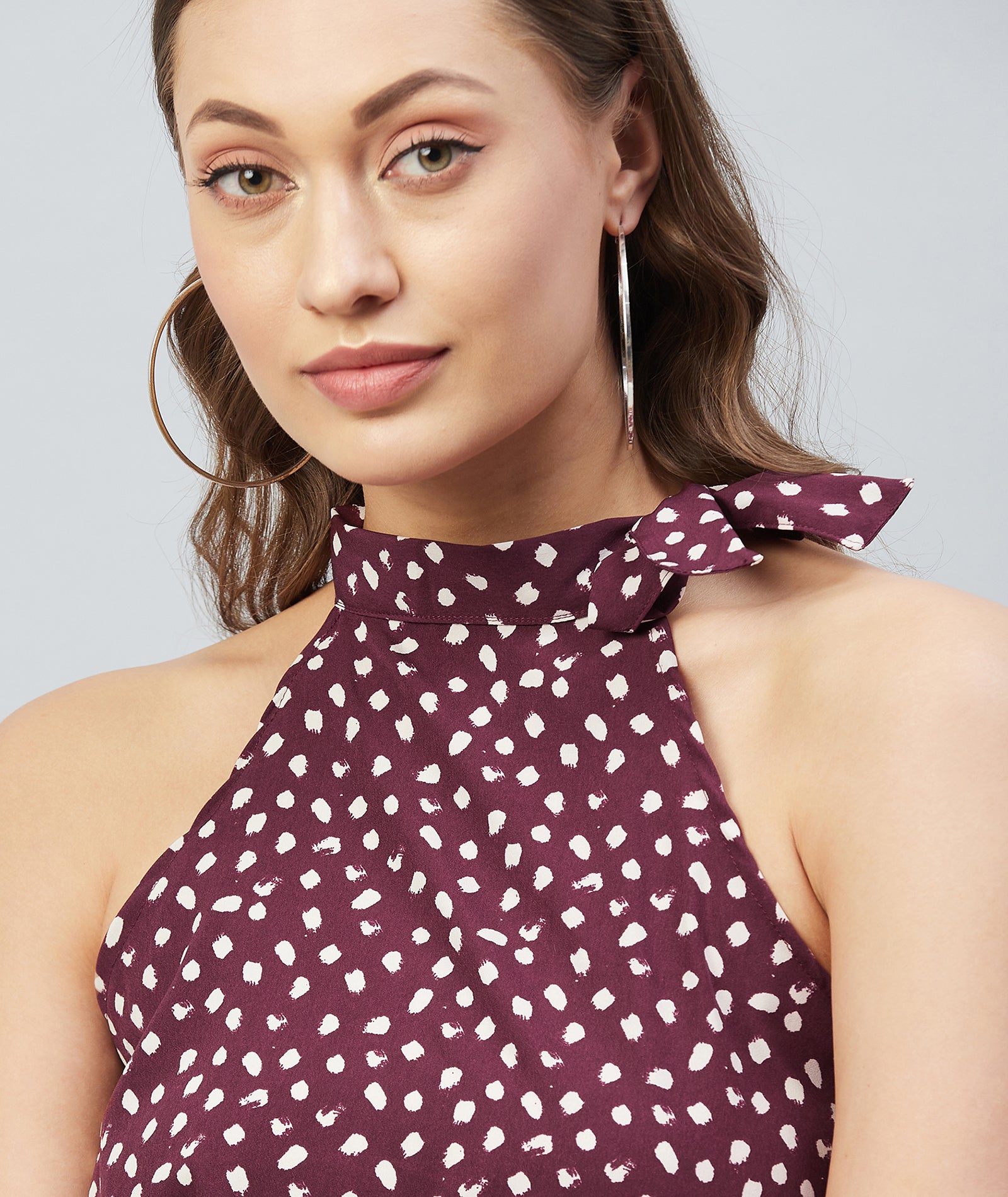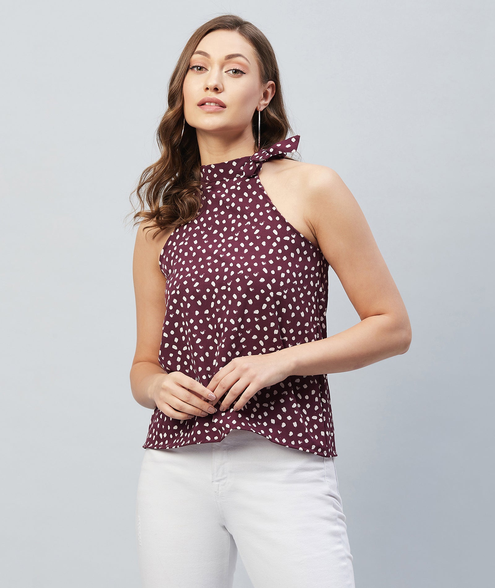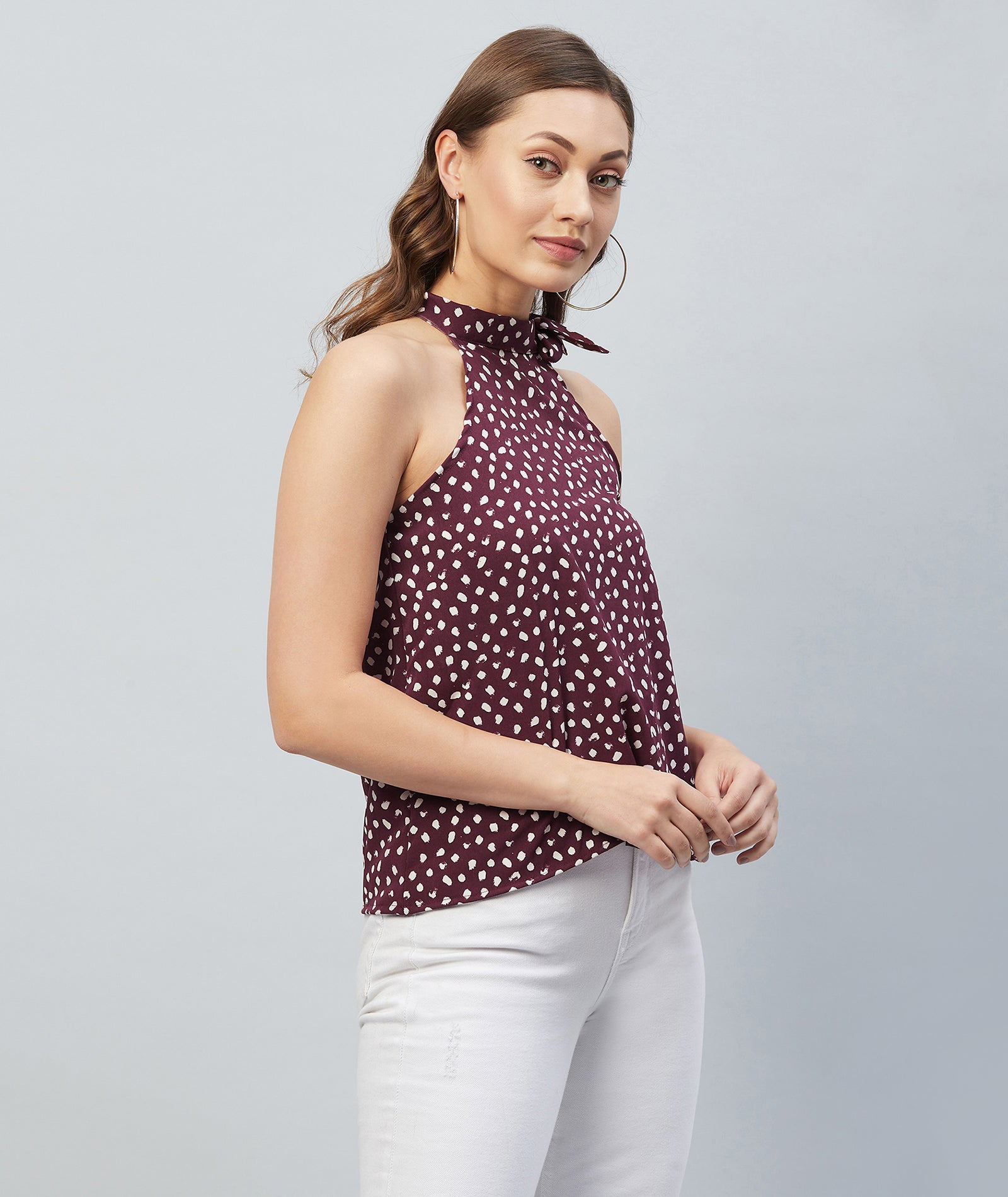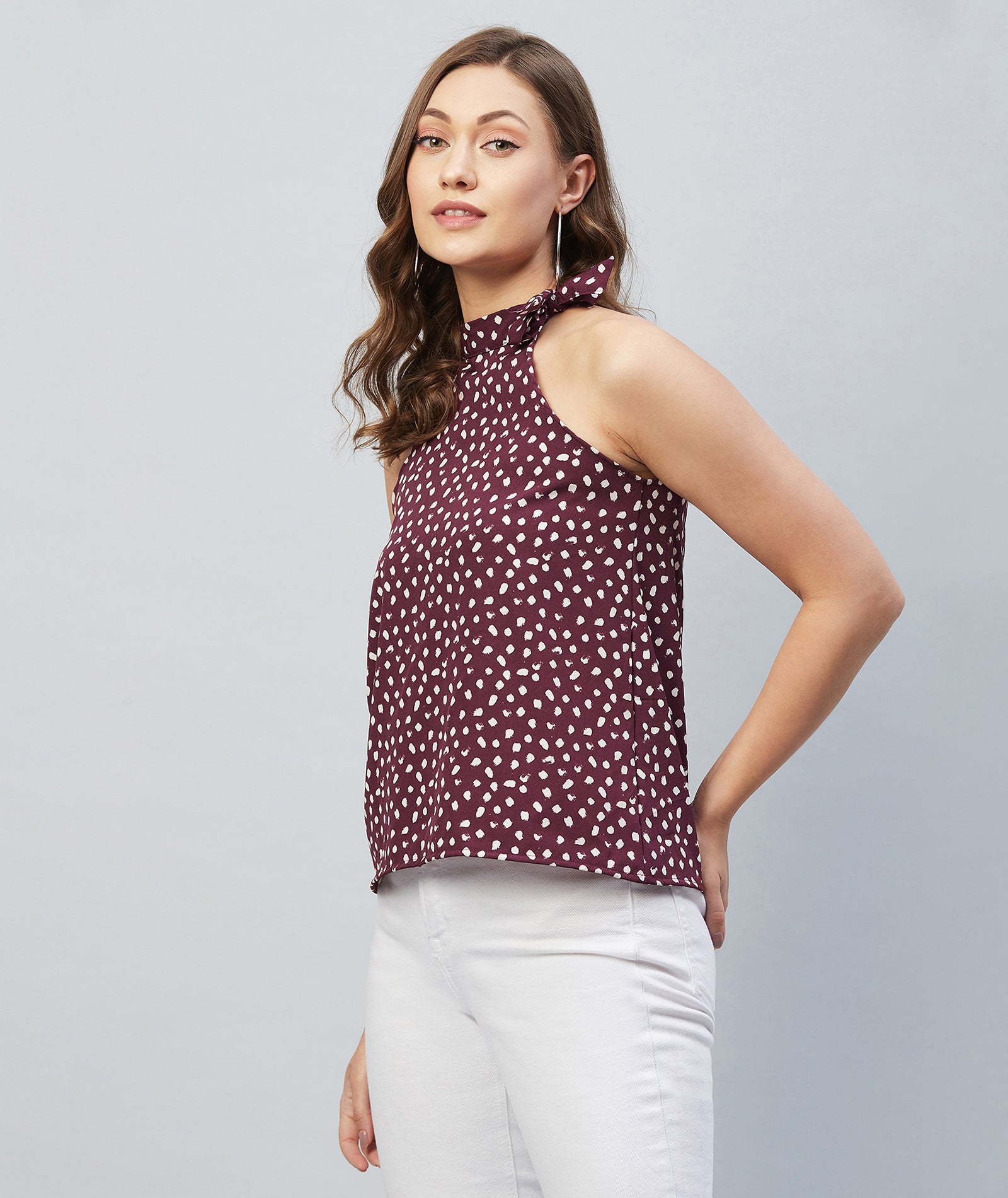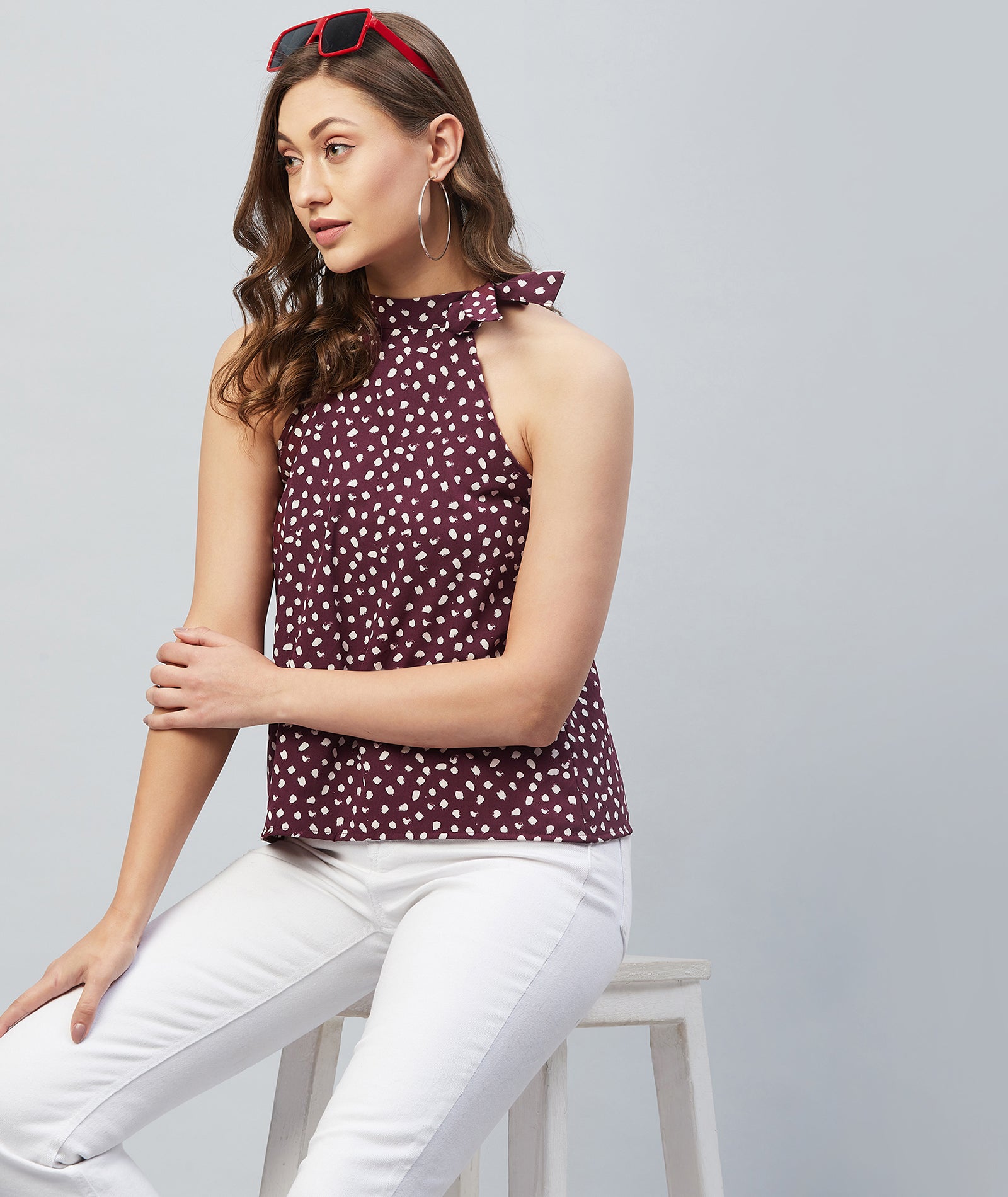 Chimpaaanzee Women Maroon Printed Tie up Neck Top
