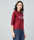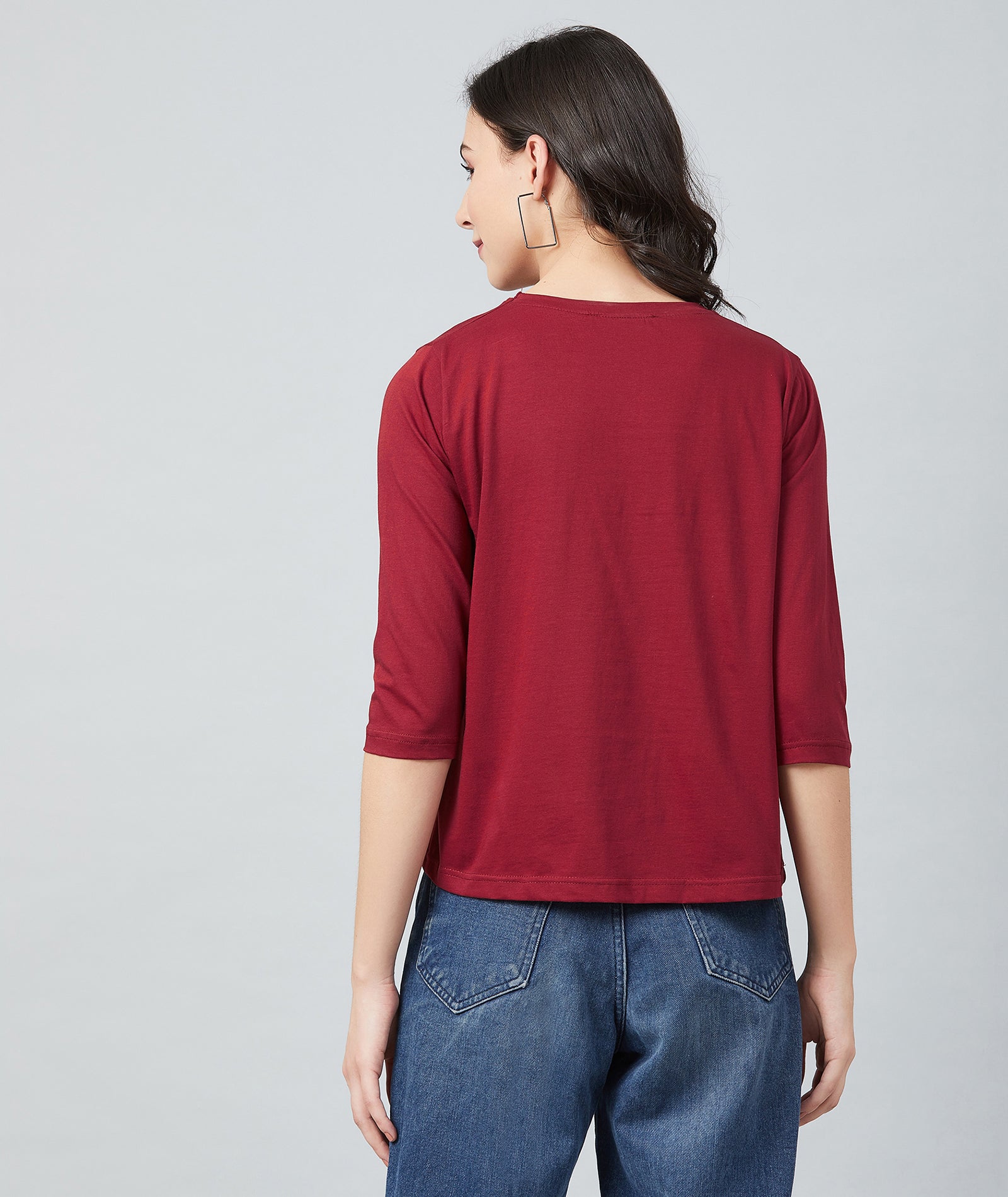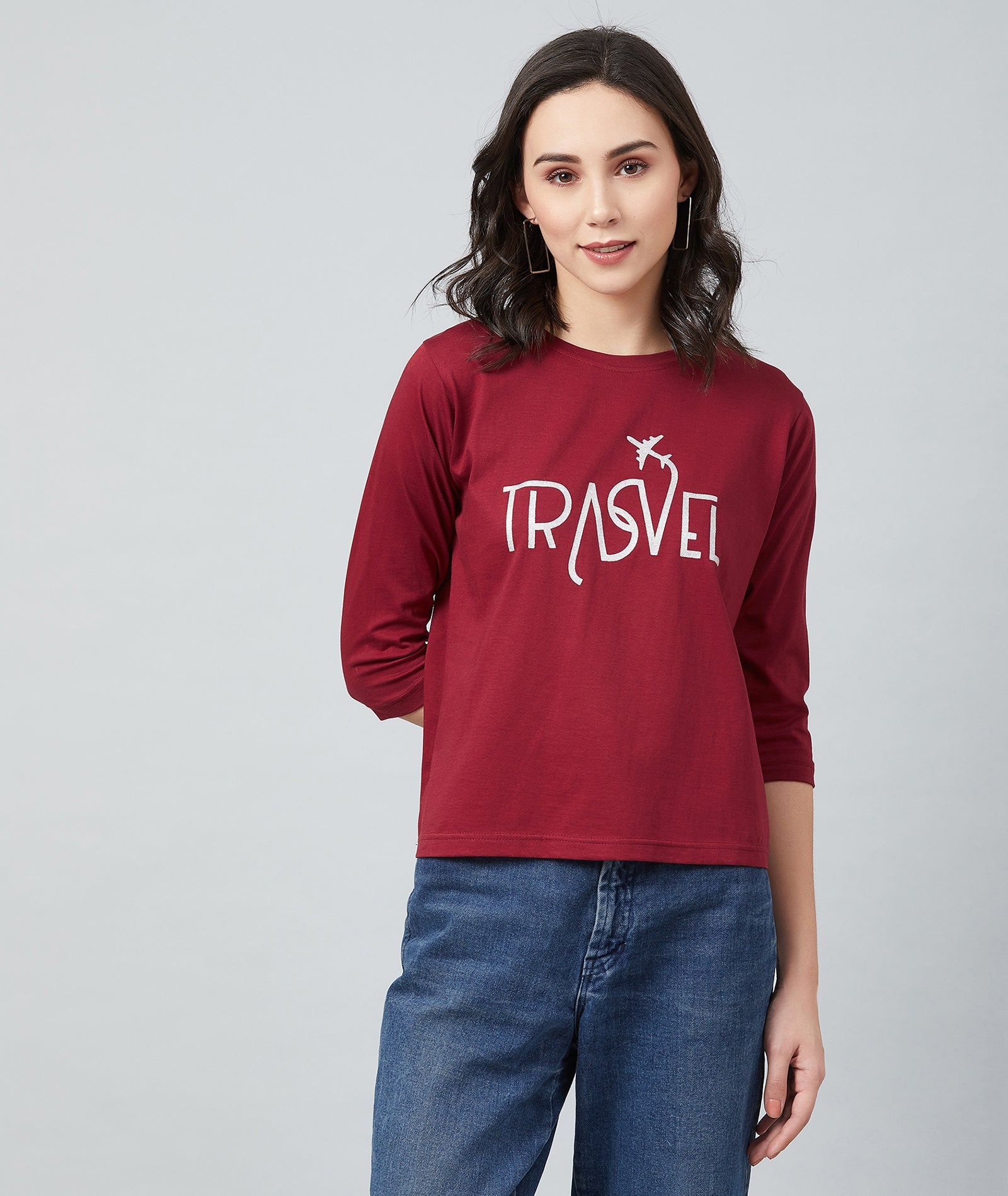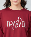 Chimpaaanzee Women Maroon Round Neck Full Sleeve T-shirt