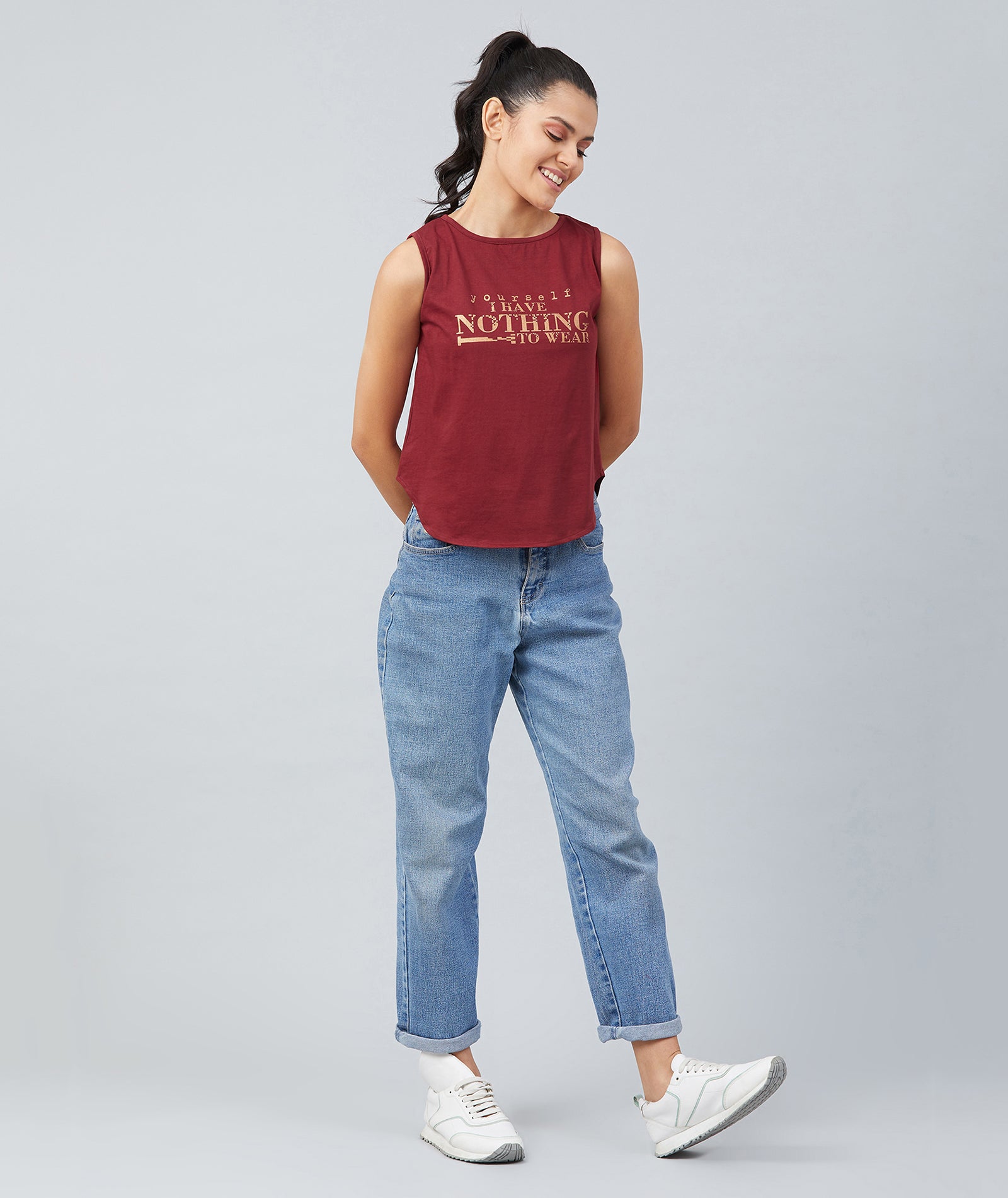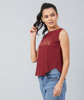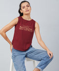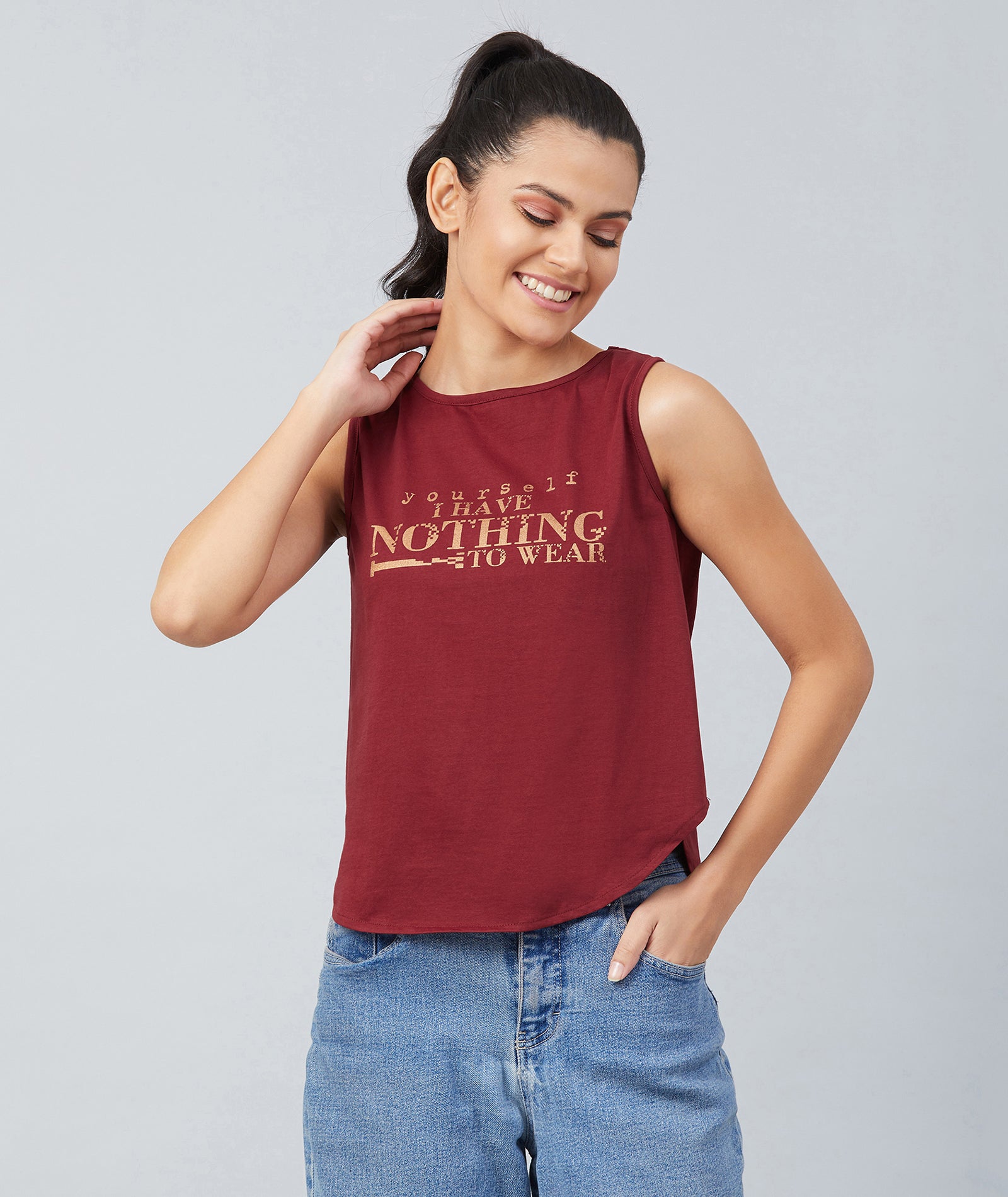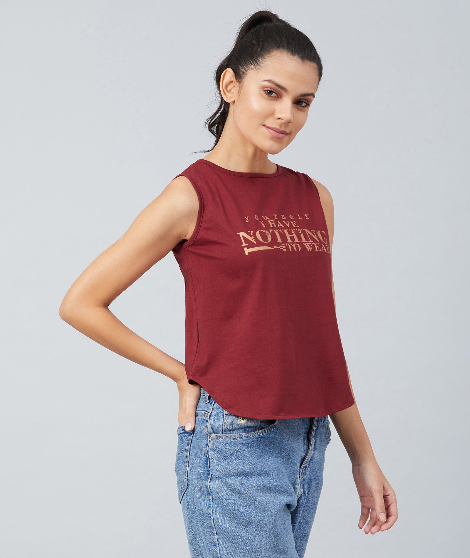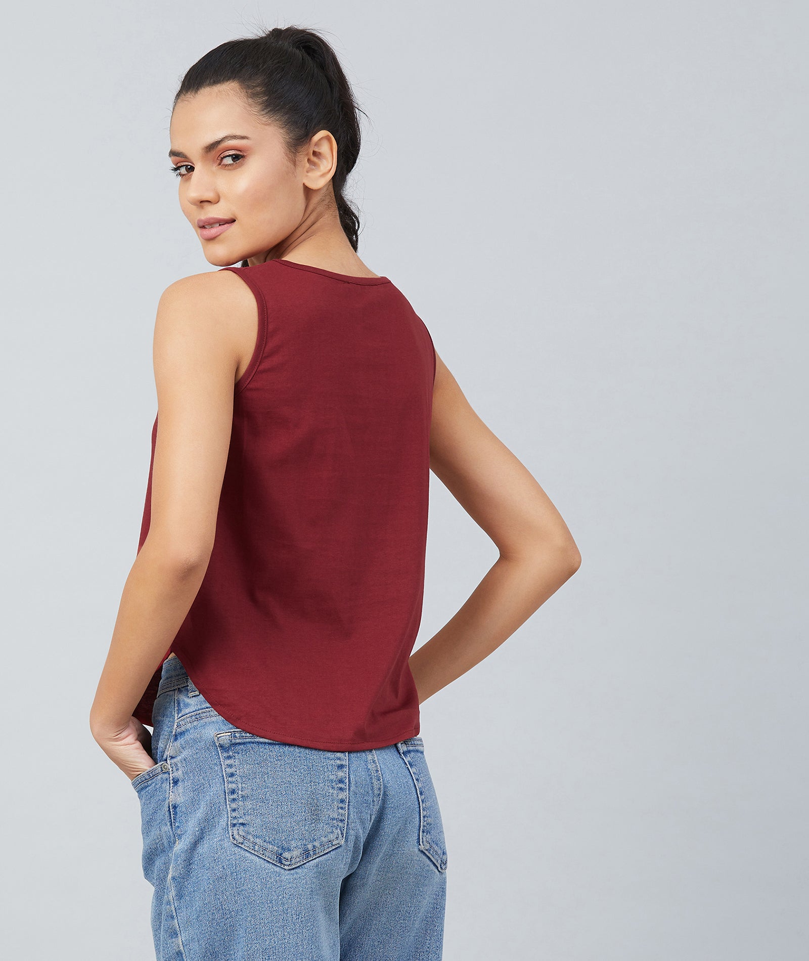 Chimpaaanzee Women Maroon Sleeveless Round Bottom T-shirt