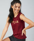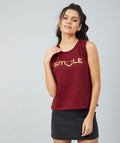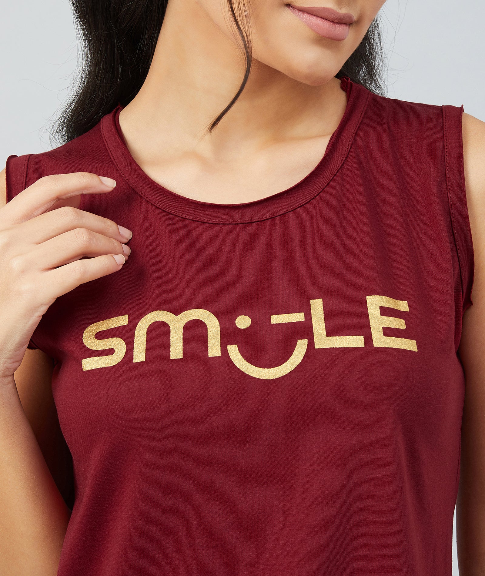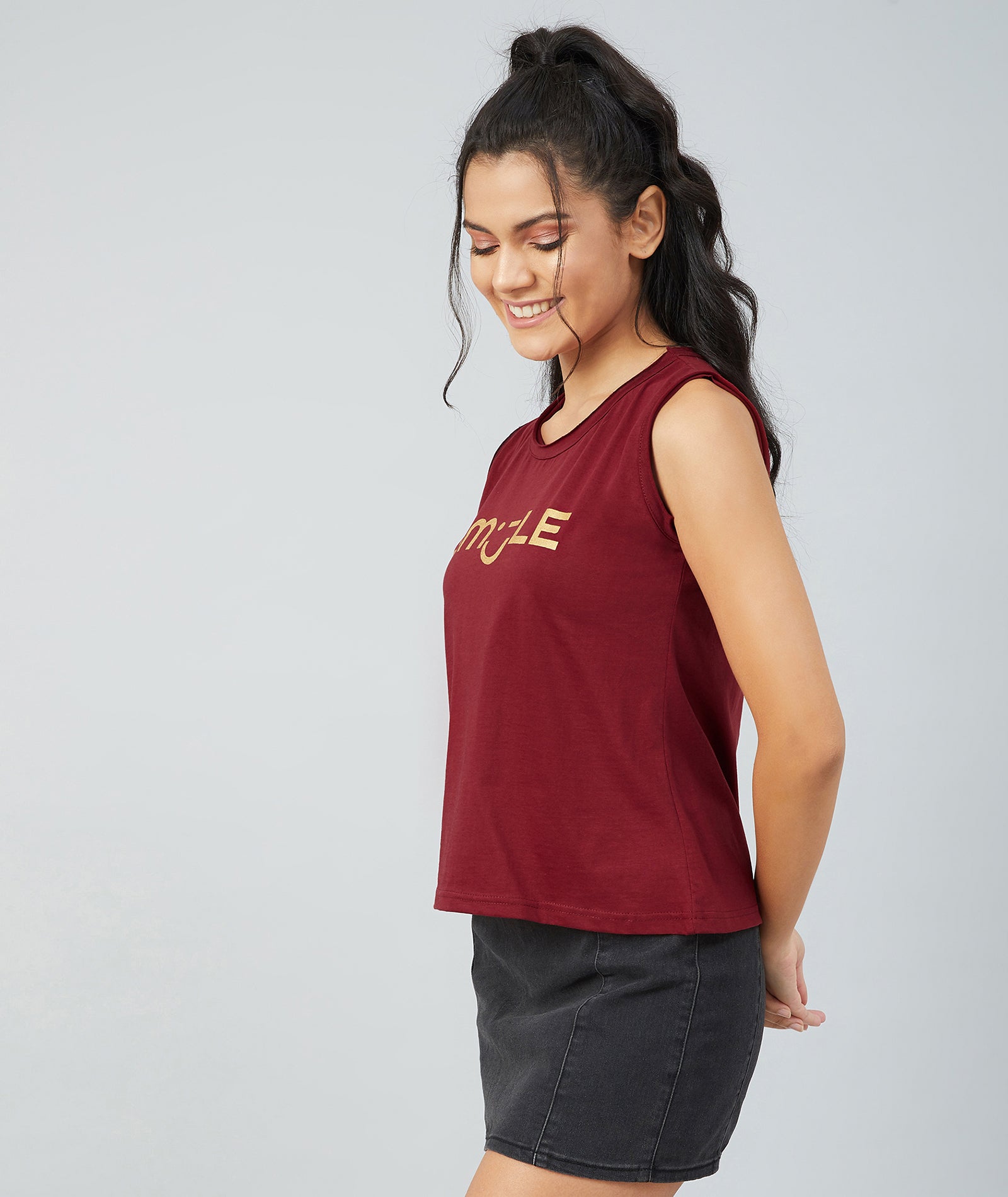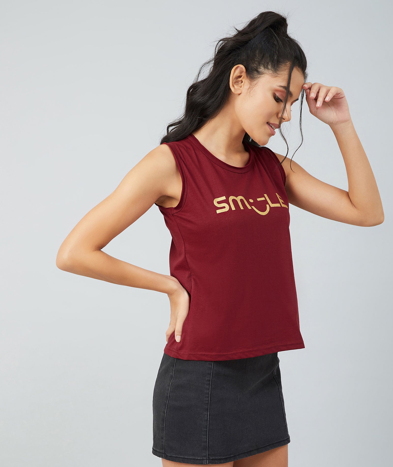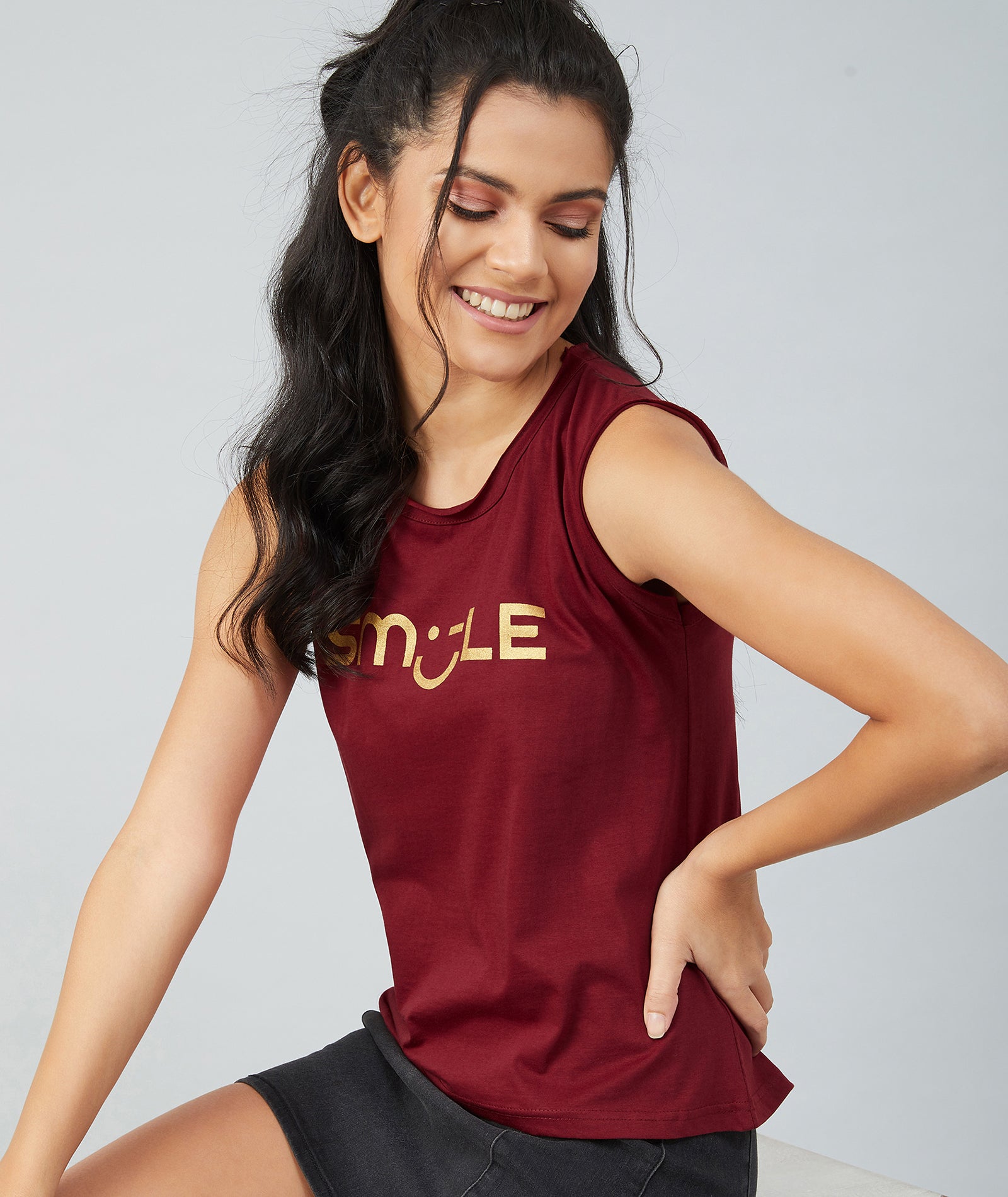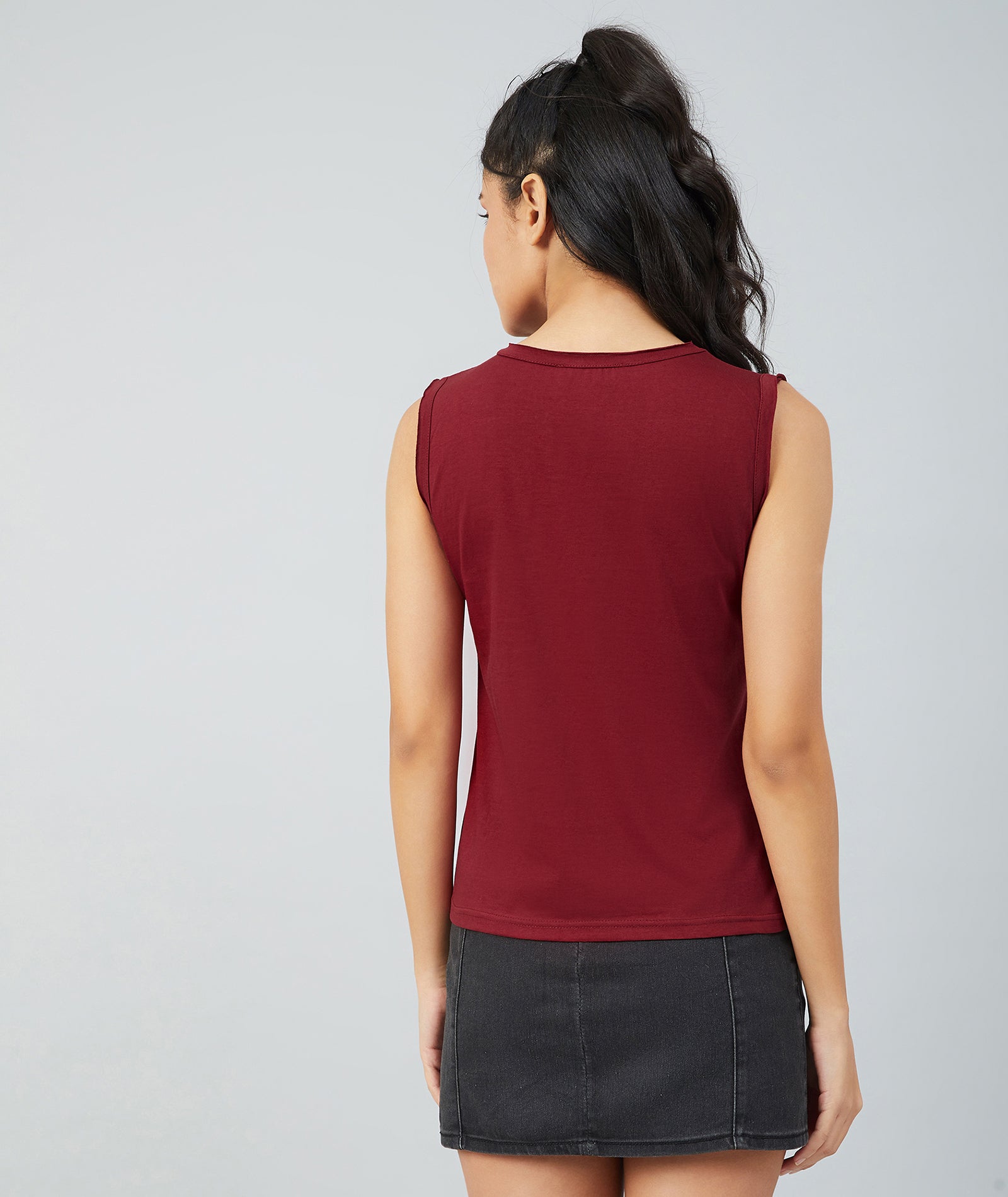Chimpaaanzee Women Maroon Sleeveless Round Neck T-shirt