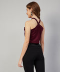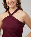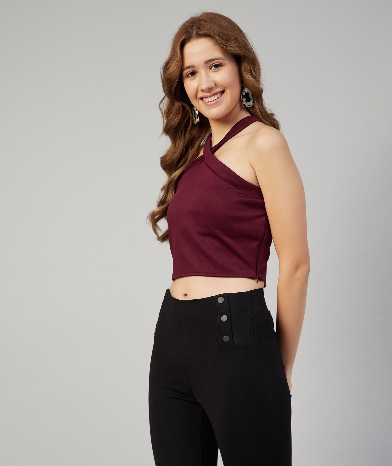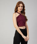 Chimpaaanzee Women Maroon Solid Cross Neck Crop Top