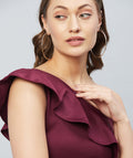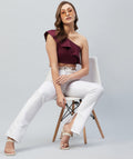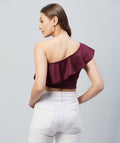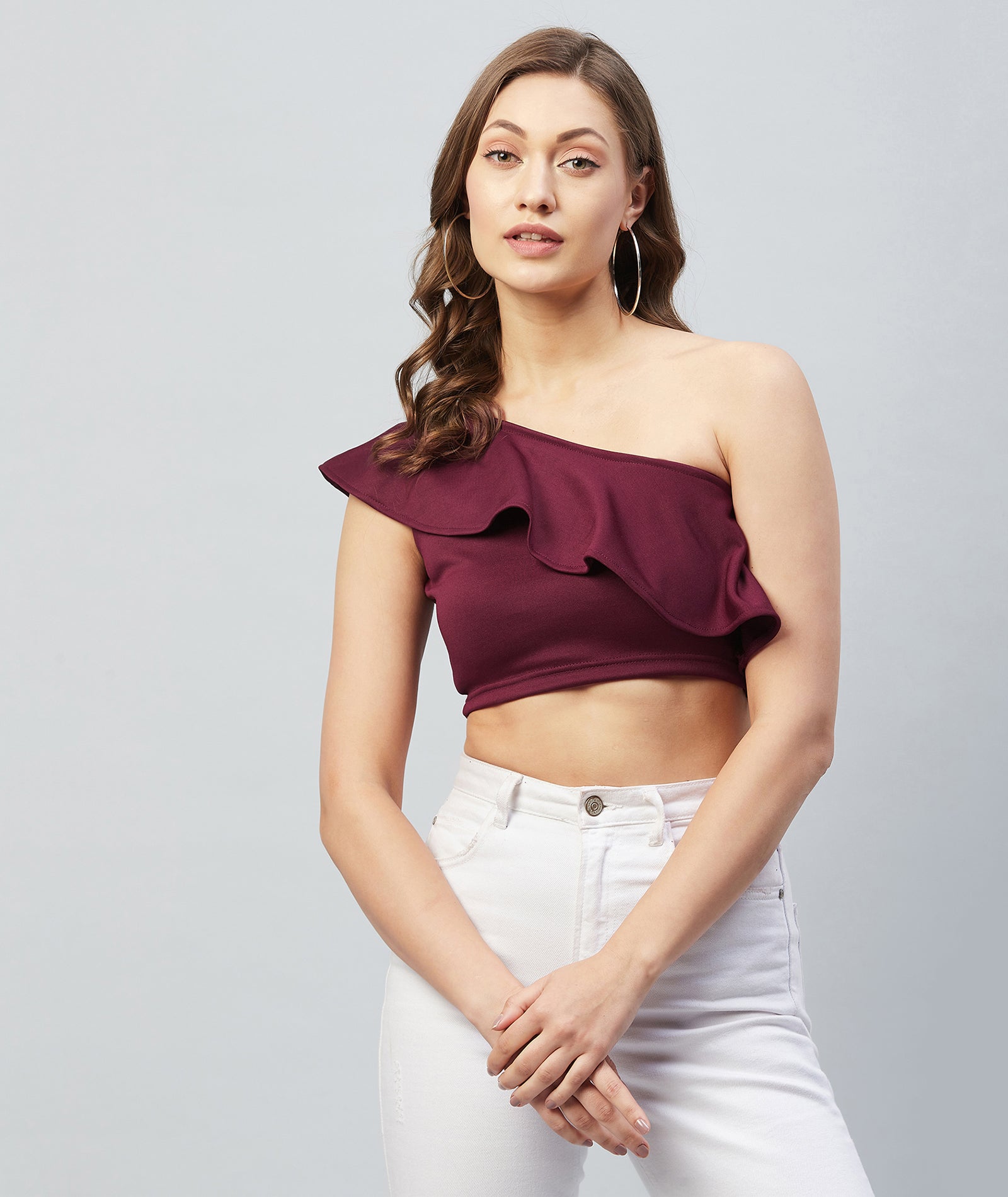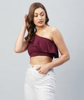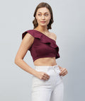 Chimpaaanzee Women Maroon Solid One Shoulder Crop Top