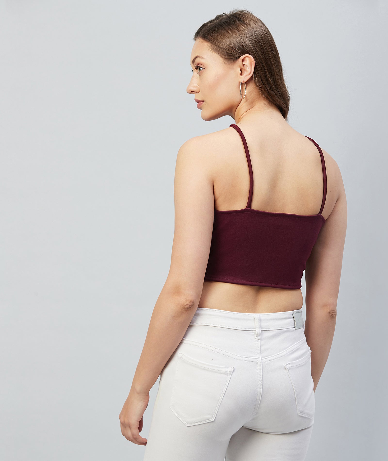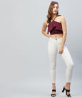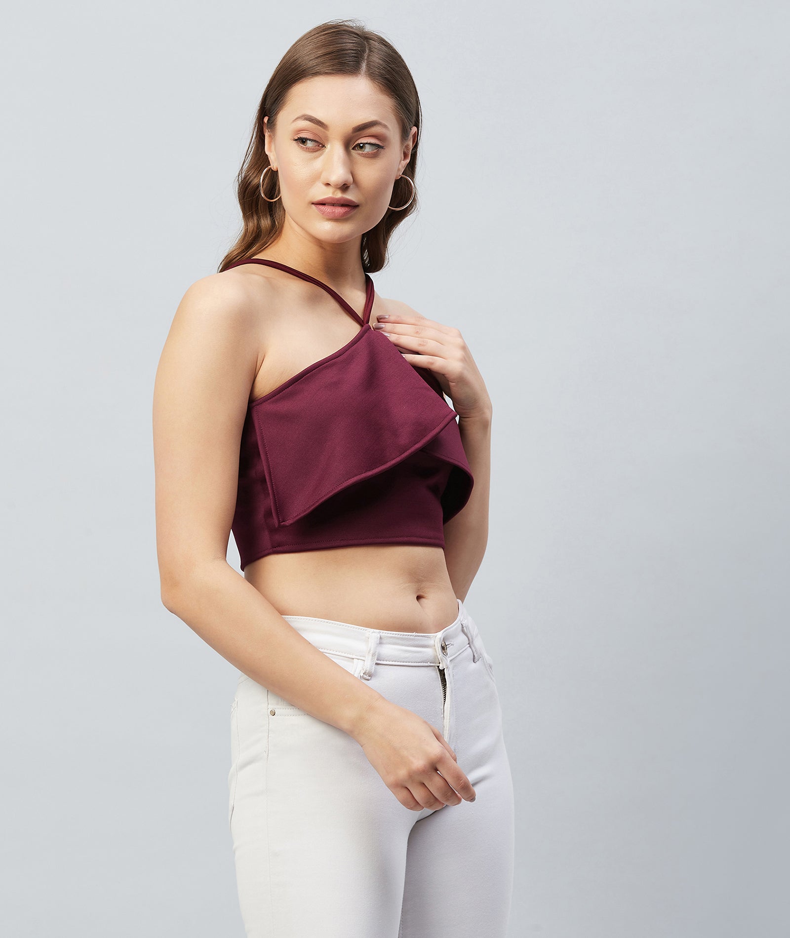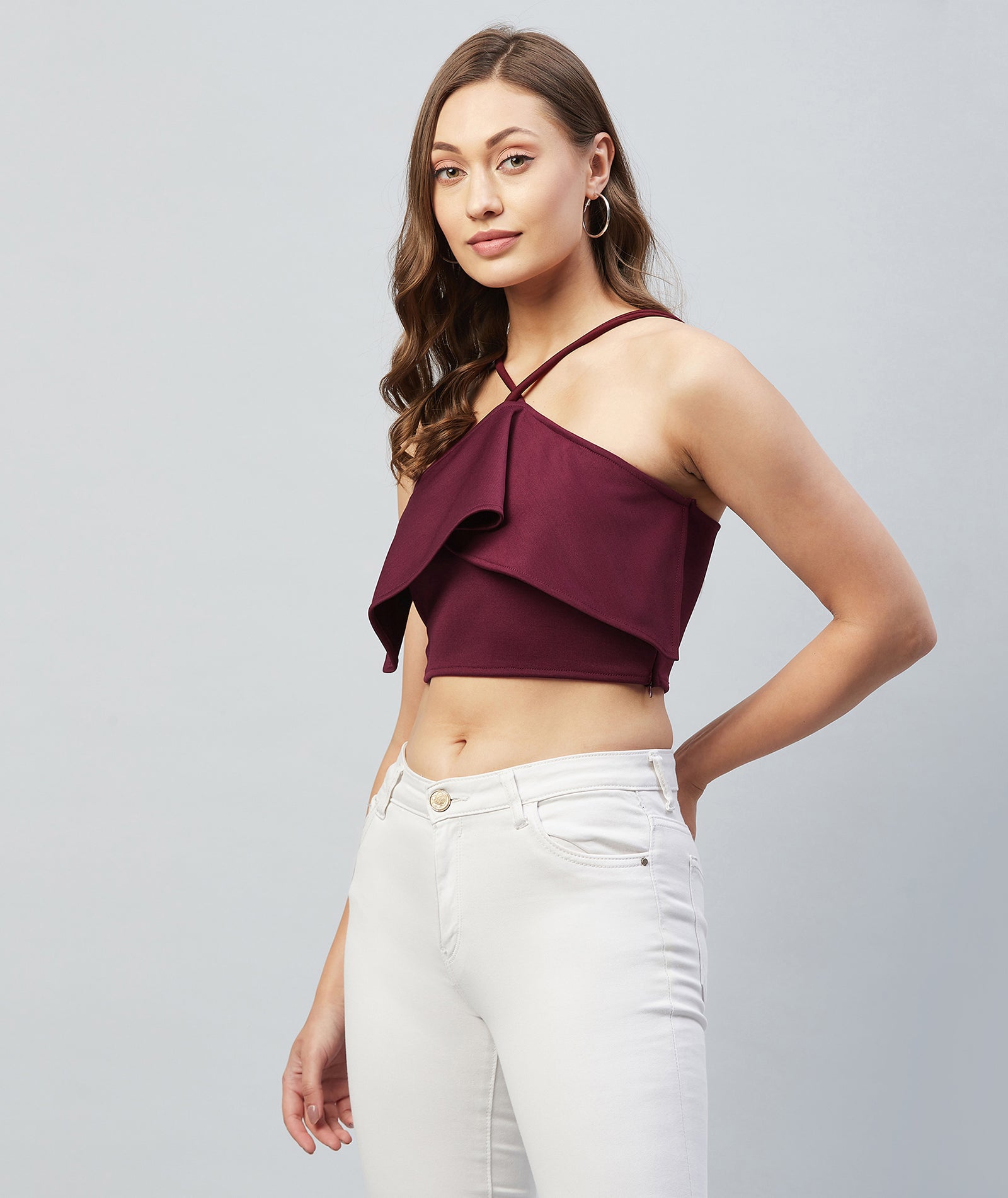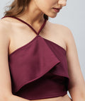 Chimpaaanzee Women Maroon Solid Ruffled Crop Top