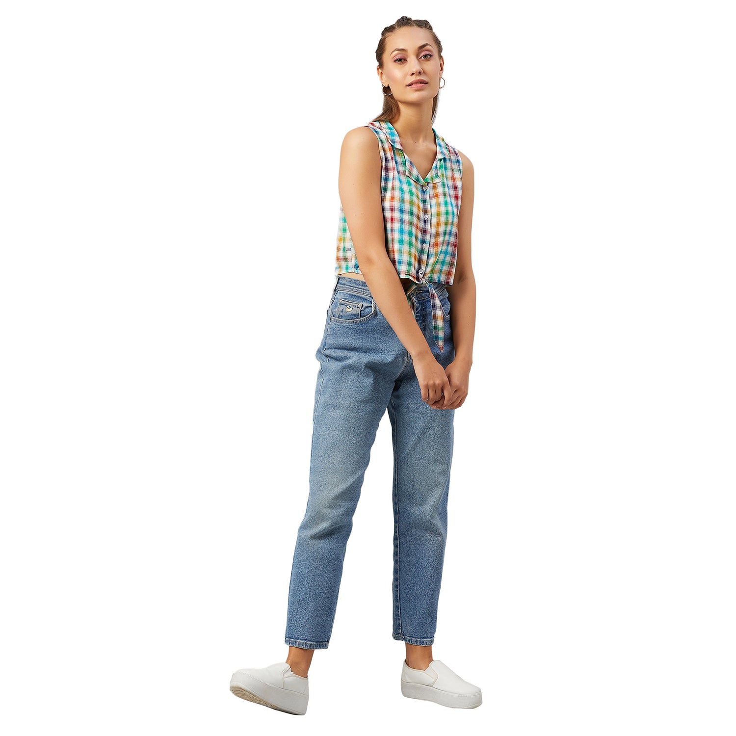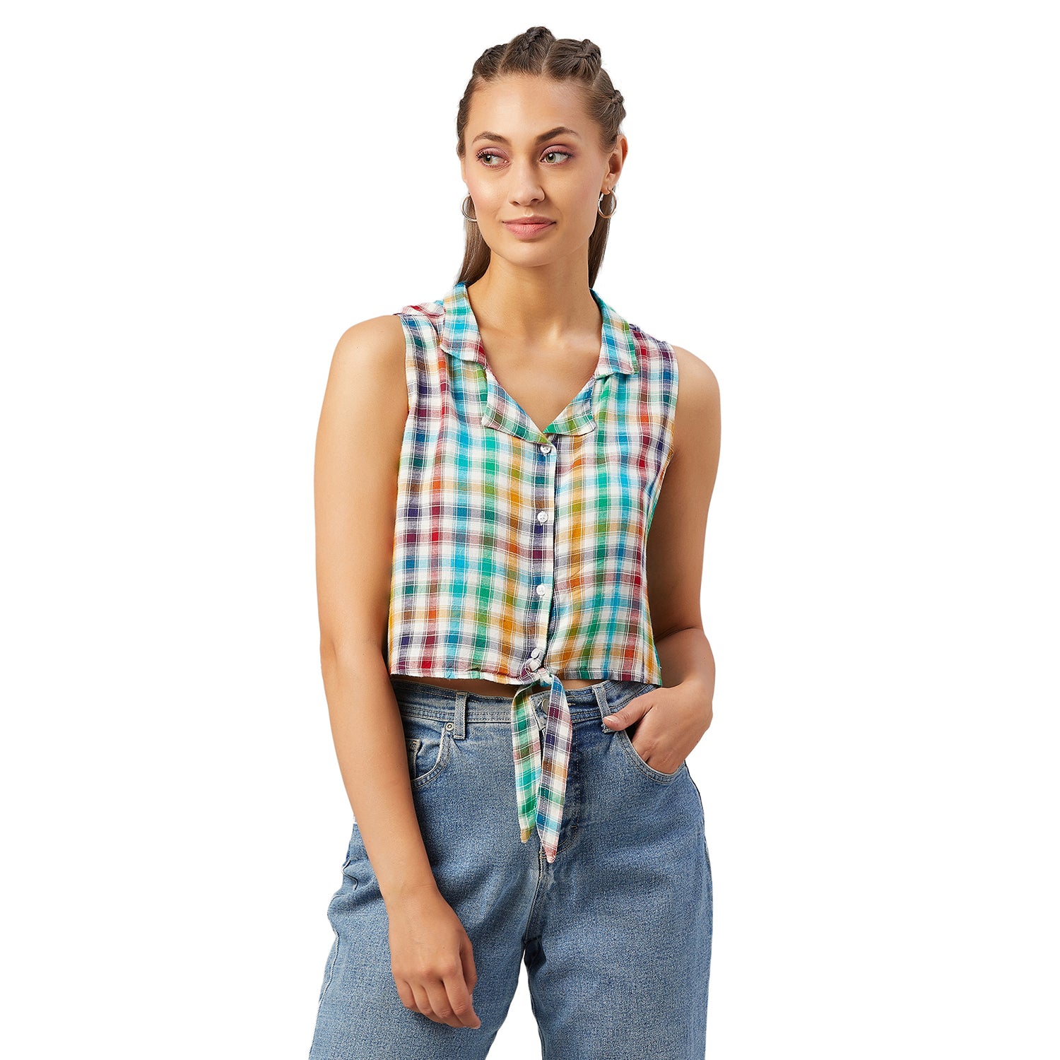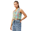 Chimpaaanzee Women Multicolor Checkered Viscose Knotted Crop Top