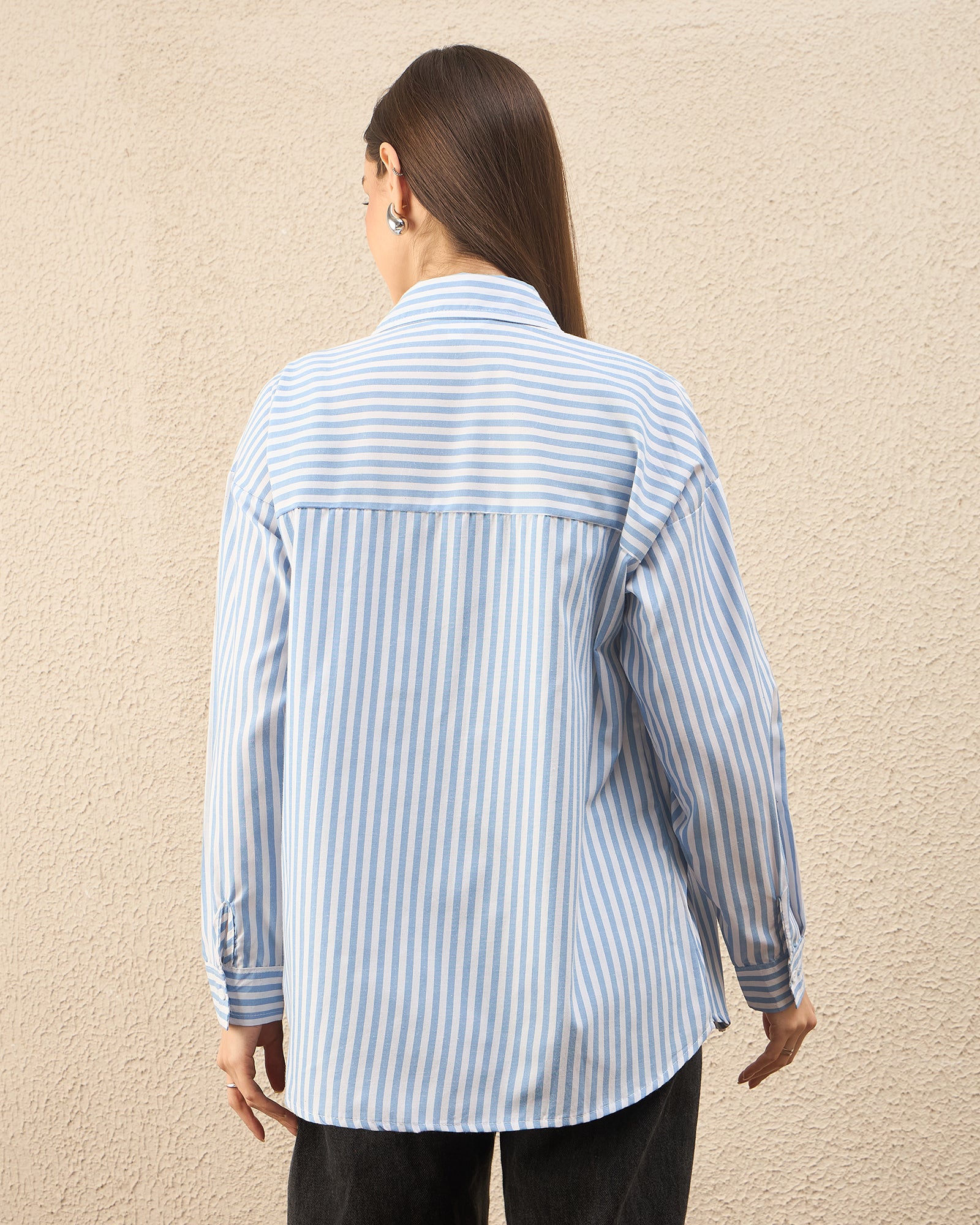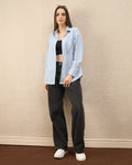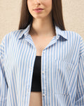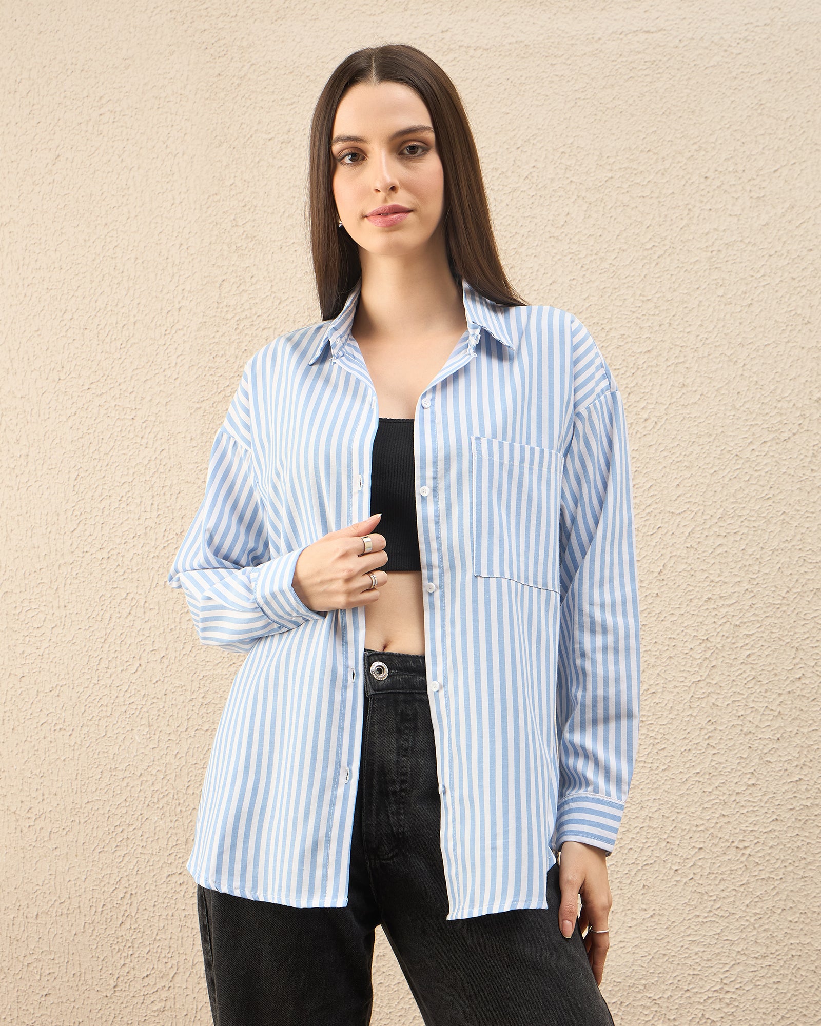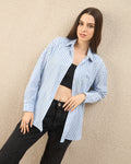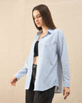 Chimpaaanzee Women Light Blue & White Oversized Shirt