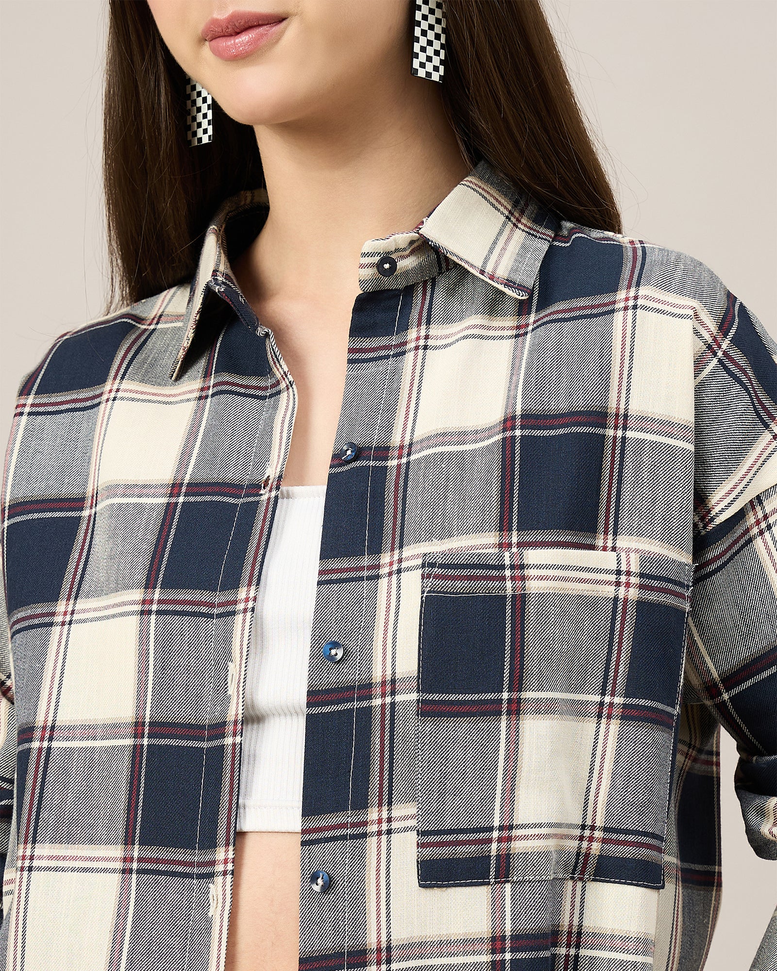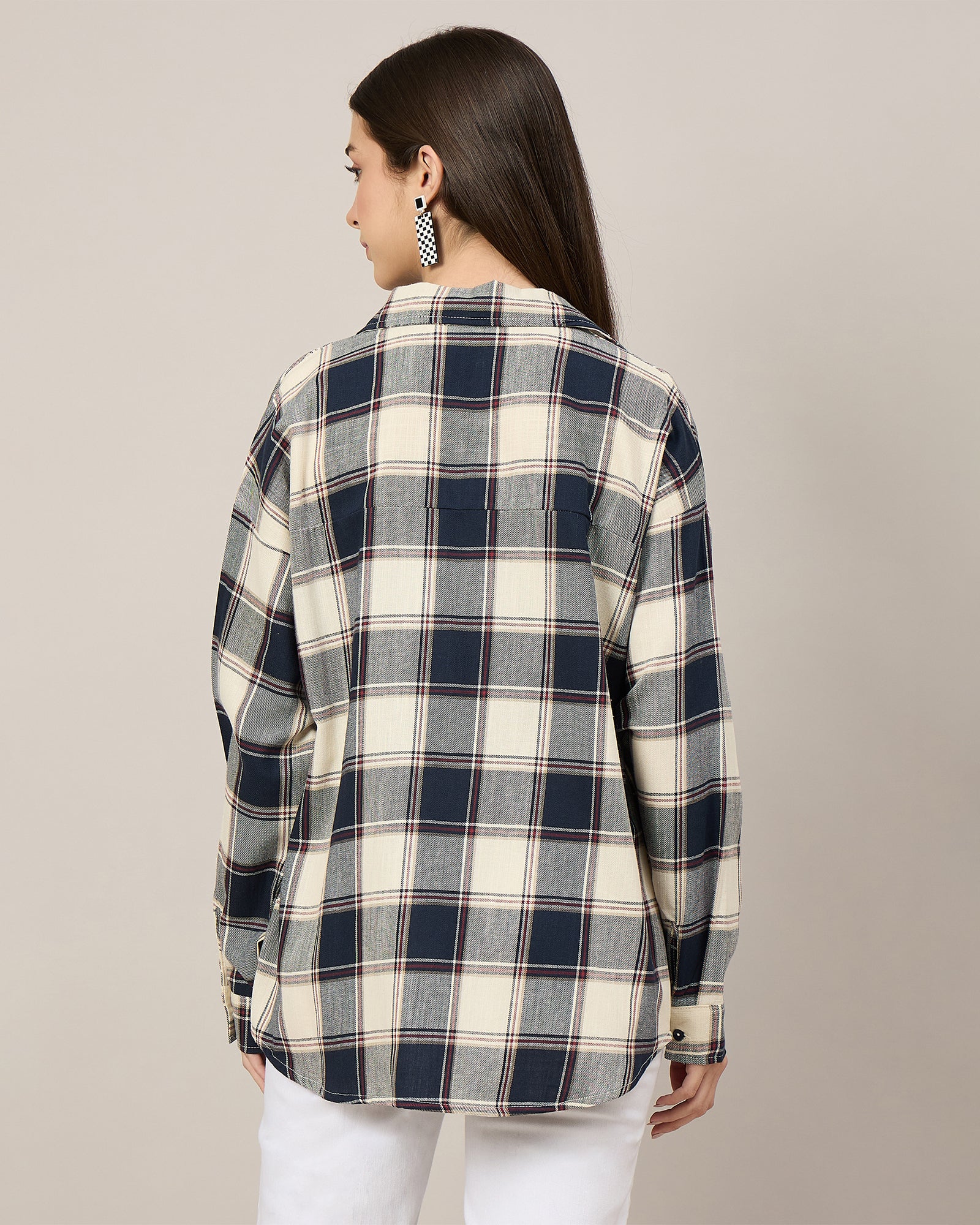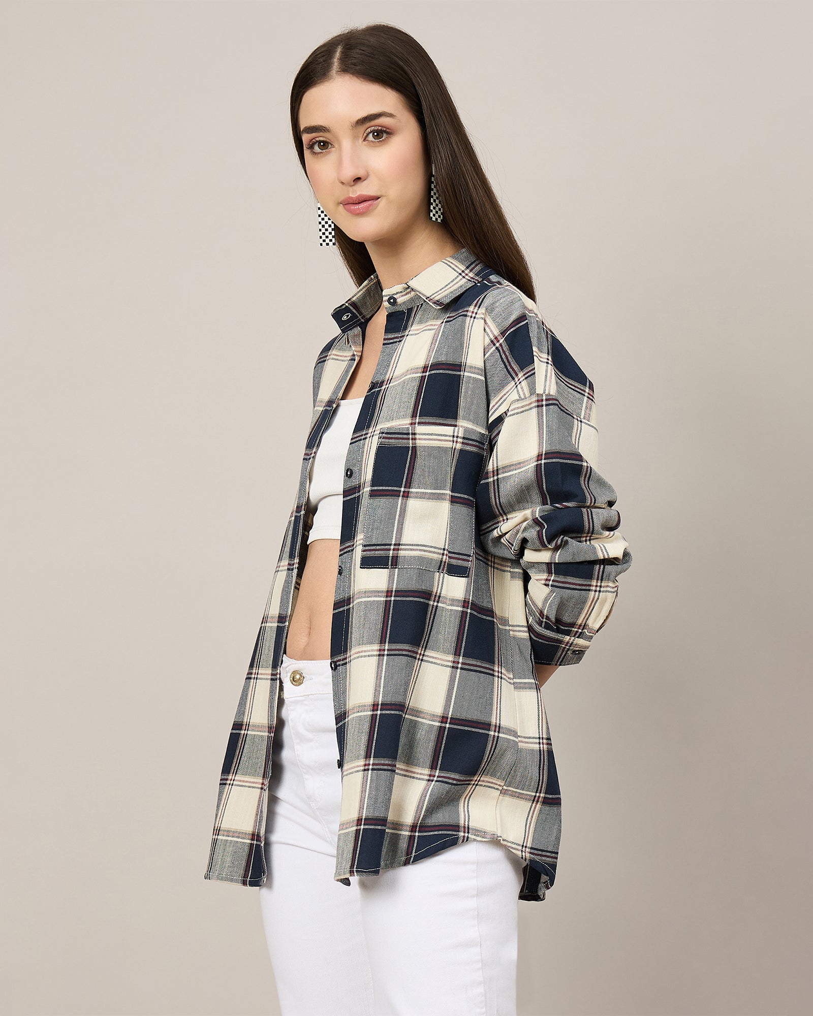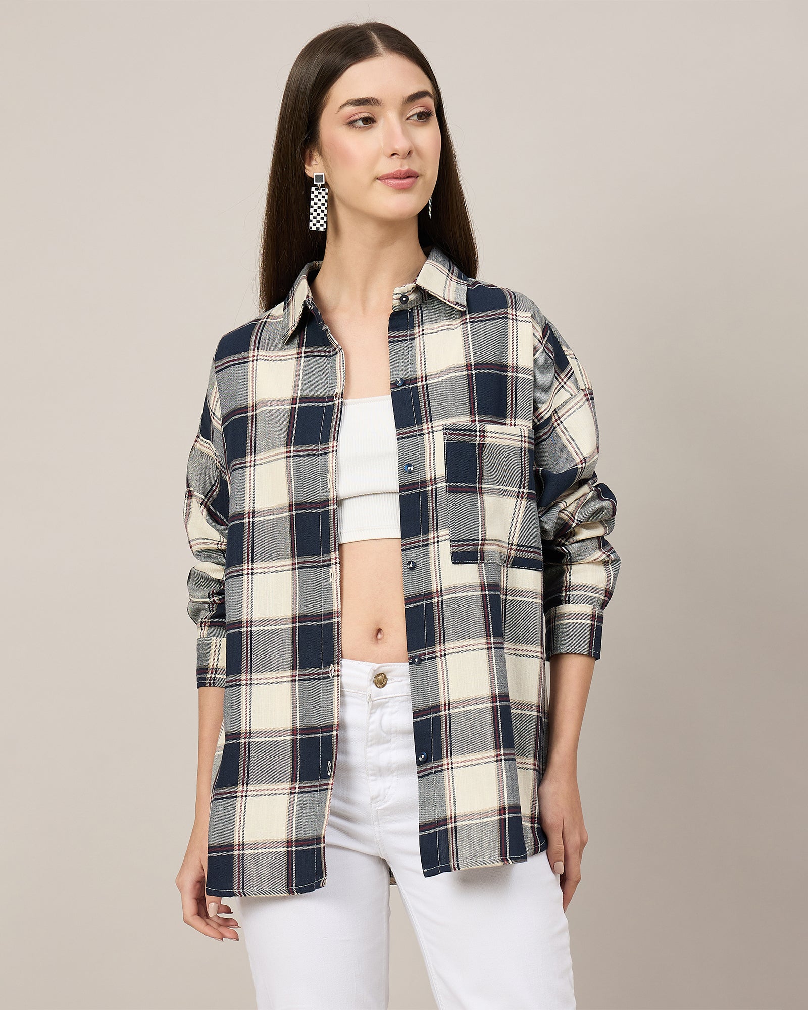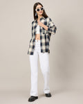 Chimpaaanzee Women Navy & Off white Oversized Shirt
