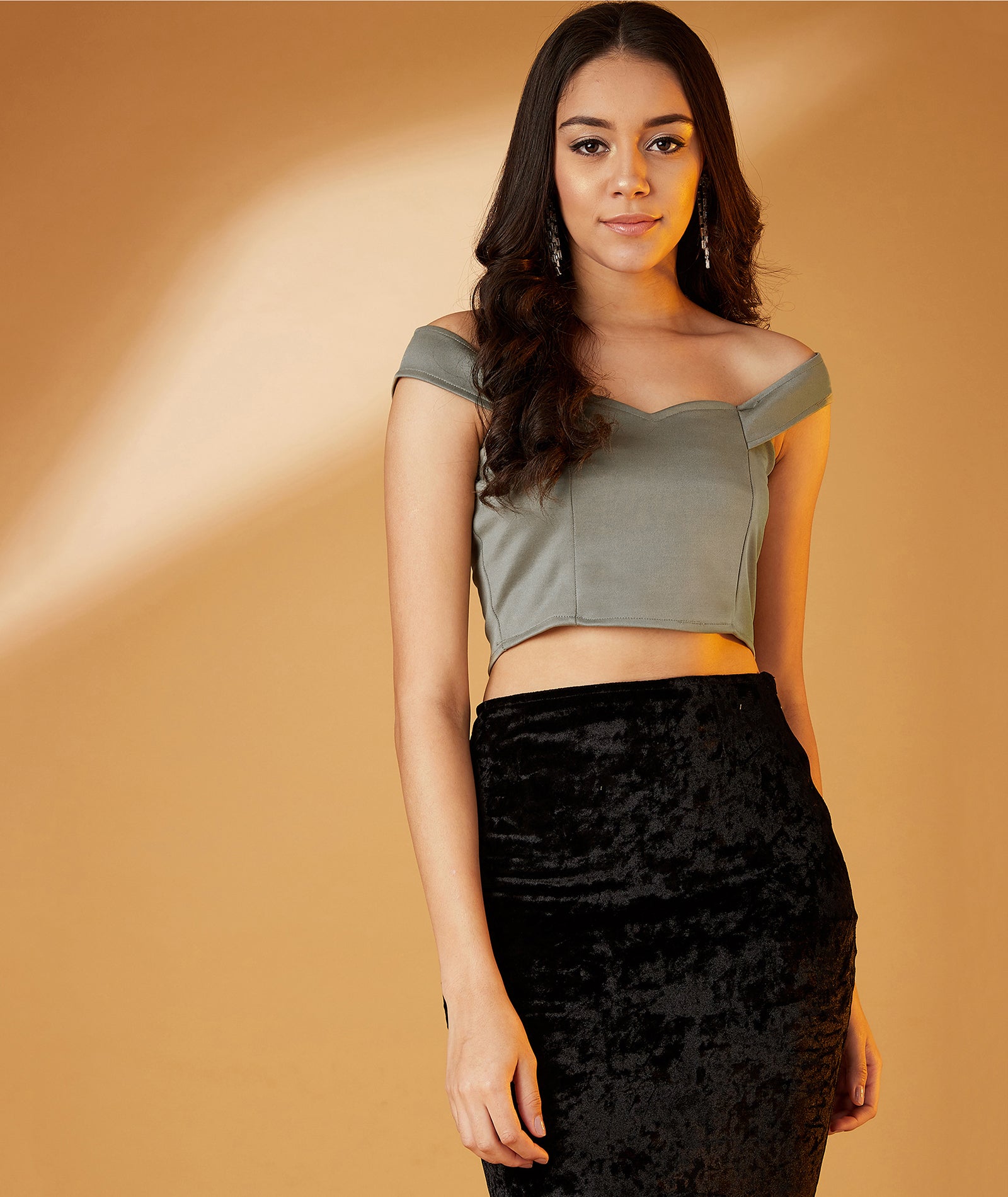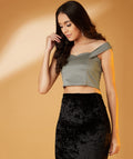 Chimpaaanzee Women Off Shoulder Bodycon Green Top
