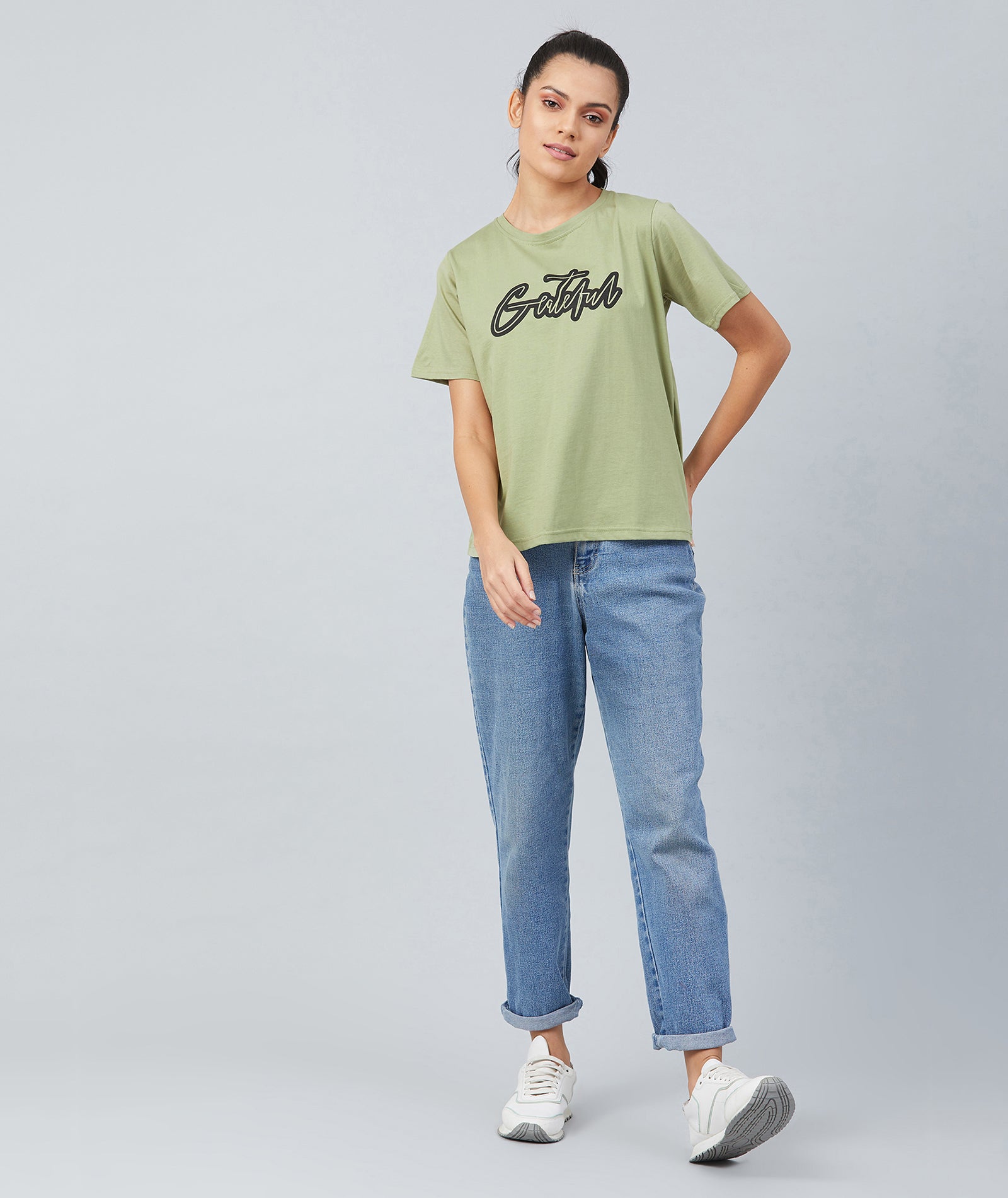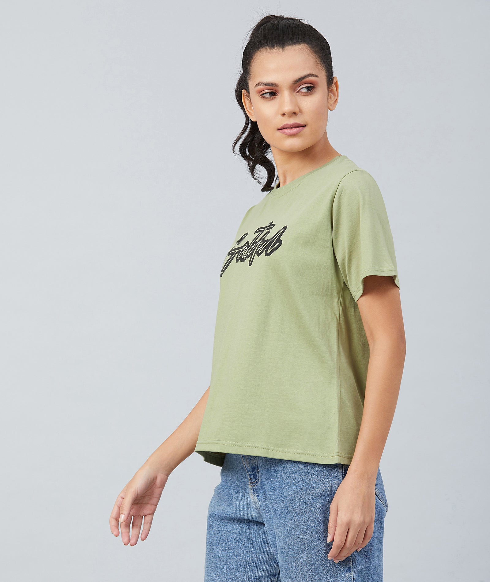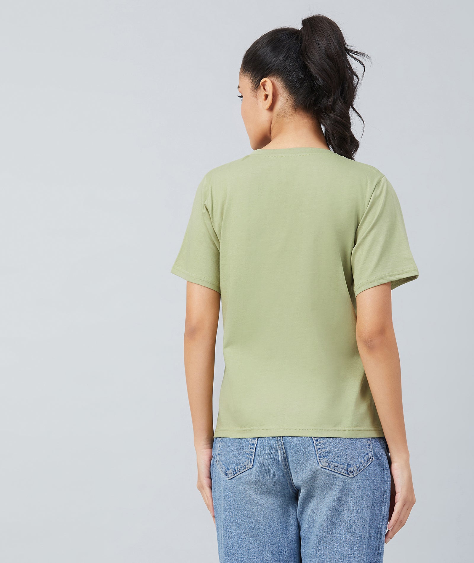 Chimpaaanzee Women Olive Green Loose Fit T-shirt