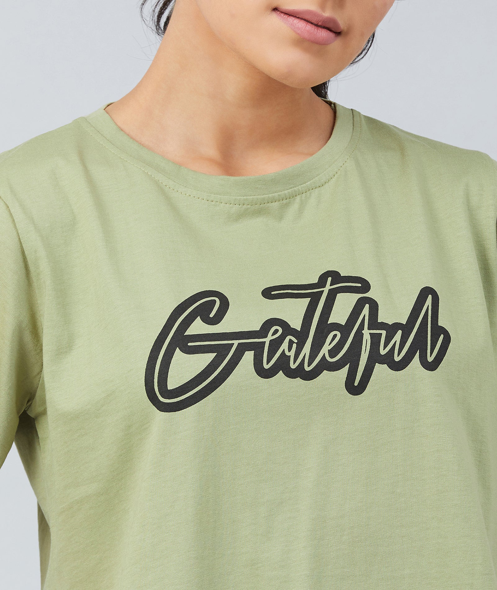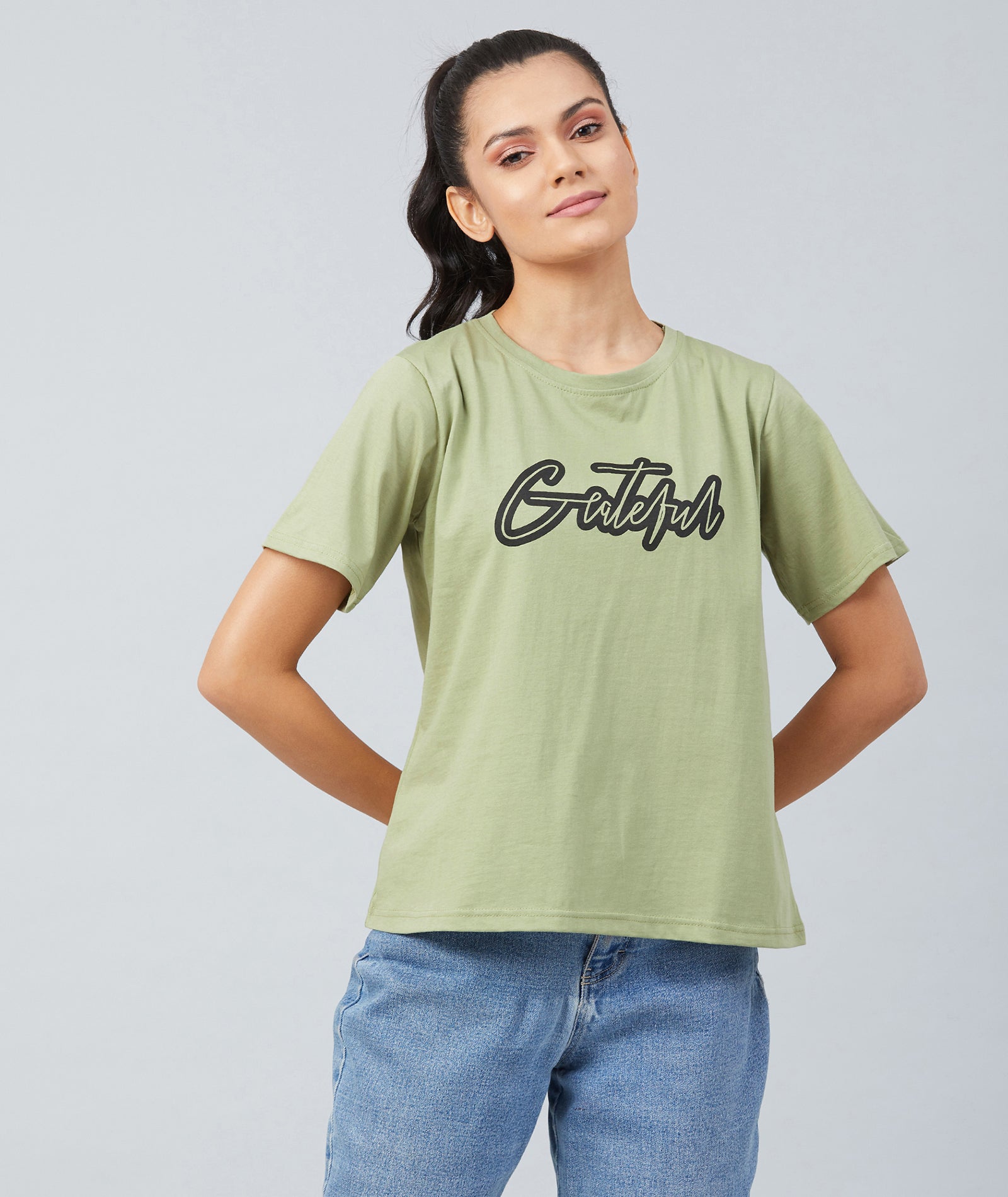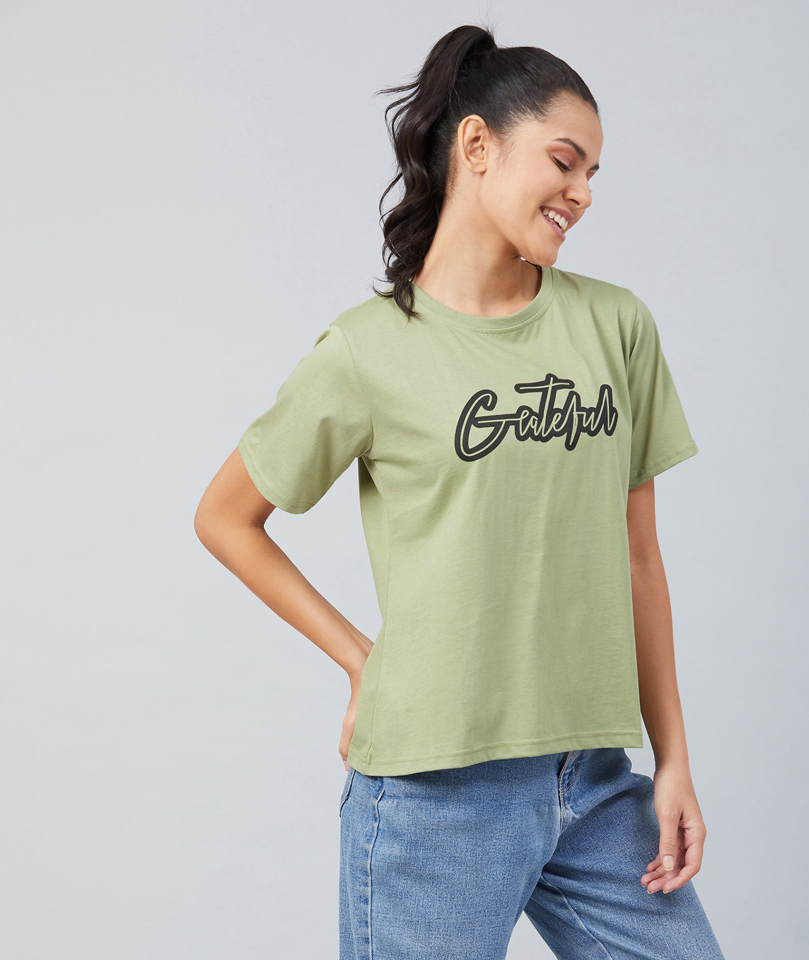 Chimpaaanzee Women Olive Green Loose Fit T-shirt