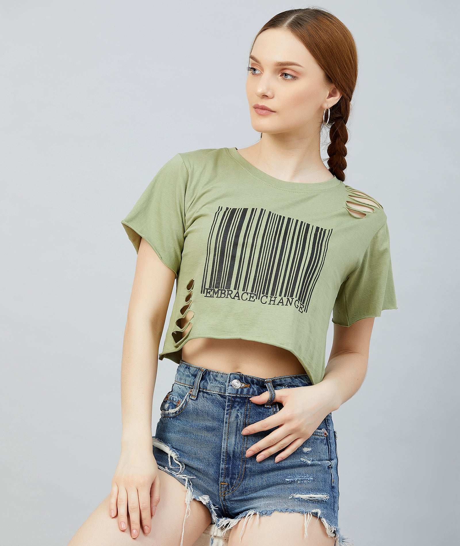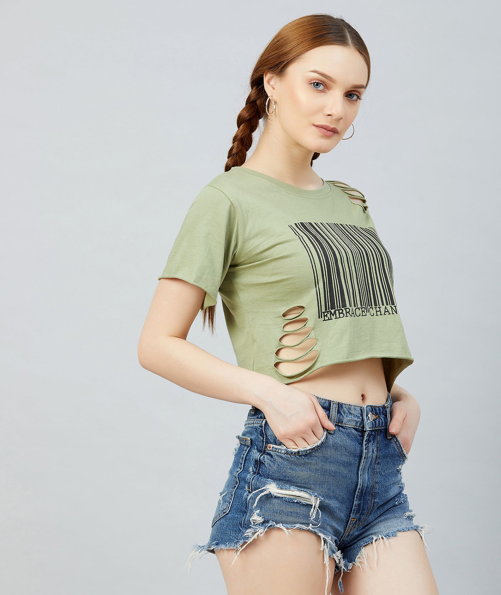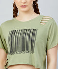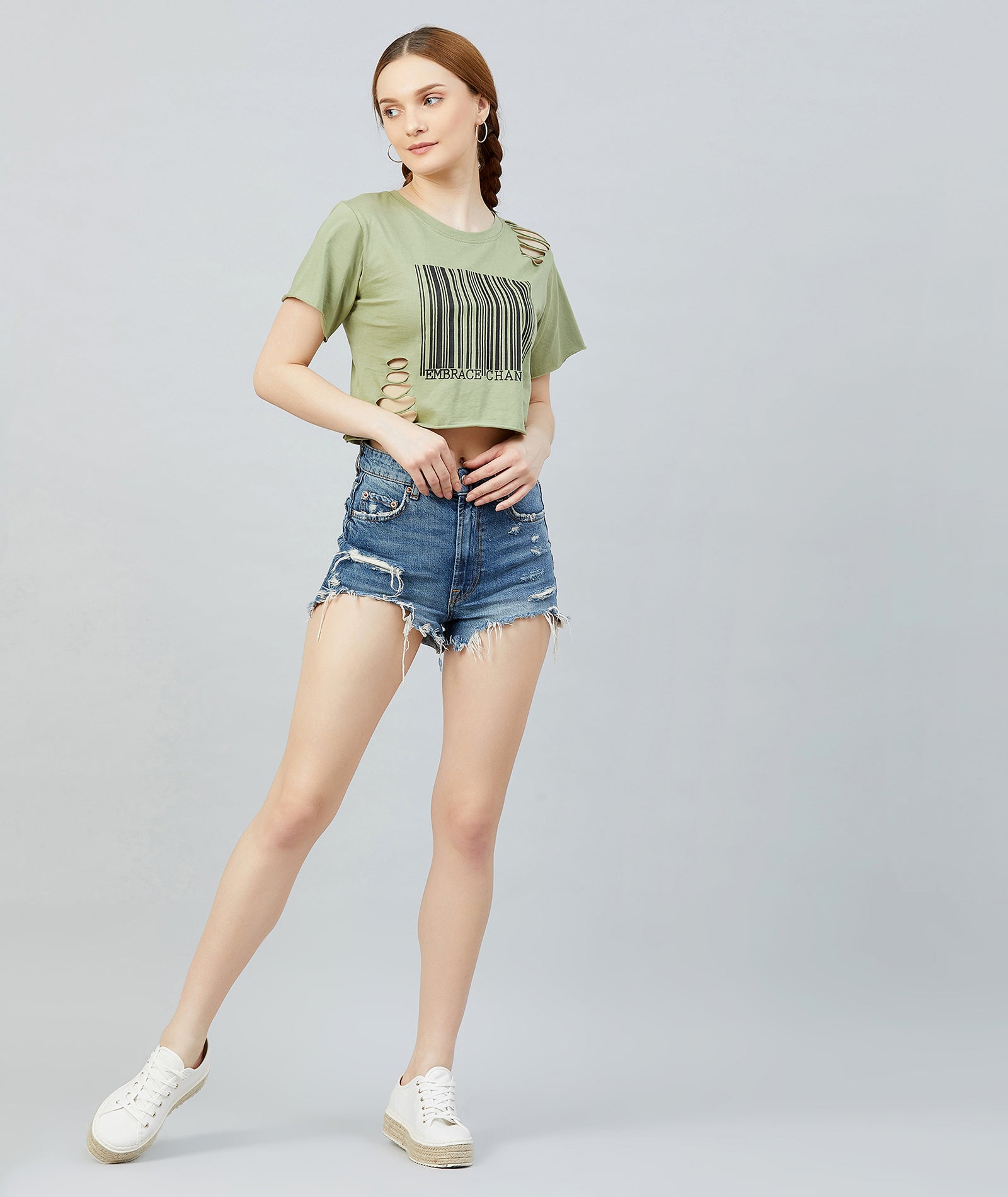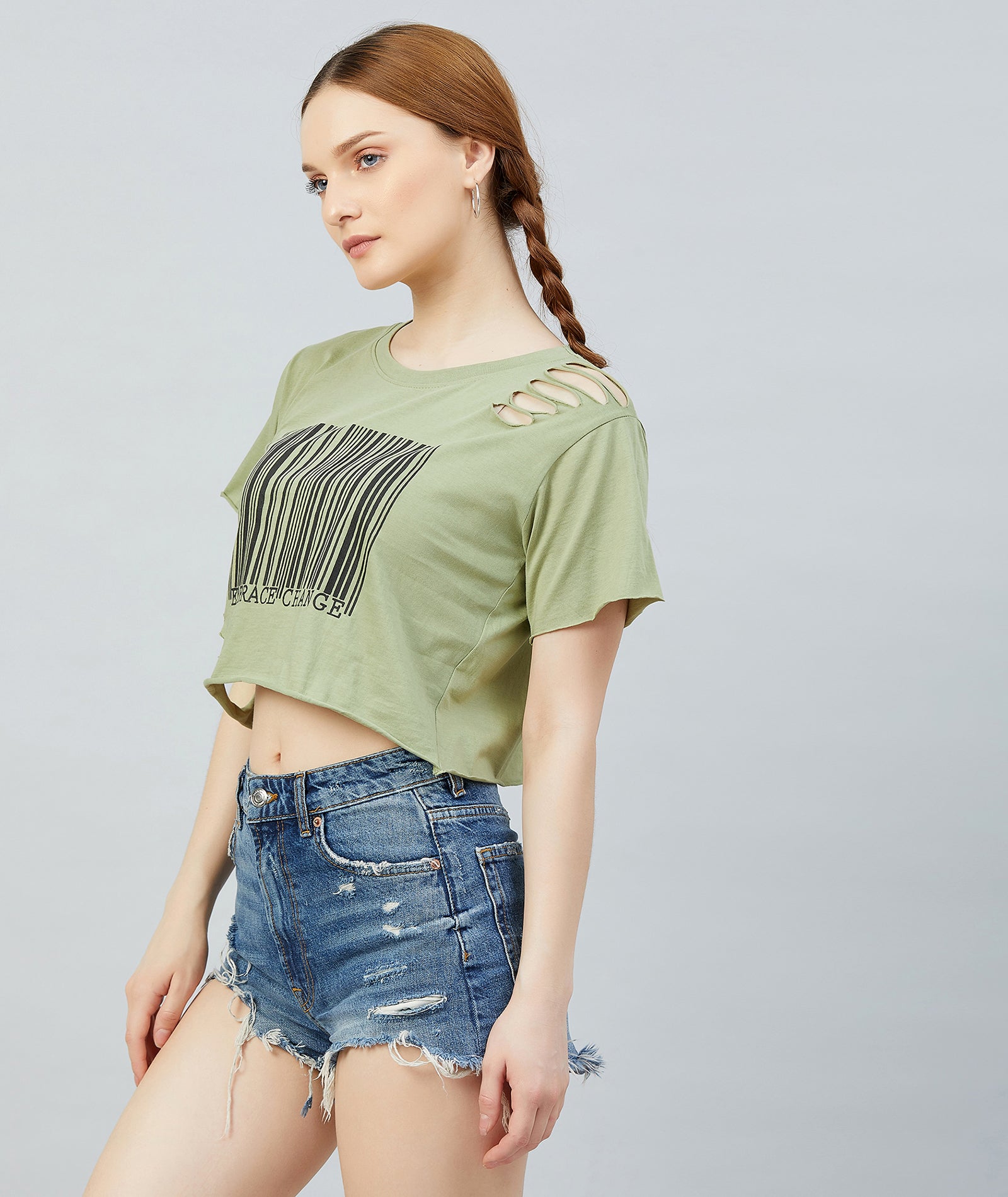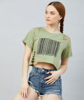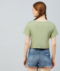 Chimpaaanzee Women Olive Green Ribbed Style Crop T-shirt
