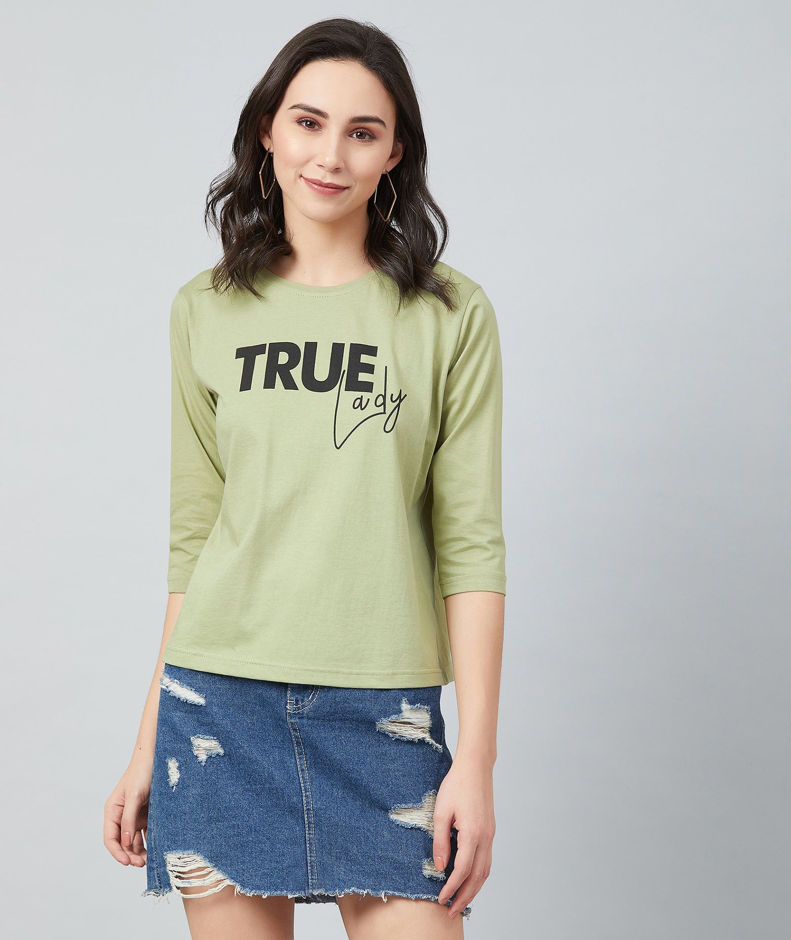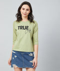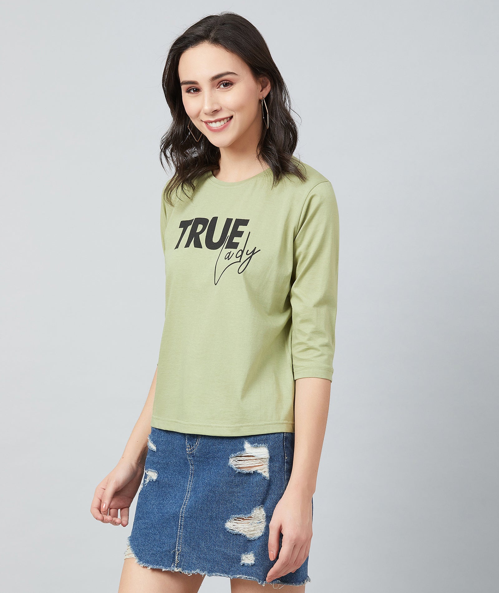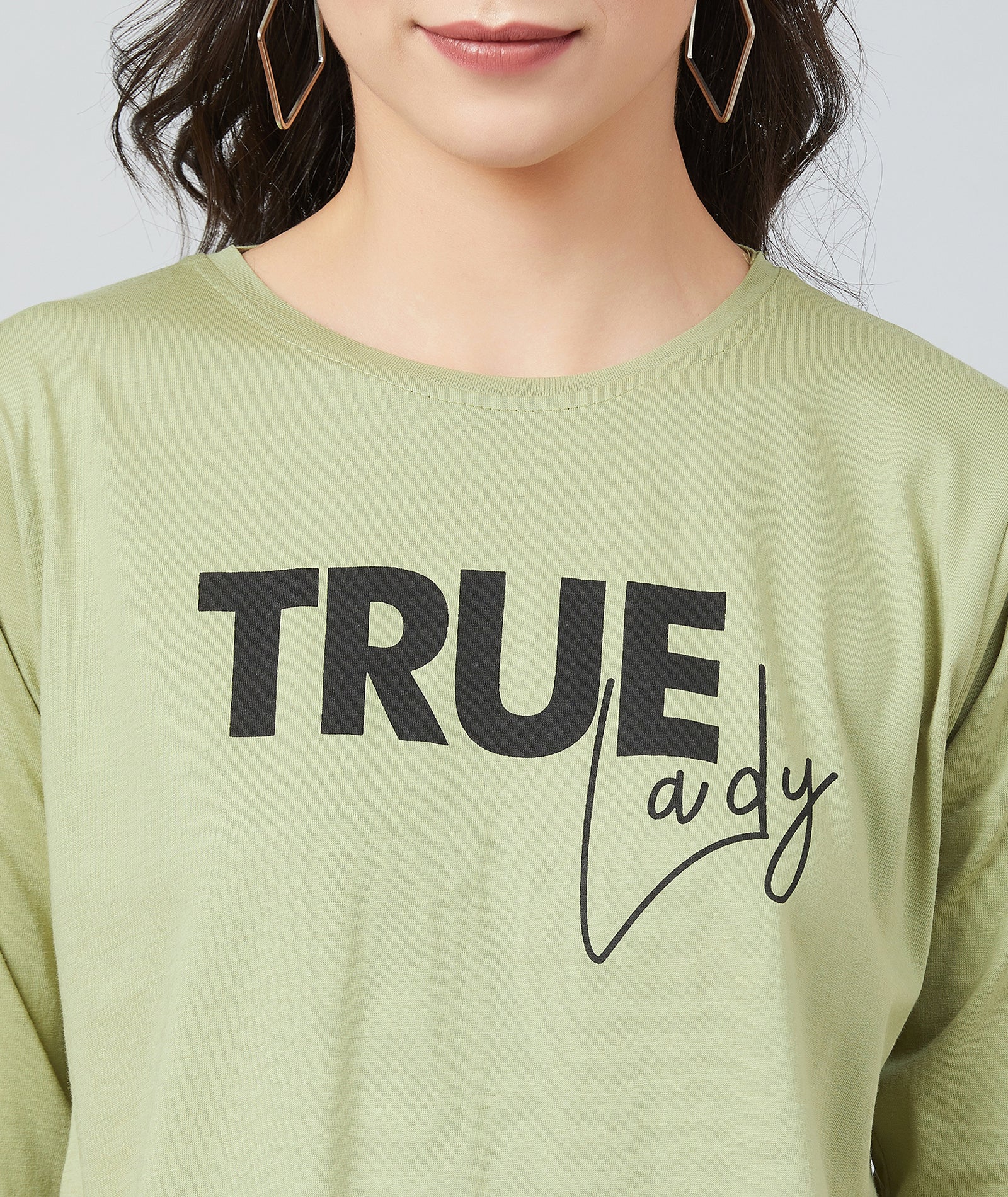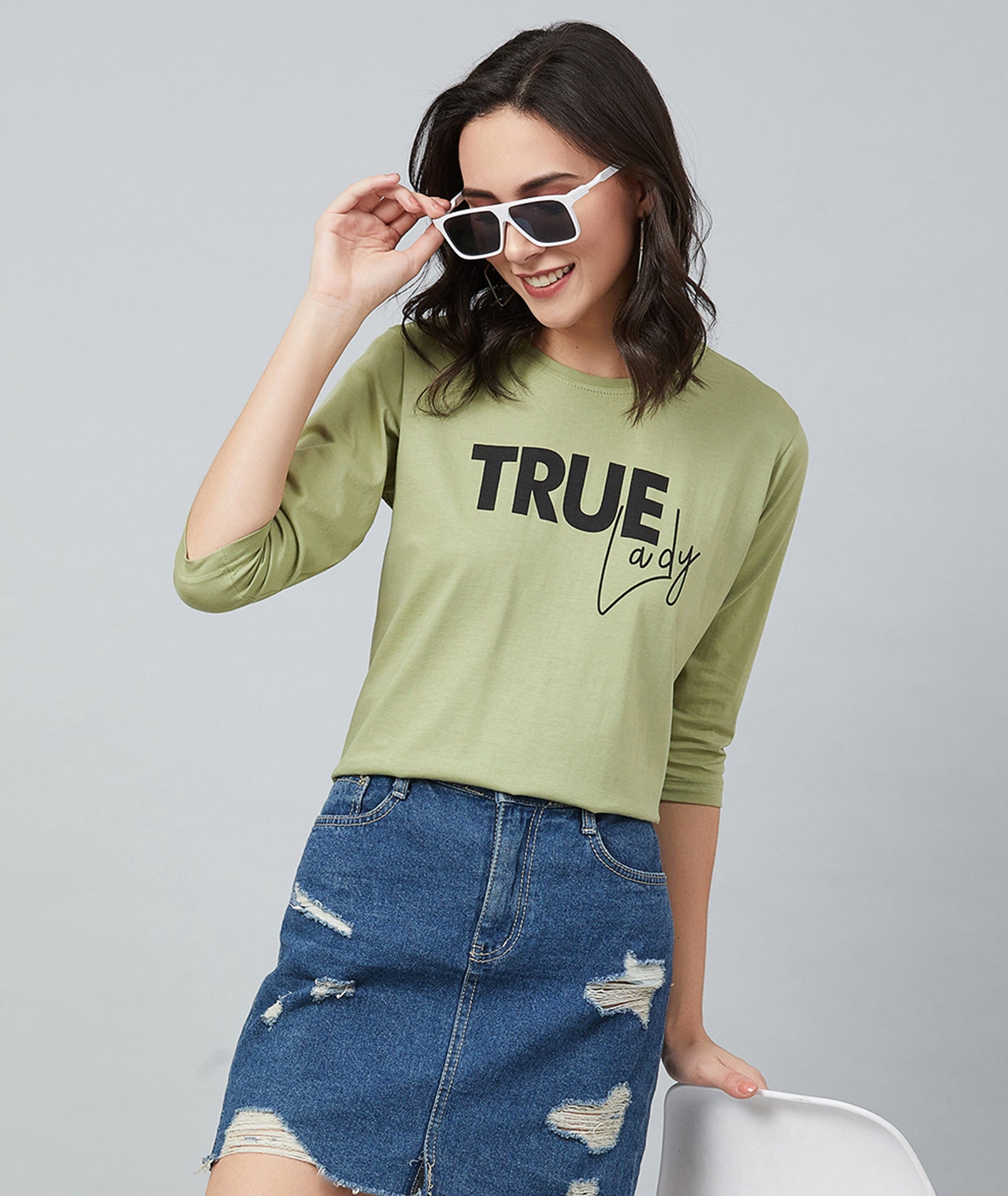 Chimpaaanzee Women Olive Green Round Neck Full Sleeve T-shirt