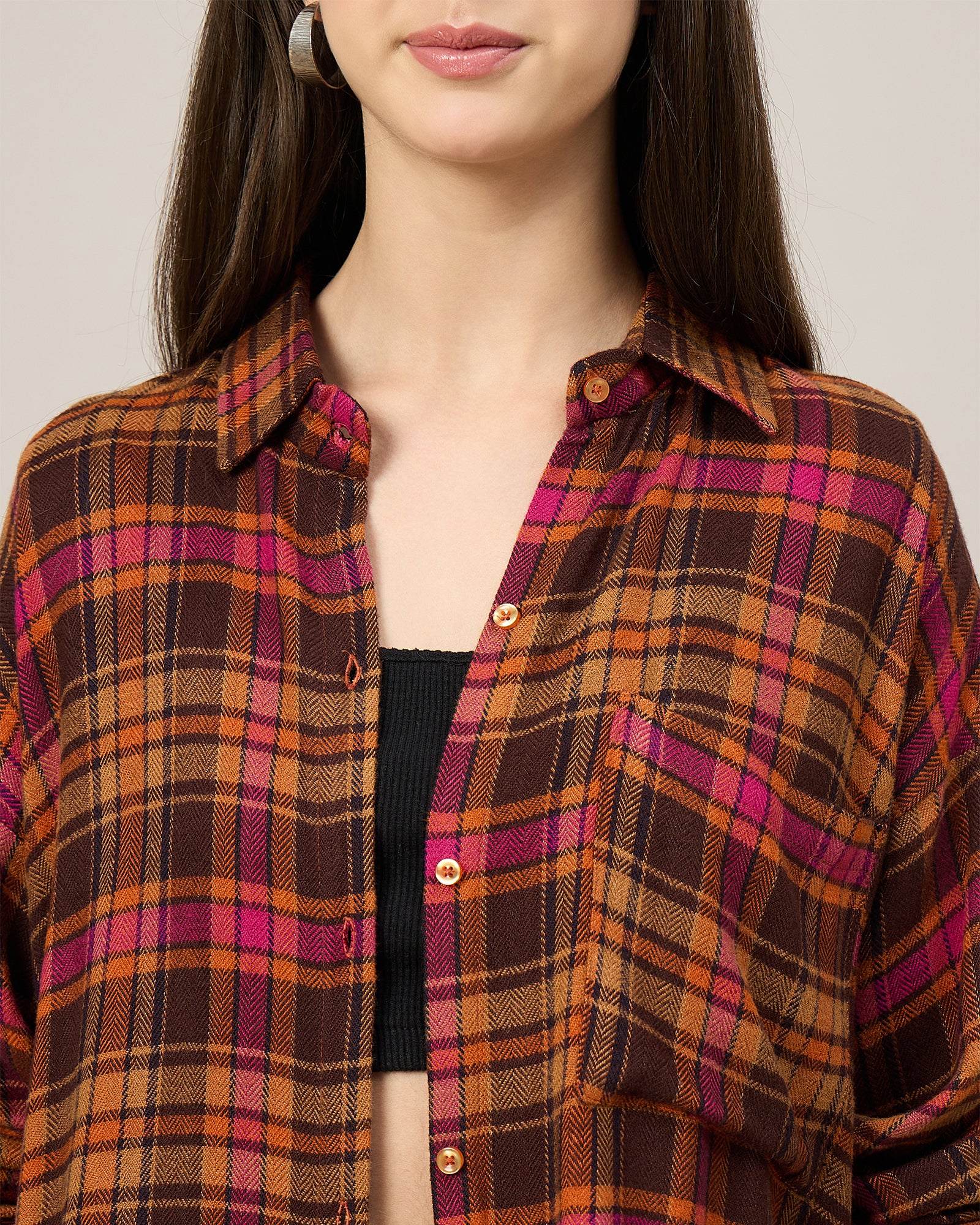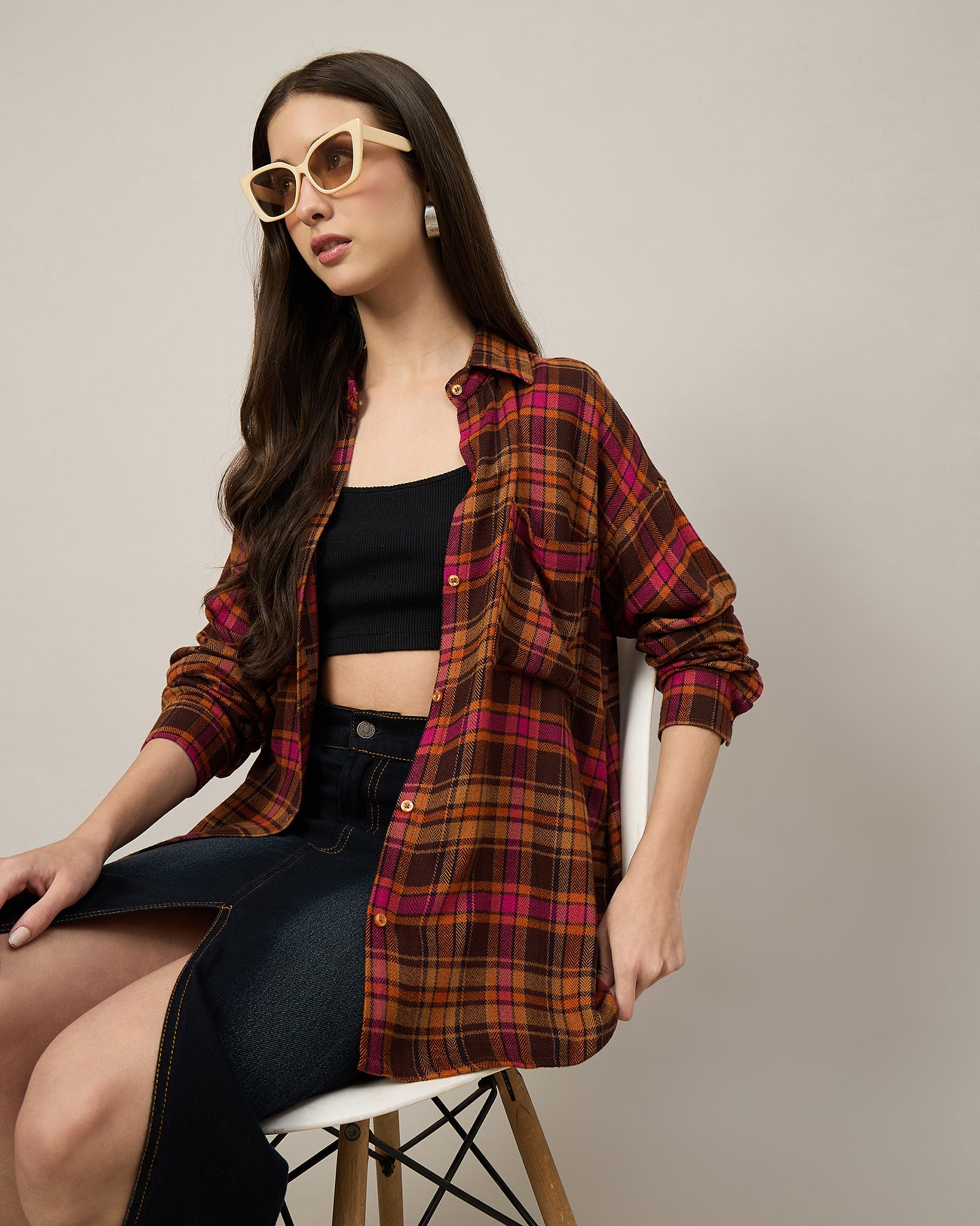 Chimpaaanzee Women Orange & Pink Oversized Shirt