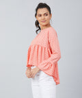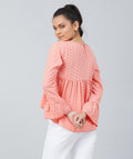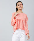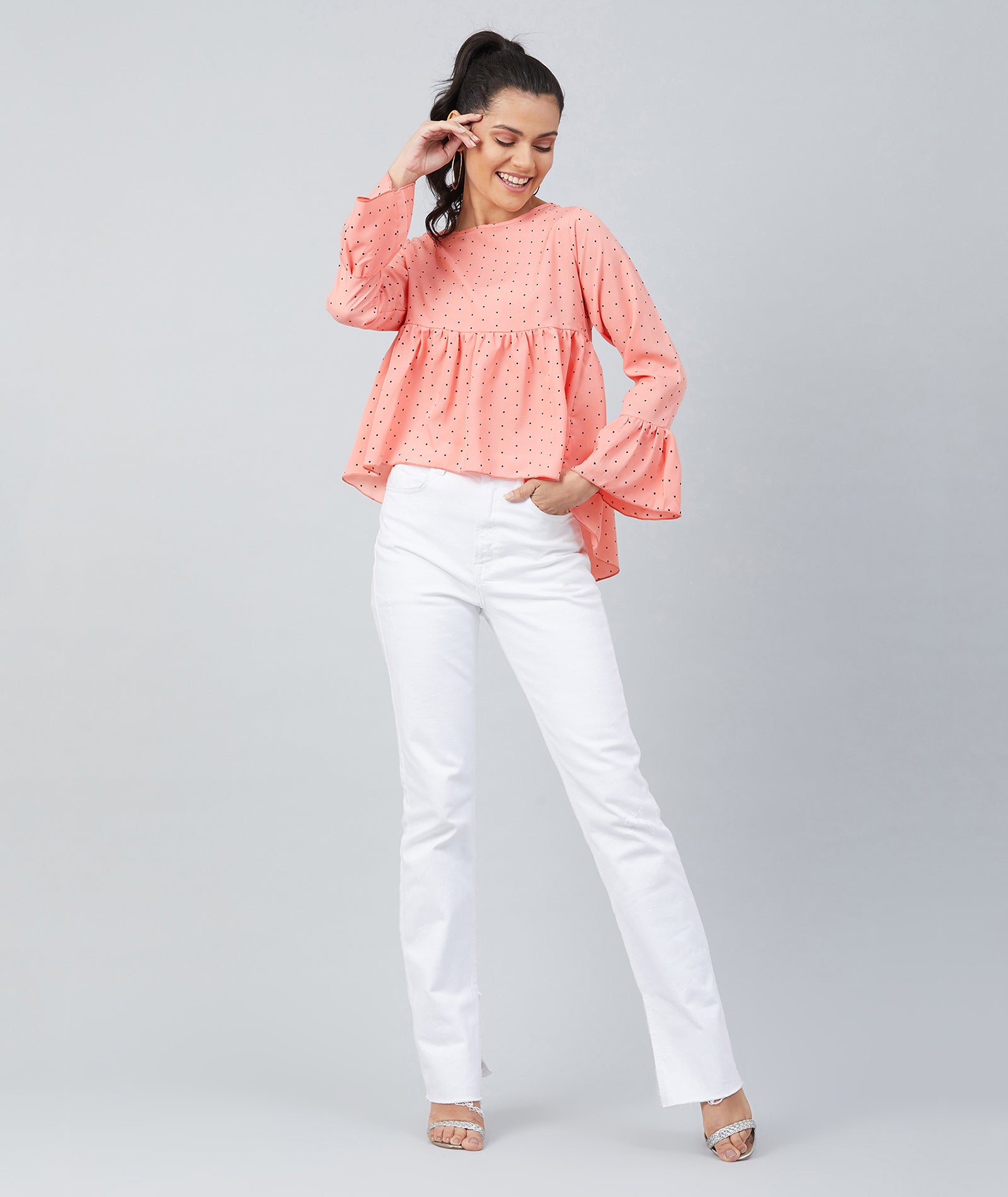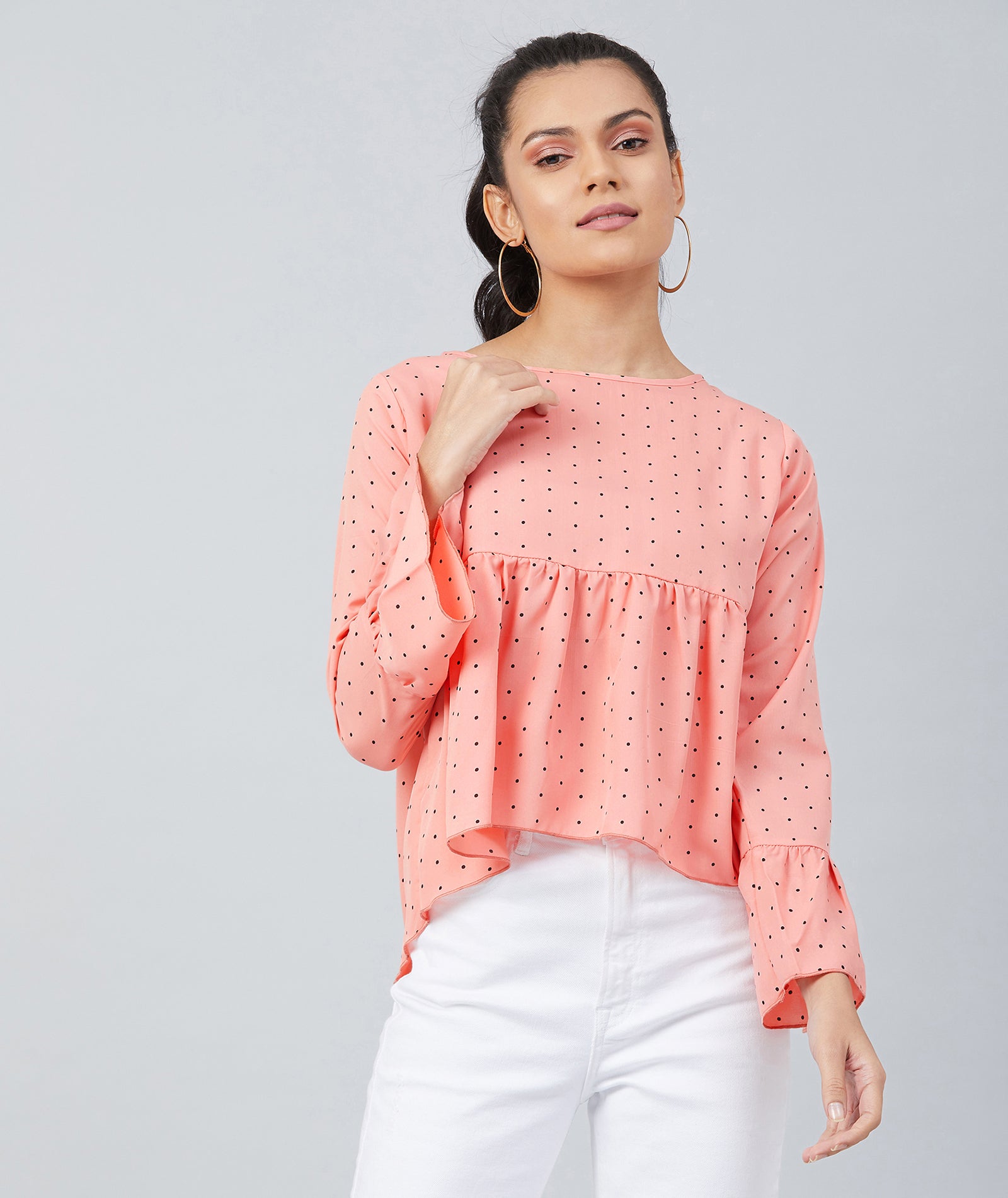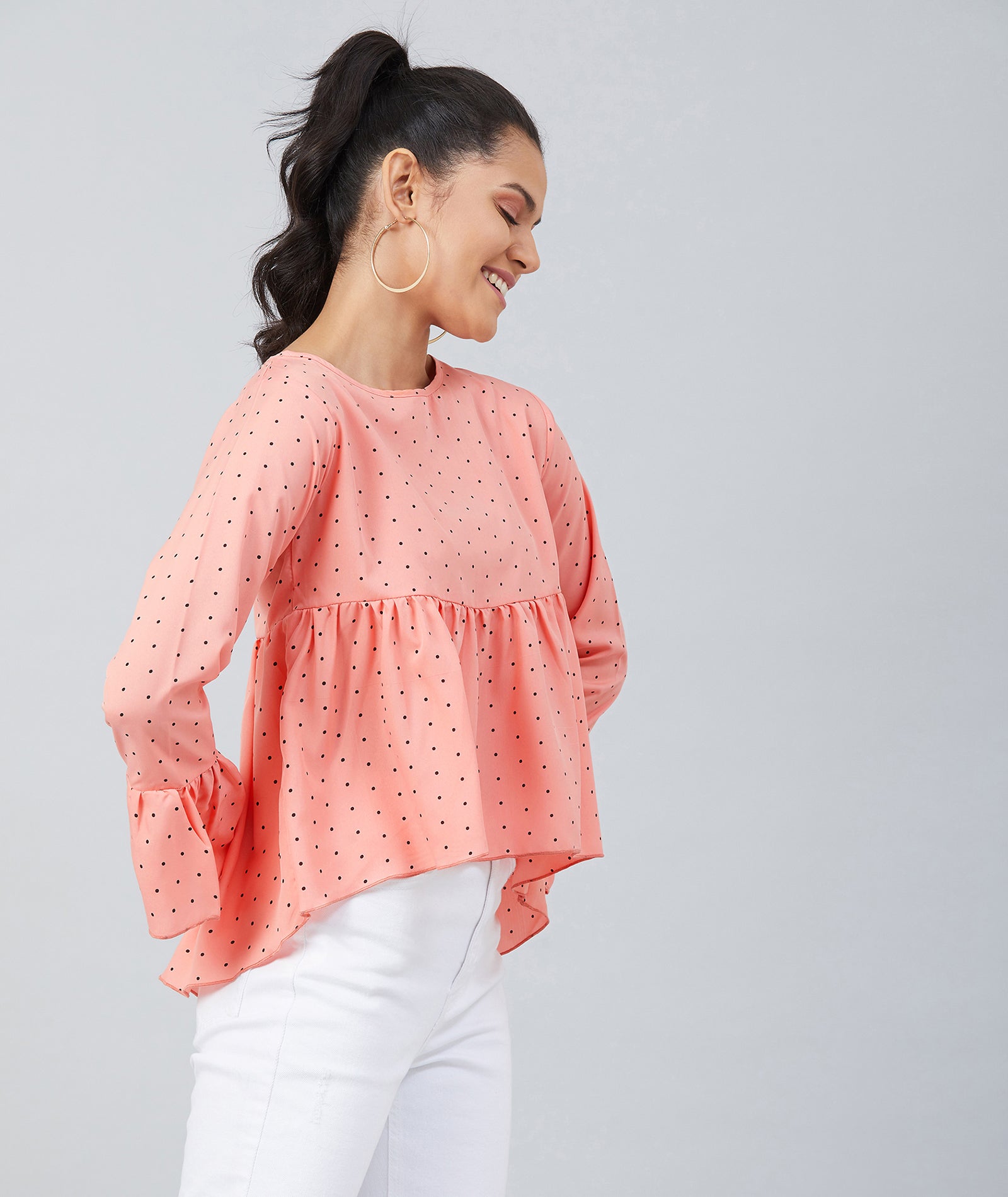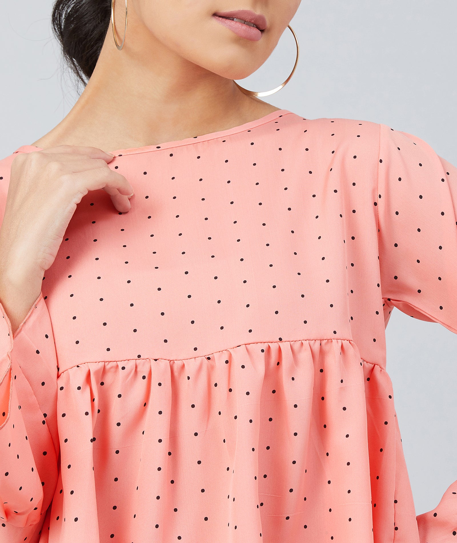 Chimpaaanzee women Peach Crepe Polka Doted Full Sleeve Top