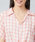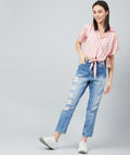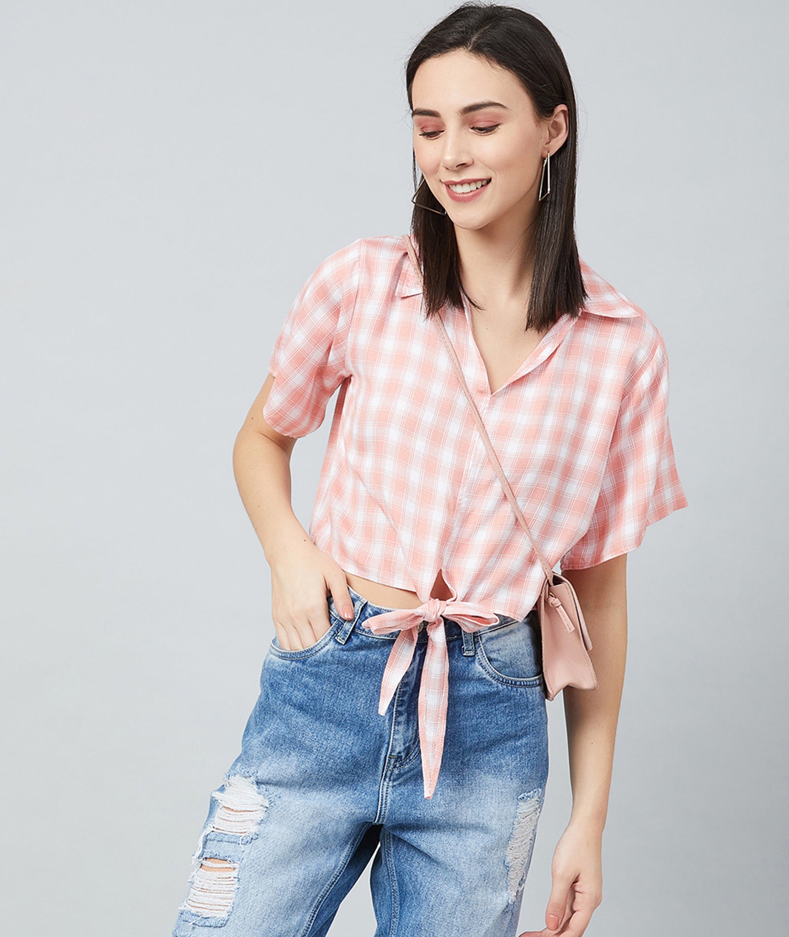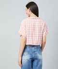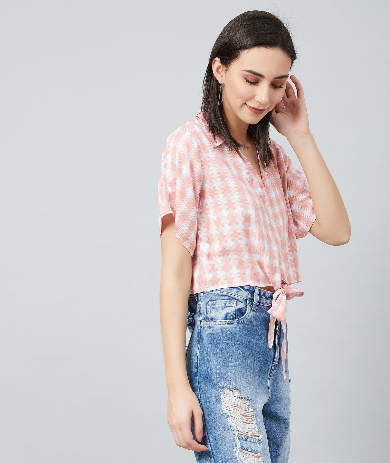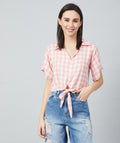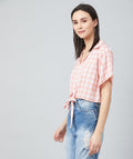 Chimpaaanzee Women Pink and White Checks Knotted Crop Top