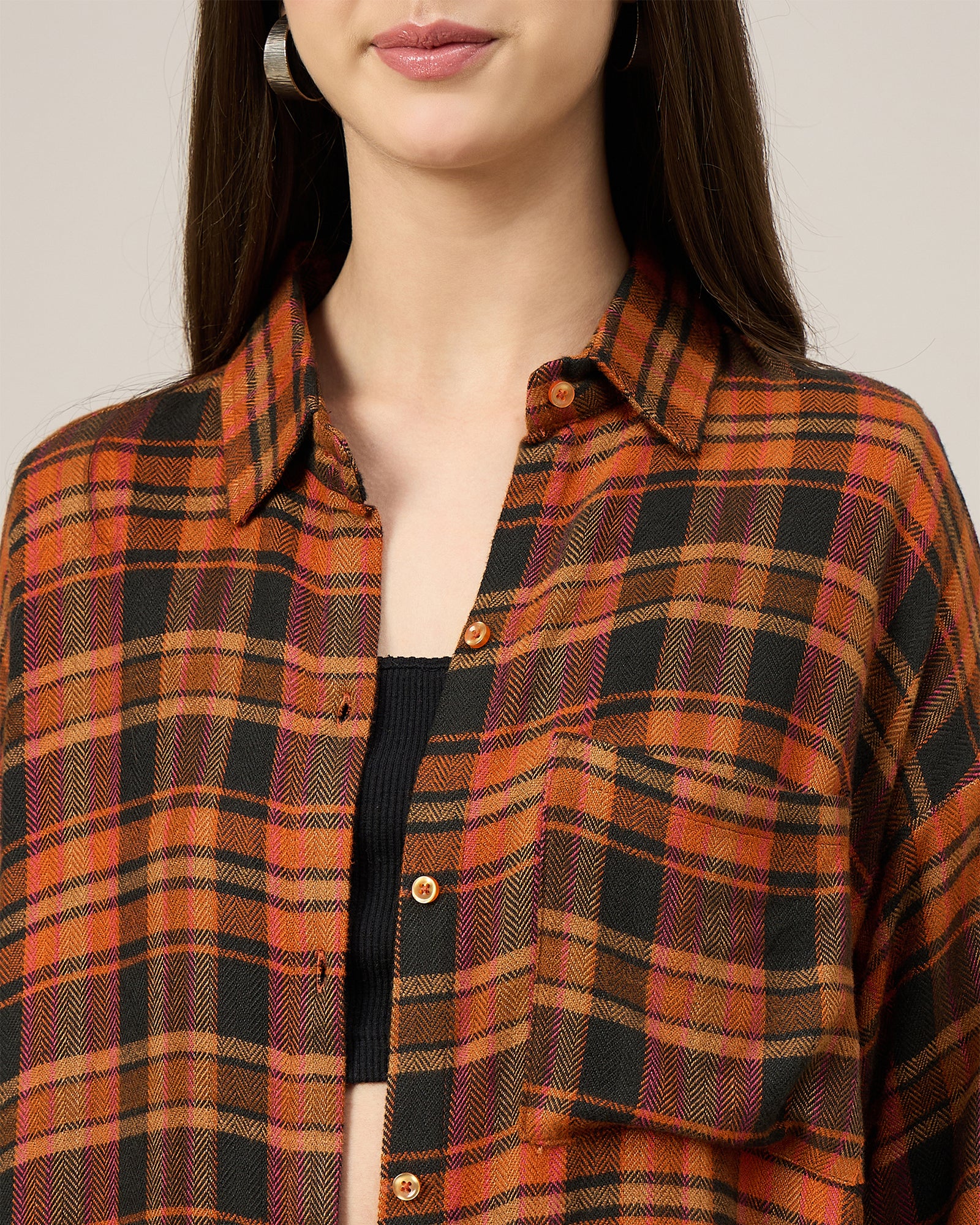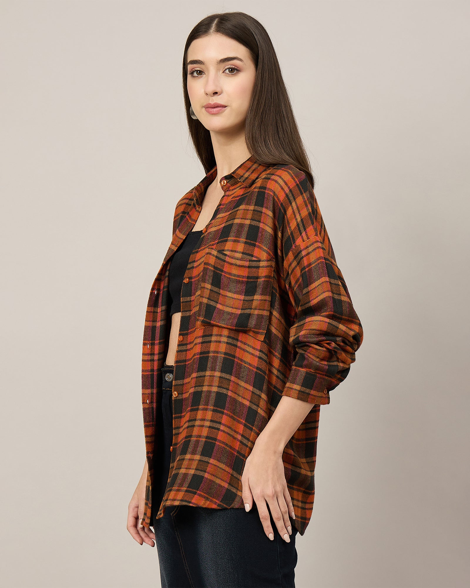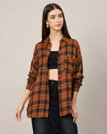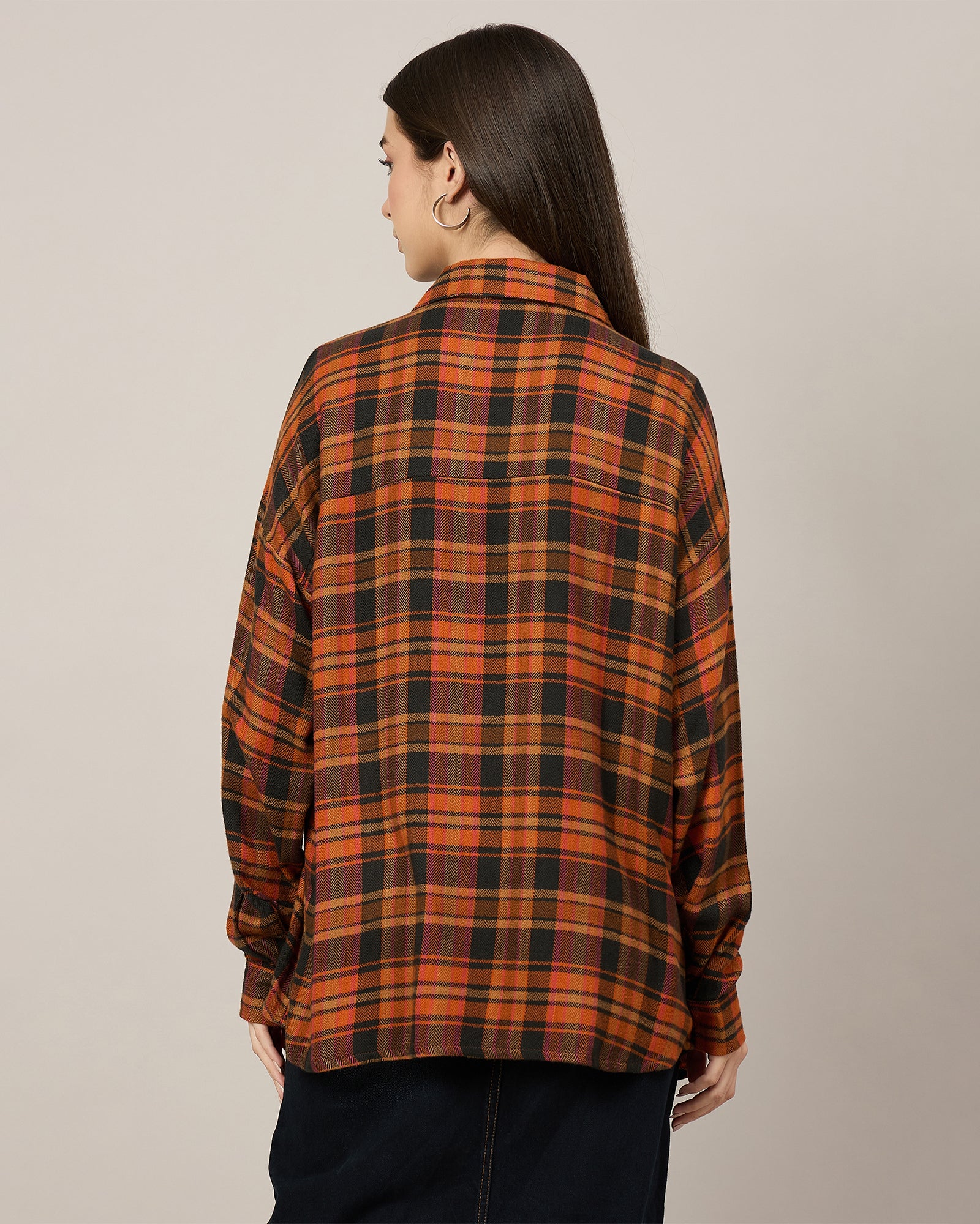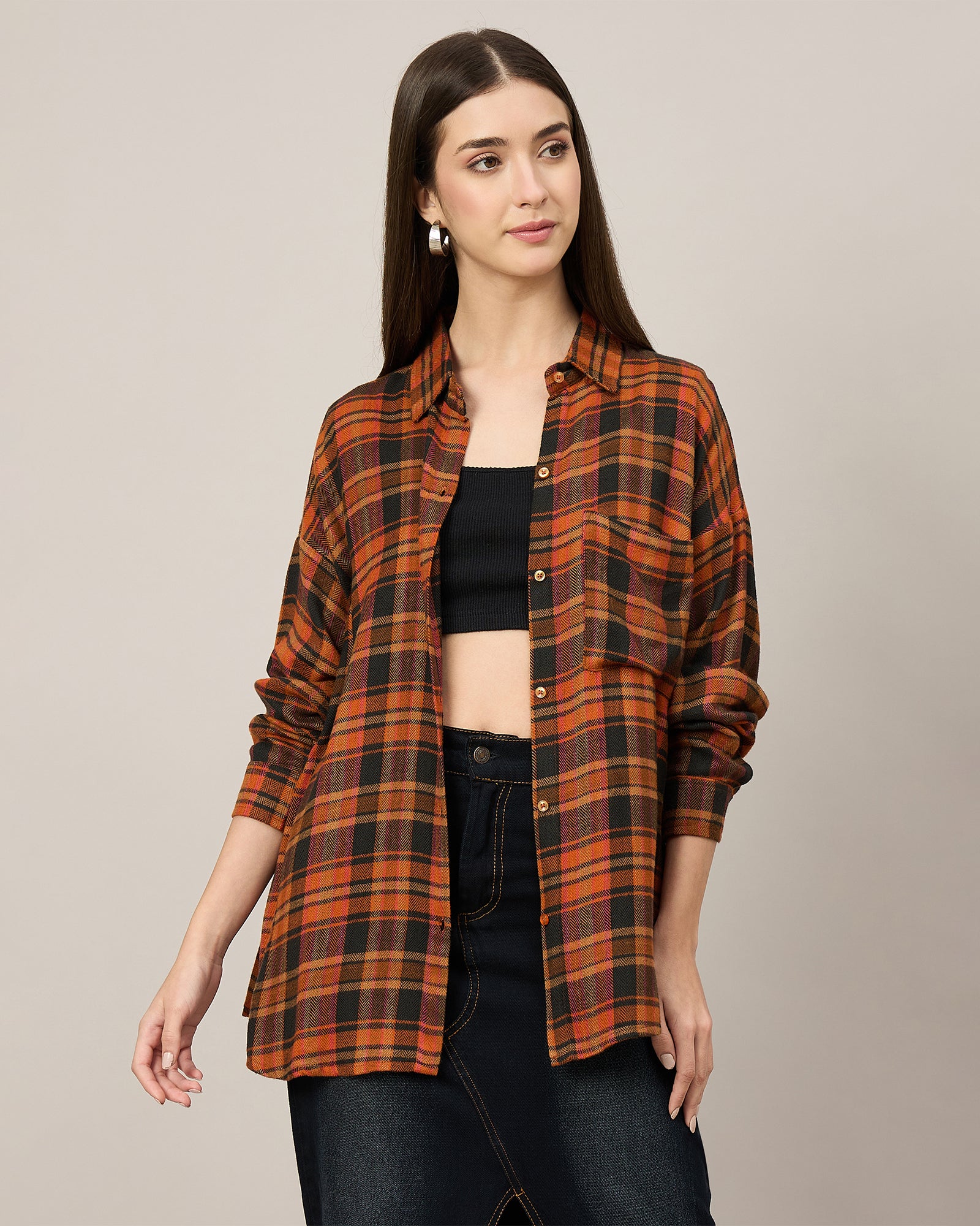 Chimpaaanzee Women Orange & Green Oversized Shirt
