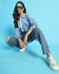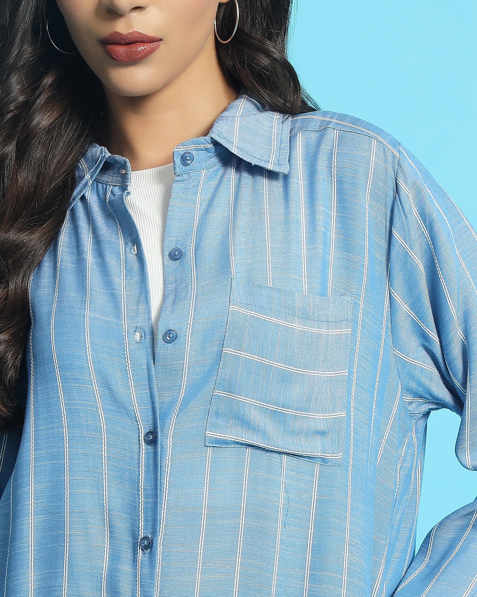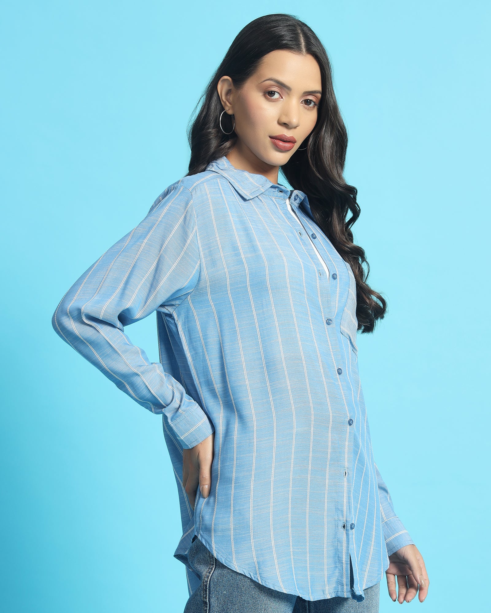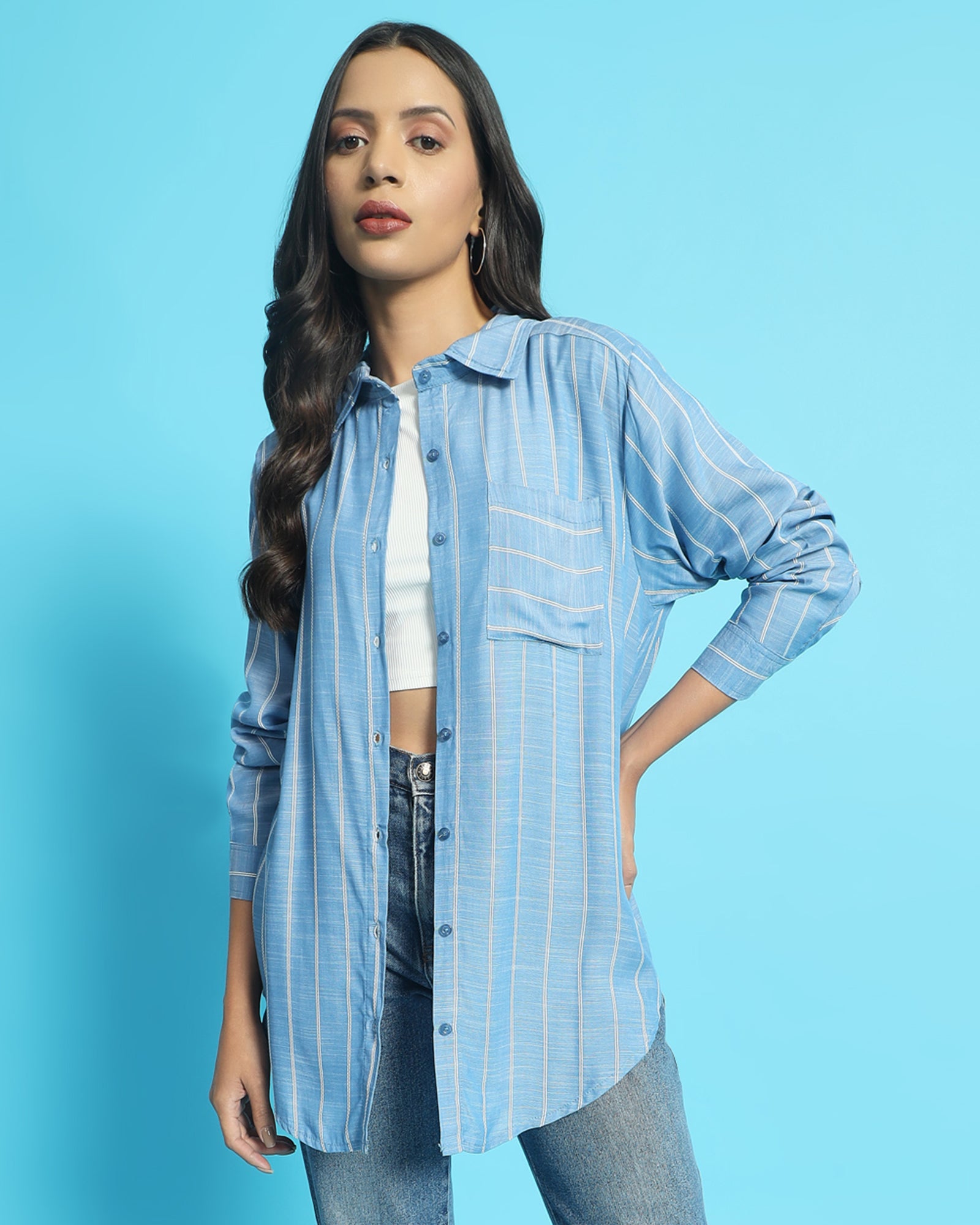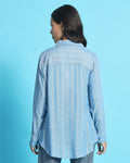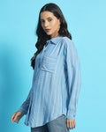 Chimpaaanzee Women Blue & White Oversized Shirt