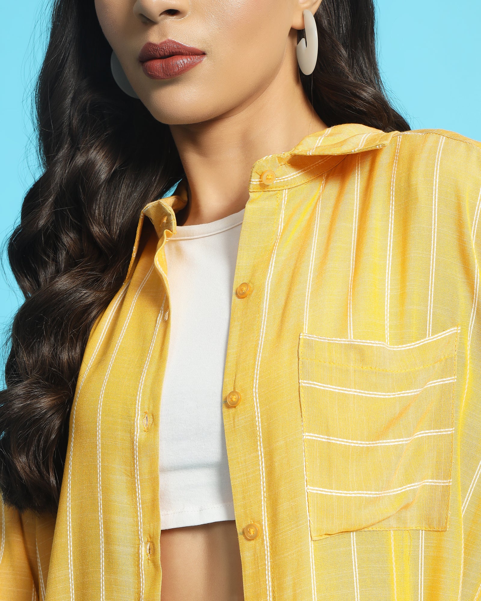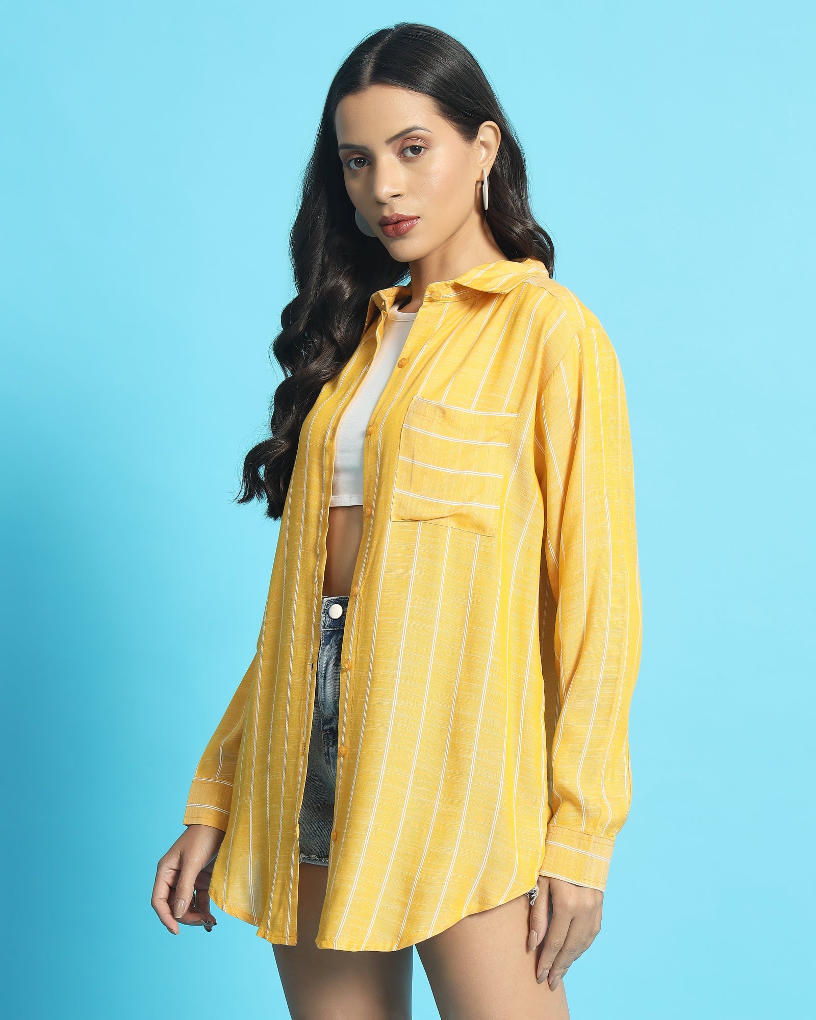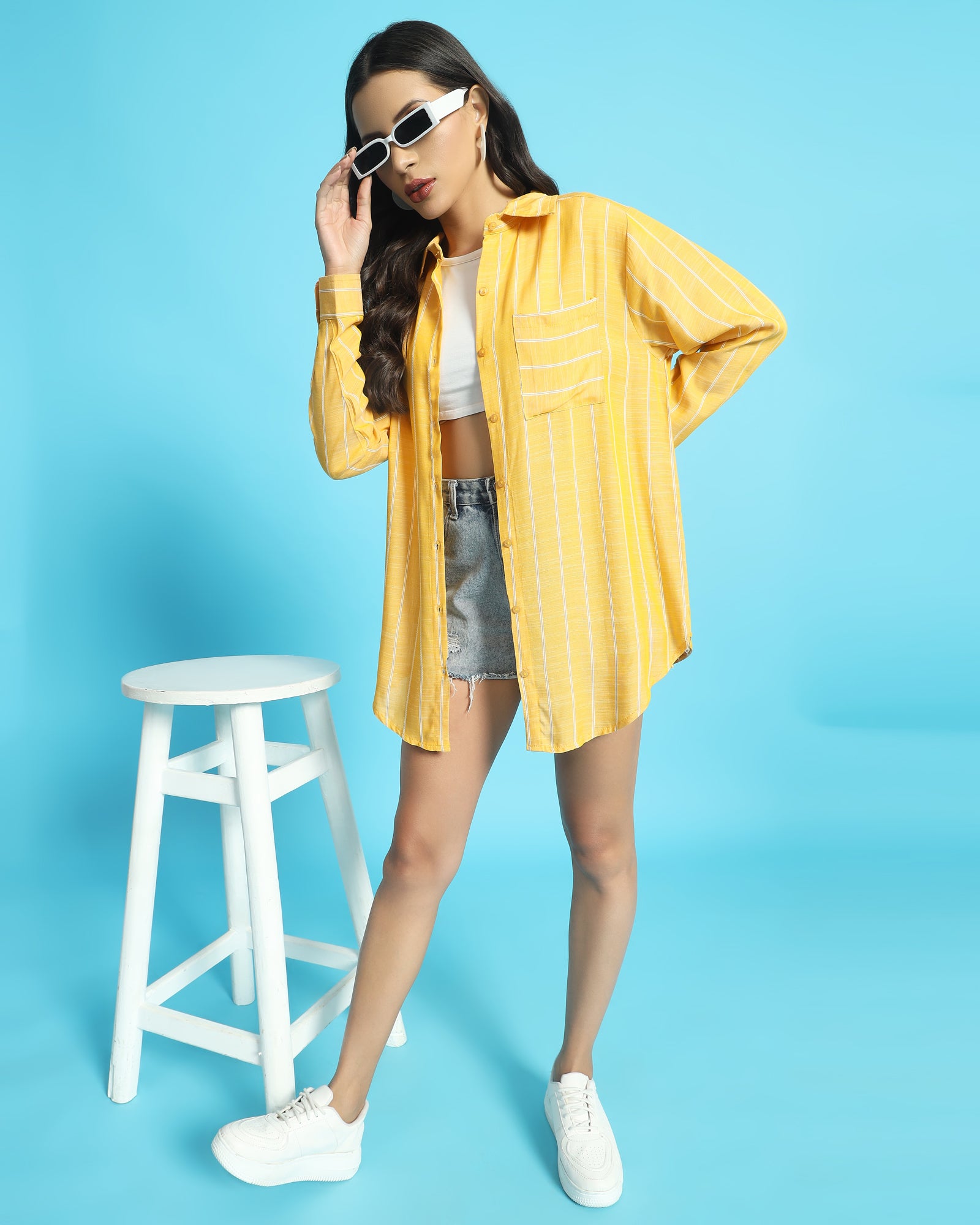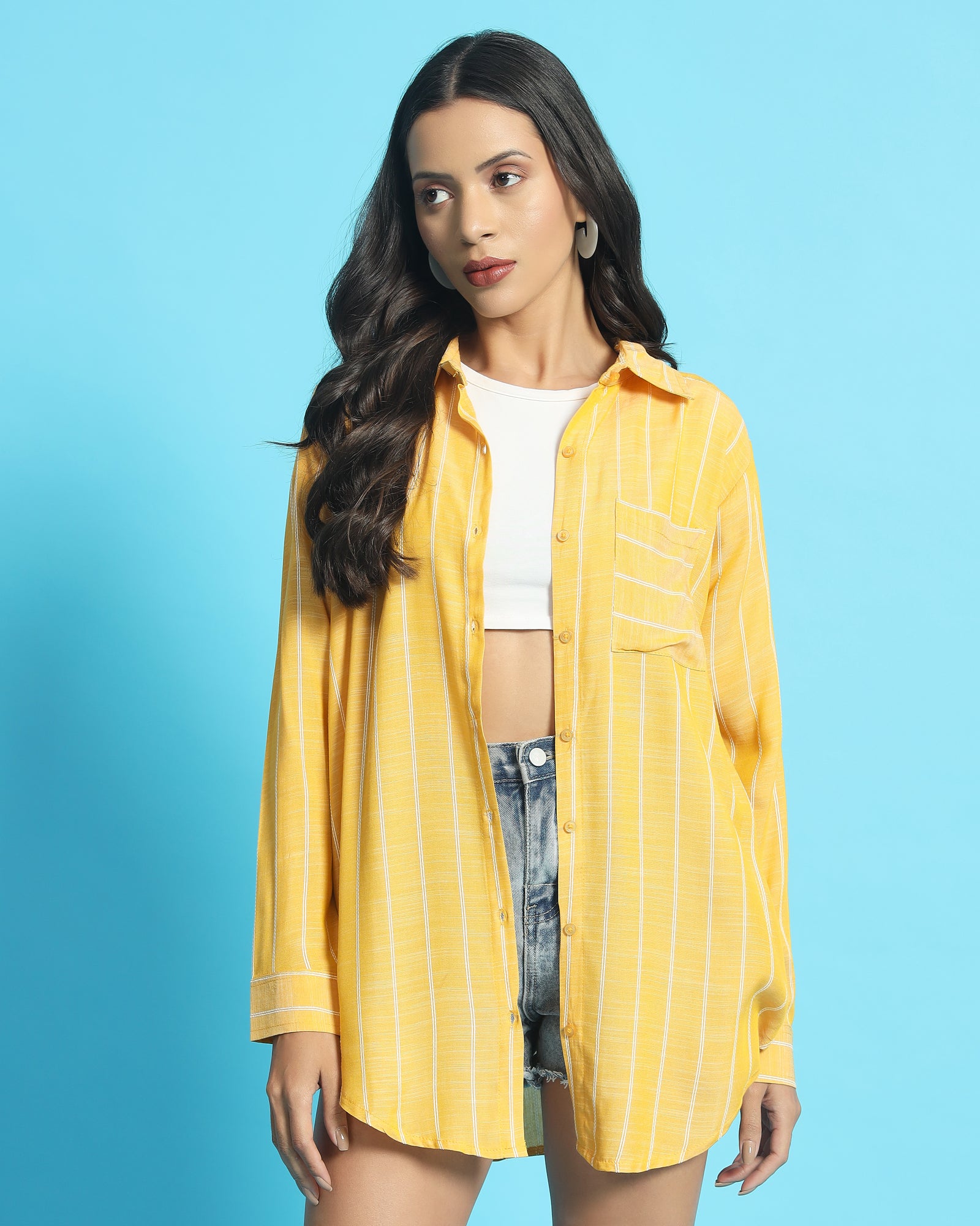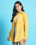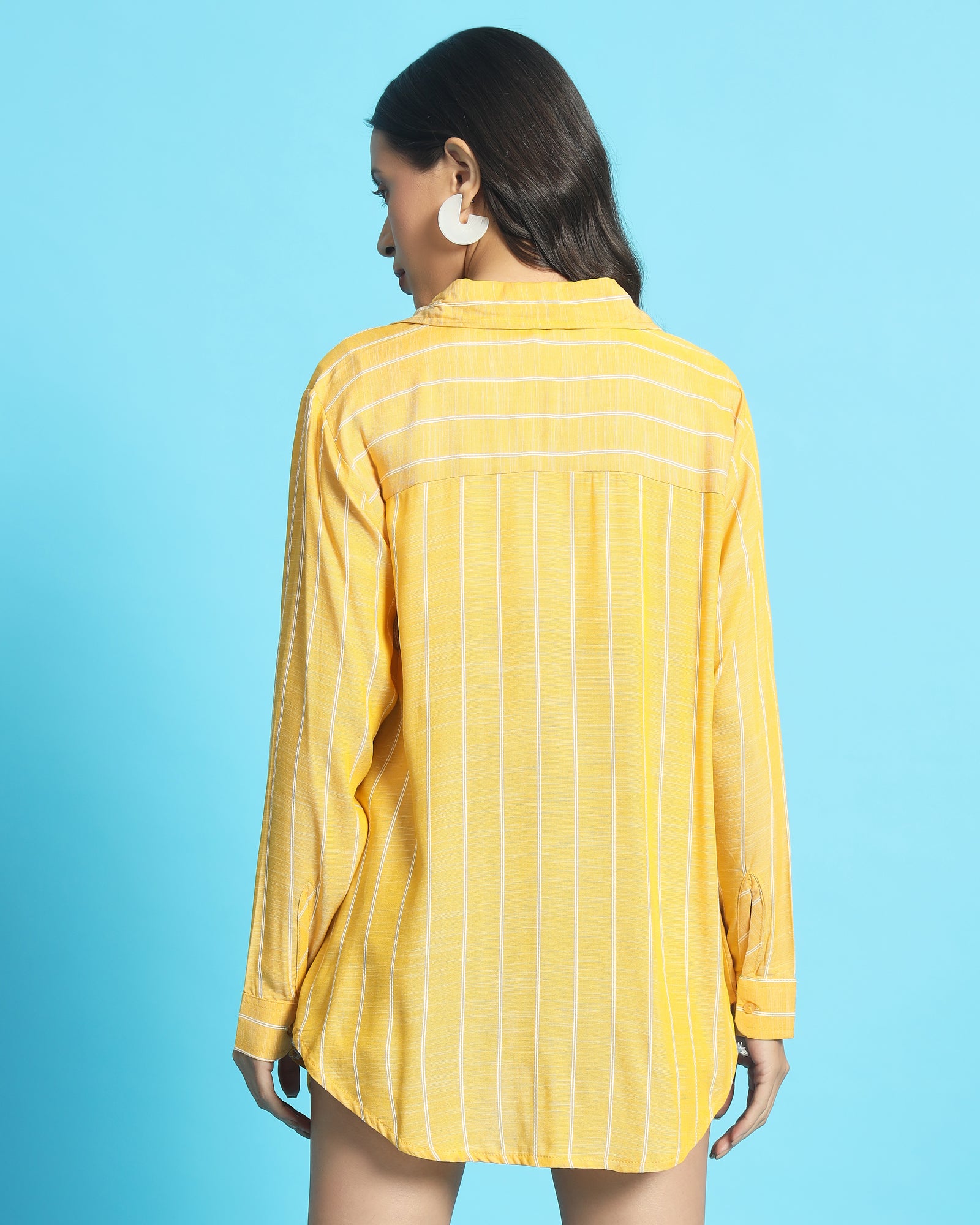 Chimpaaanzee Women Yellow & White Oversized Shirt