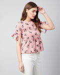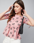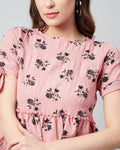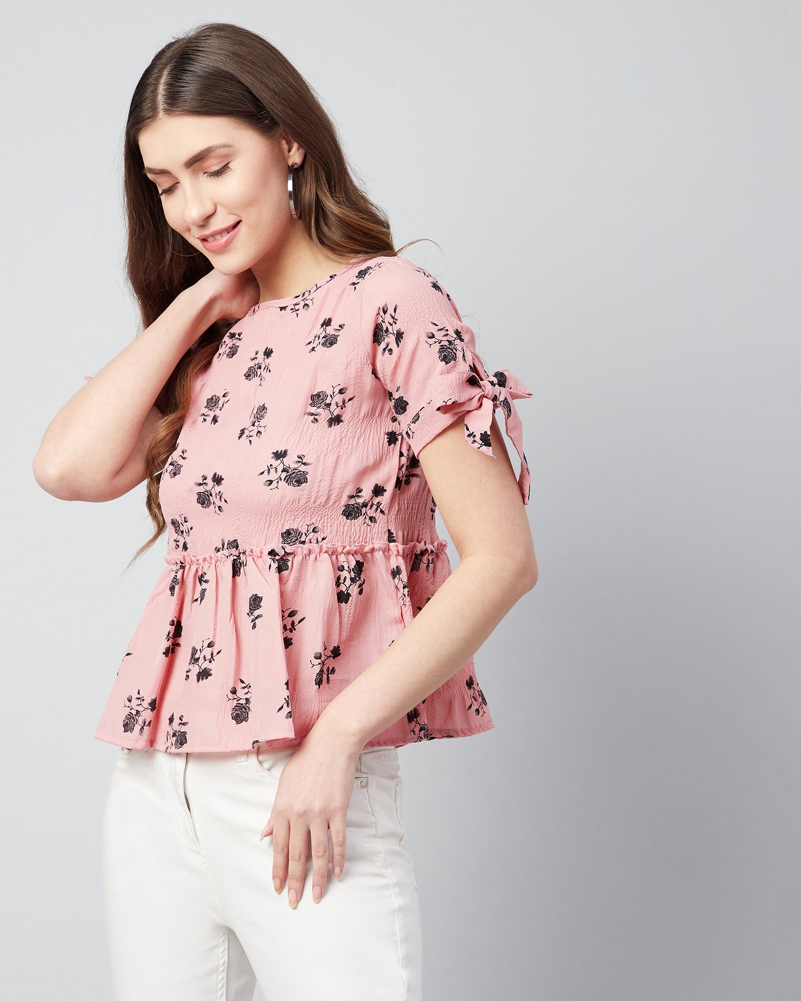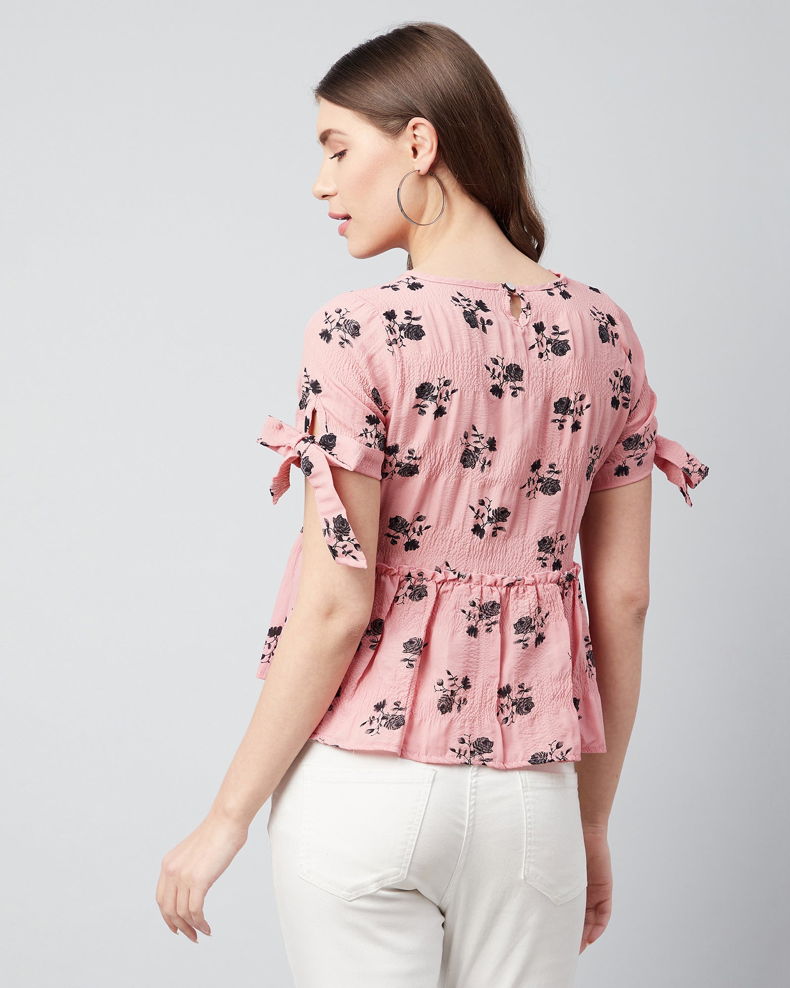 Chimpaaanzee Women Pink Flower Printed Ruffled Top