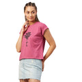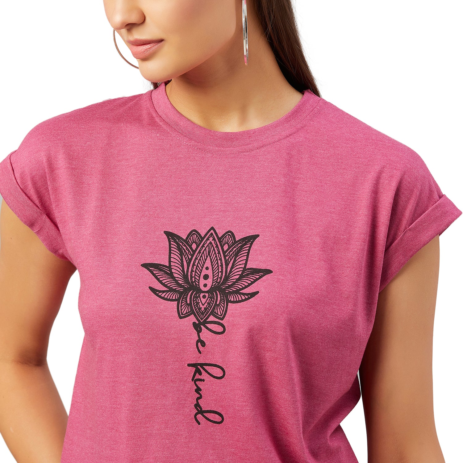 Chimpaaanzee Women Pink Folded Sleeve Round Neck T-shirt