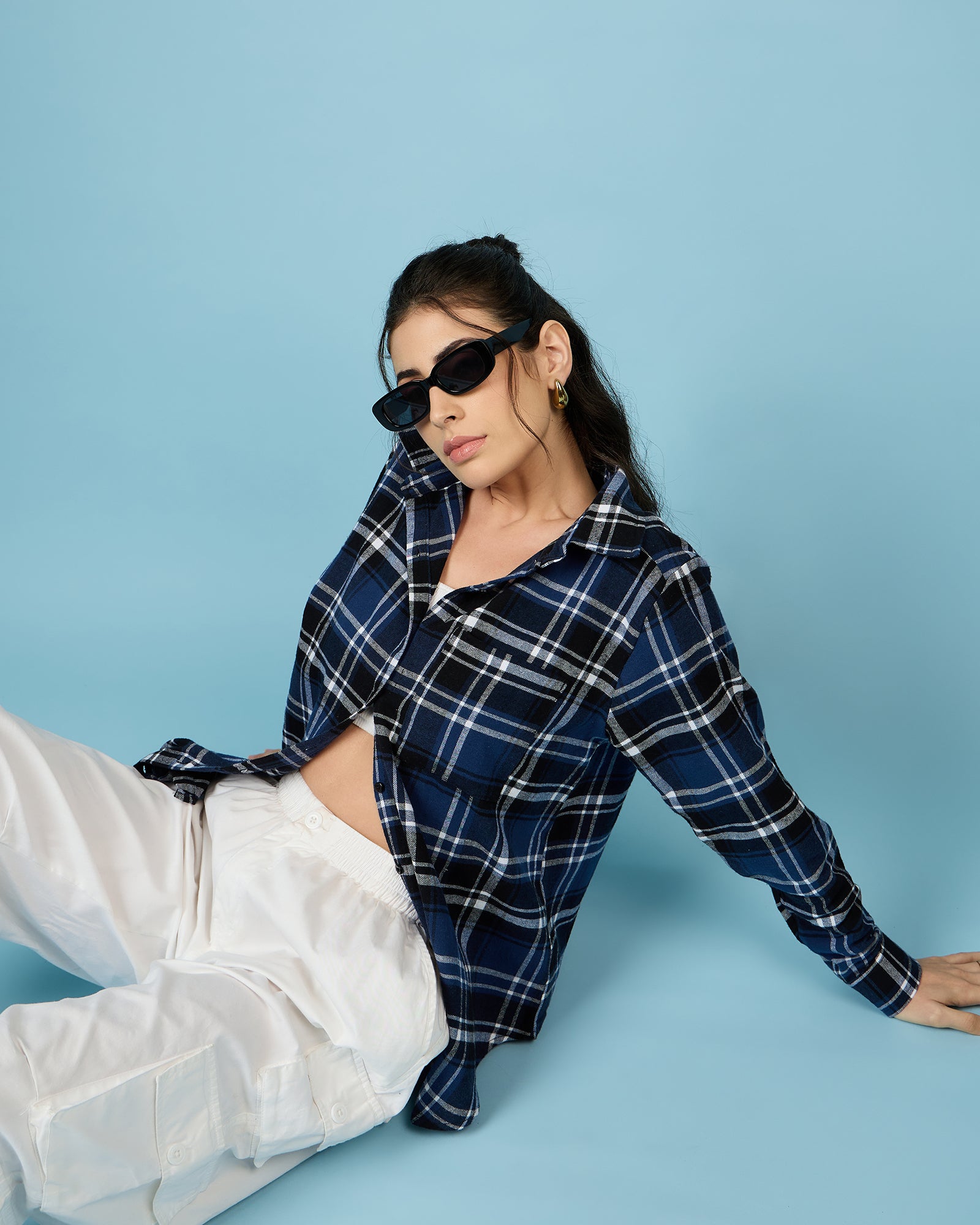 Chimpaaanzee Women Navy & Black Oversized Shirt