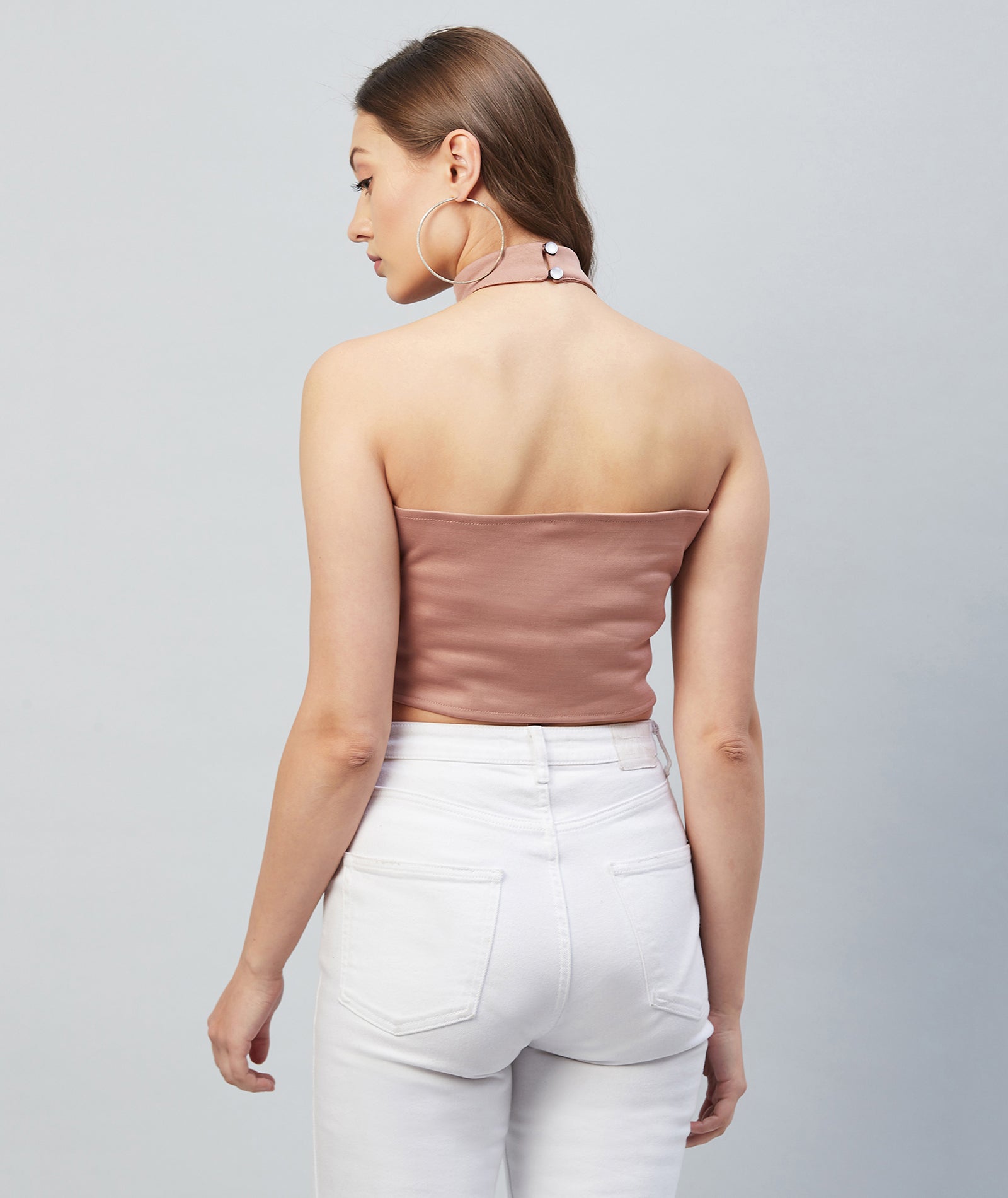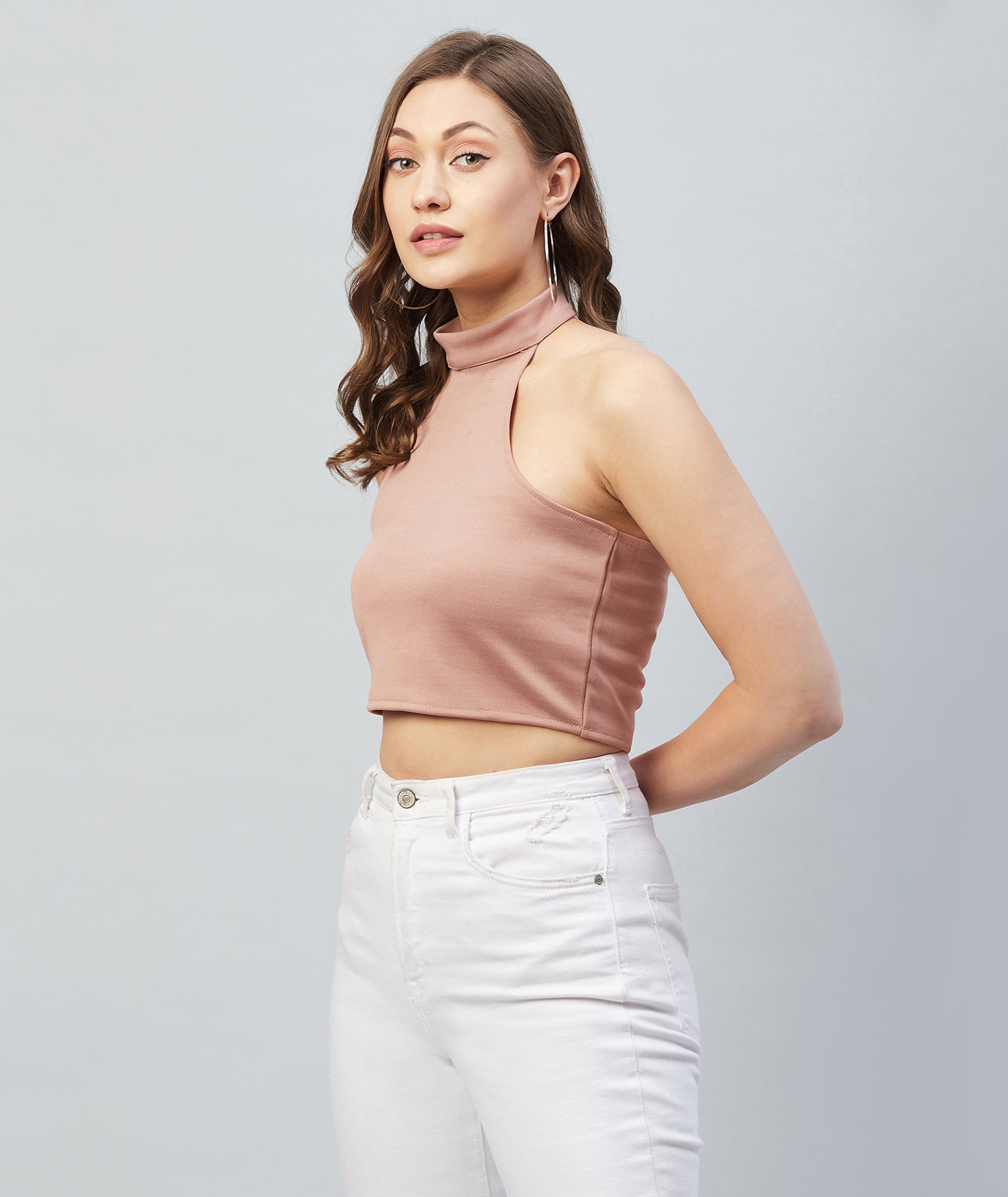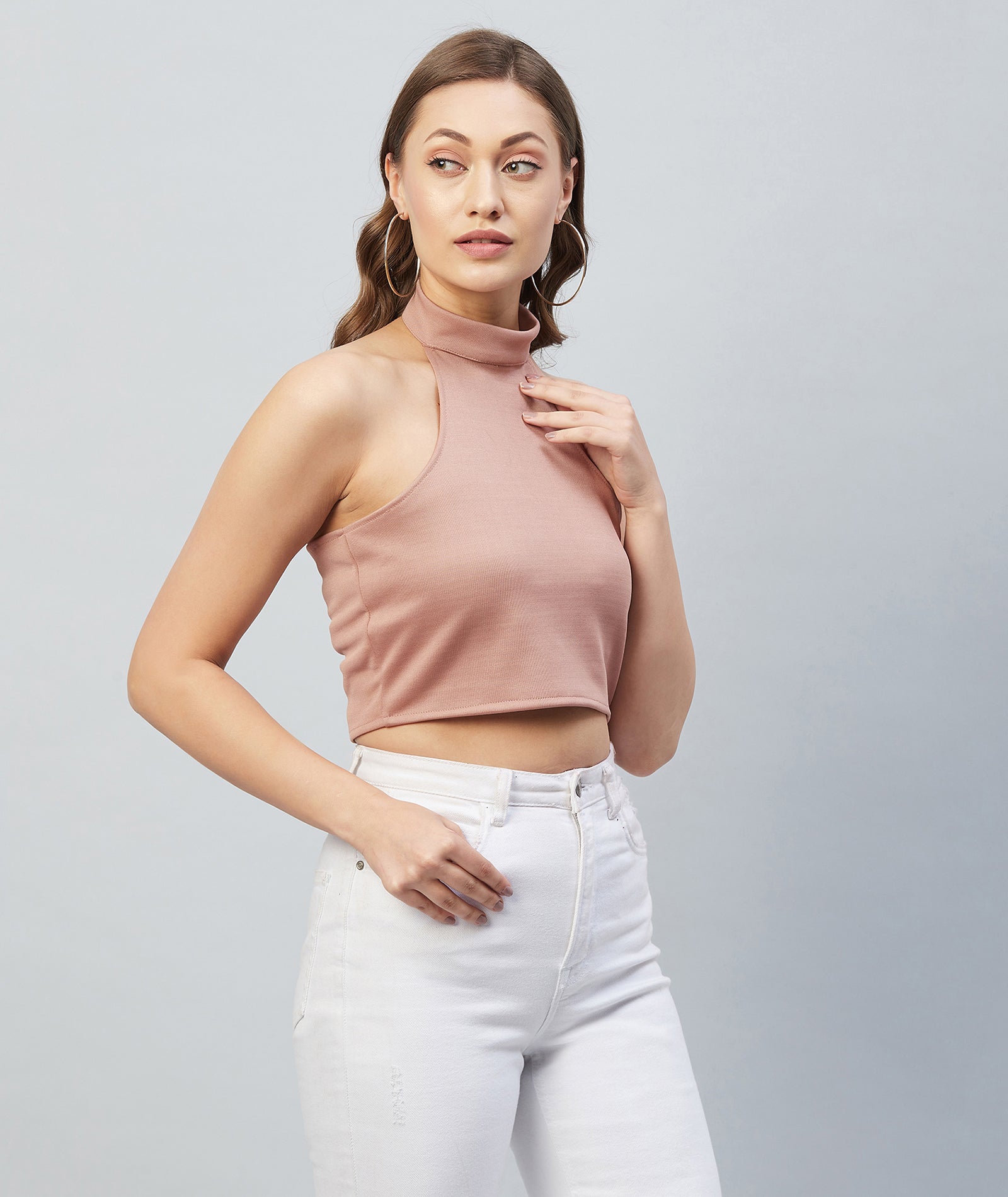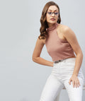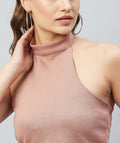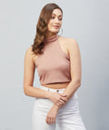 Chimpaaanzee Women Pink Solid High Neck Crop Top
