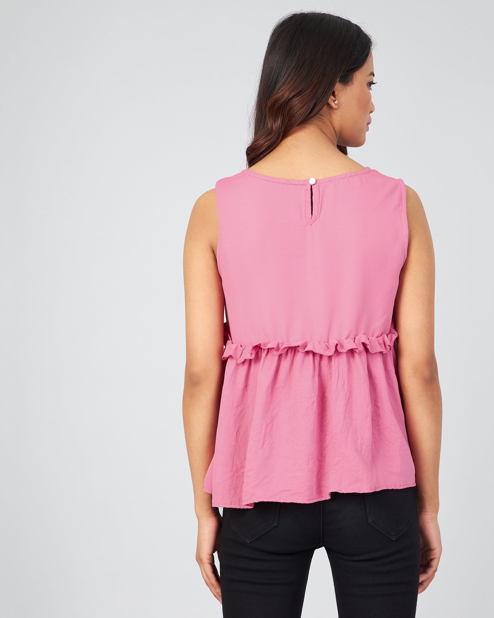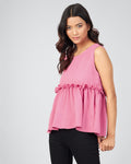 Chimpaaanzee Women Pink Solid Peplum Style Top