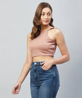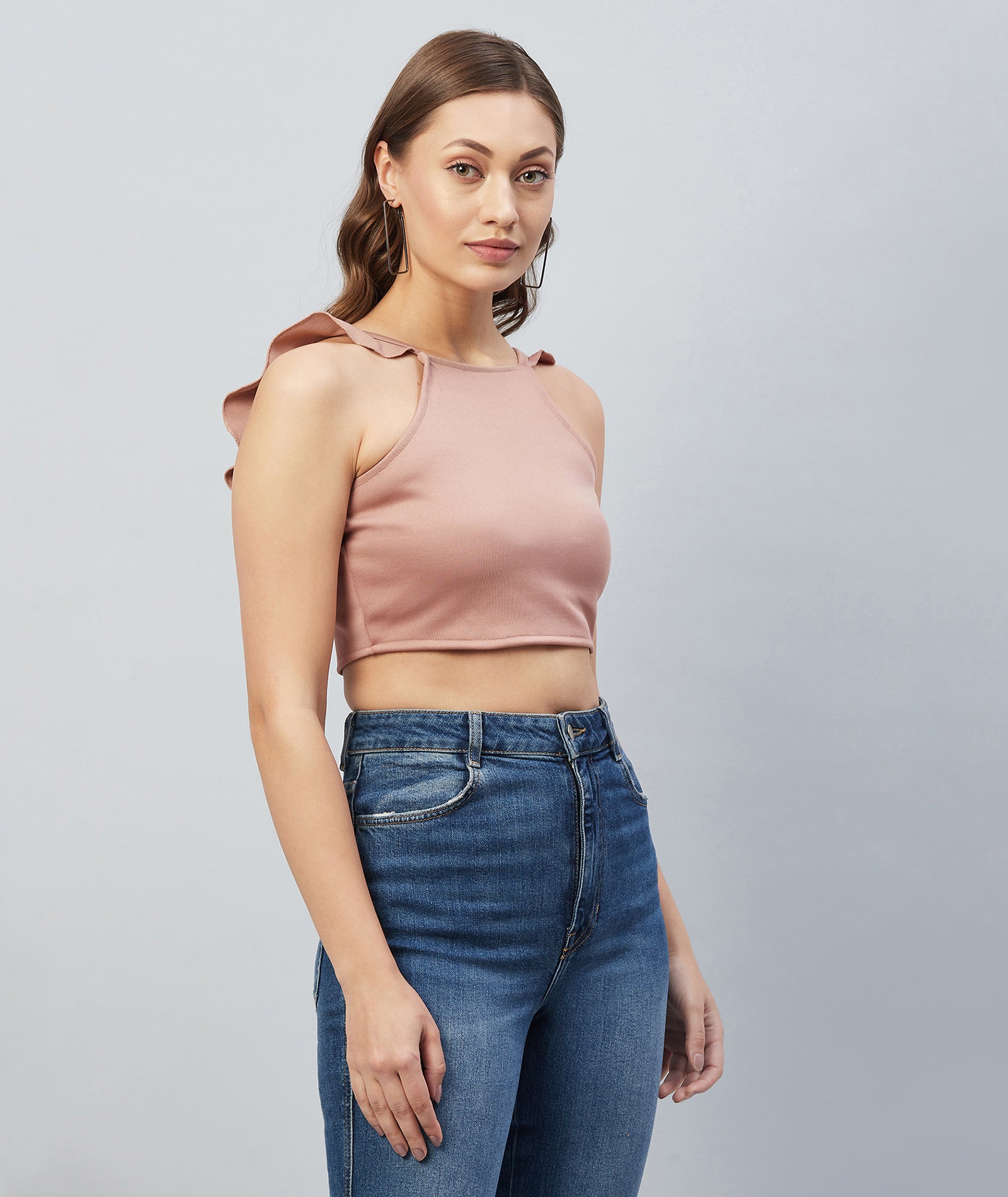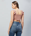 Chimpaaanzee Women Pink Solid Ruffled Strapped Crop