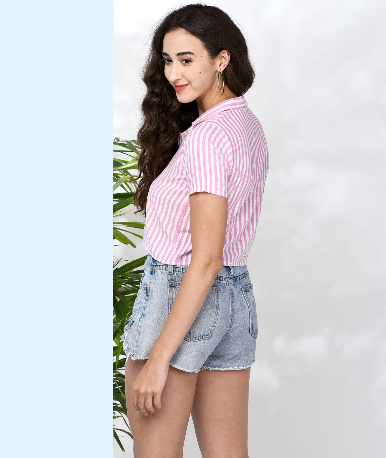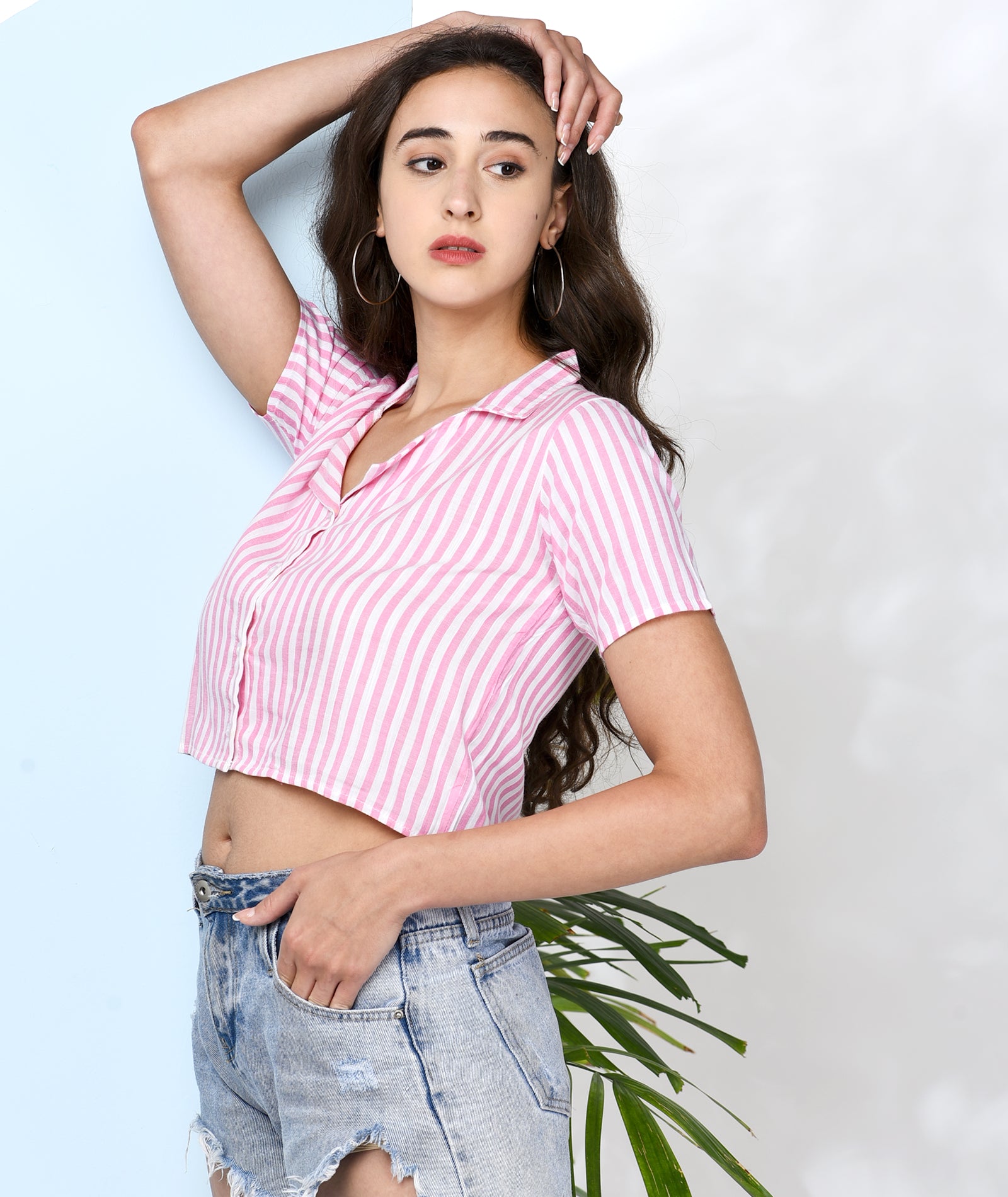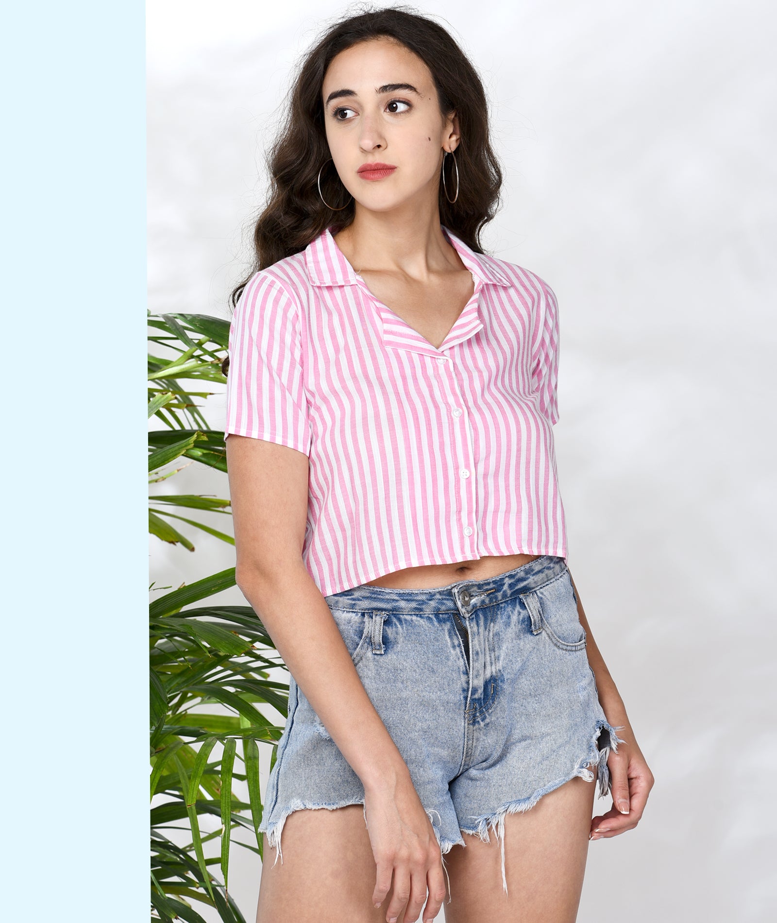 Chimpaaanzee Women Pink Viscose Crop striped Shirt