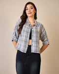 Chimpaaanzee Women Navy & White Crop Shirt