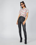 This model has a height of 5 feet 6 inches and is wearing a Top of Size "S"