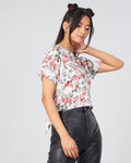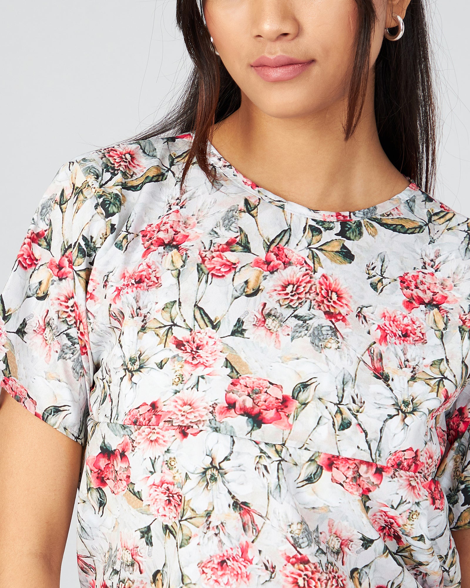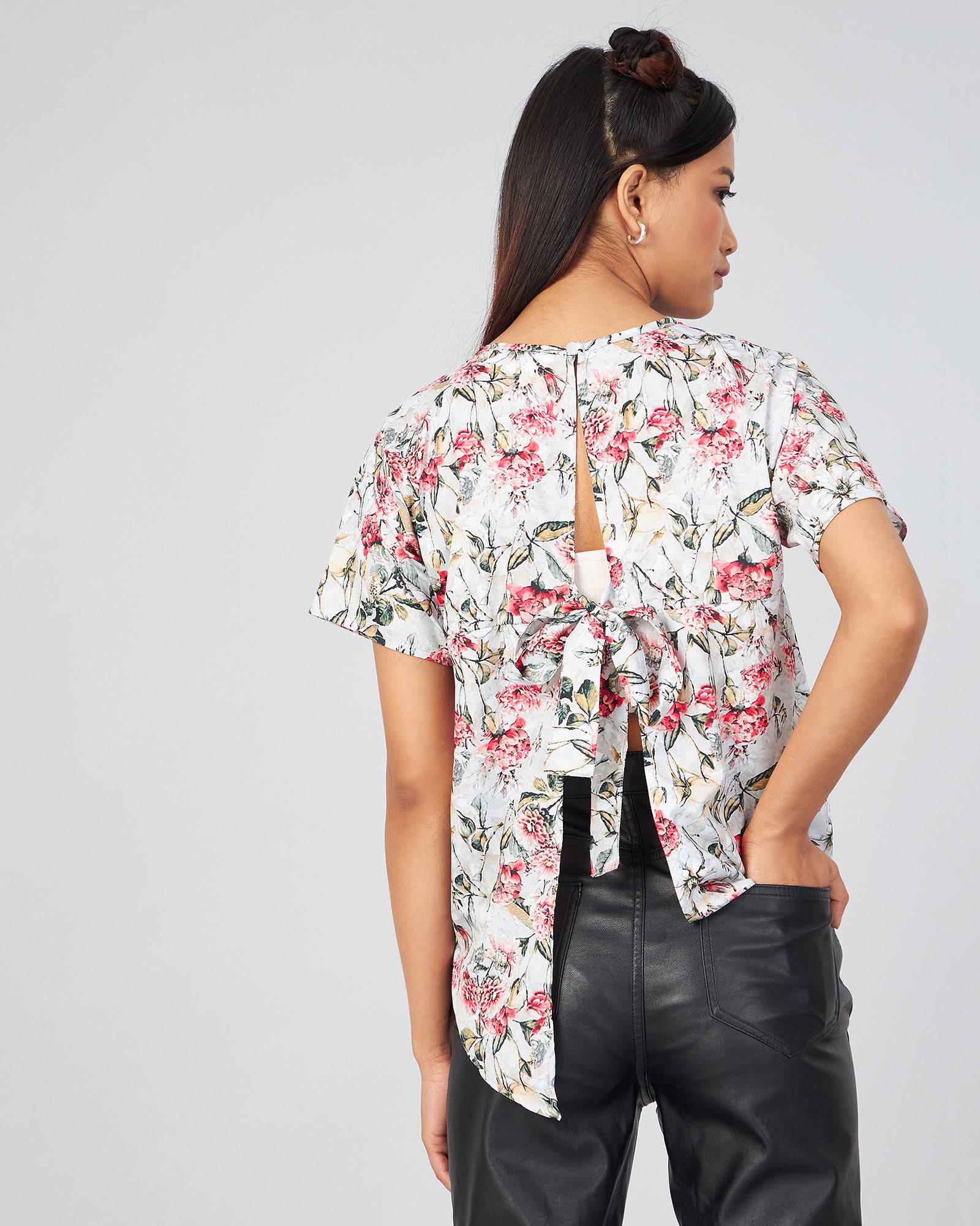 Chimpaaanzee Women Pista Green Flower Printed back side open Top