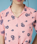 This model has a height of 5 feet 7 inches and is wearing a Top of Size "S"