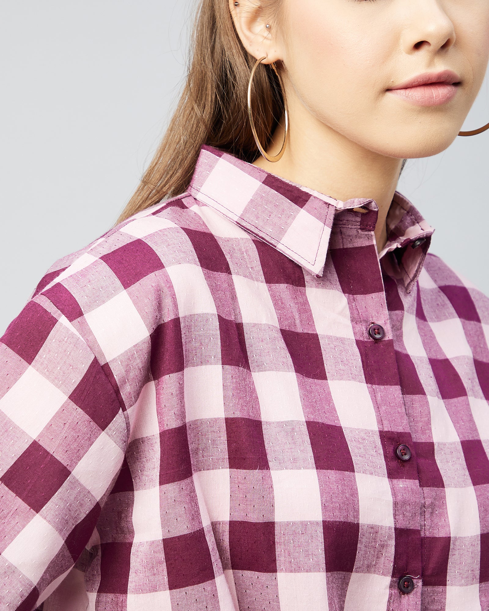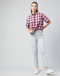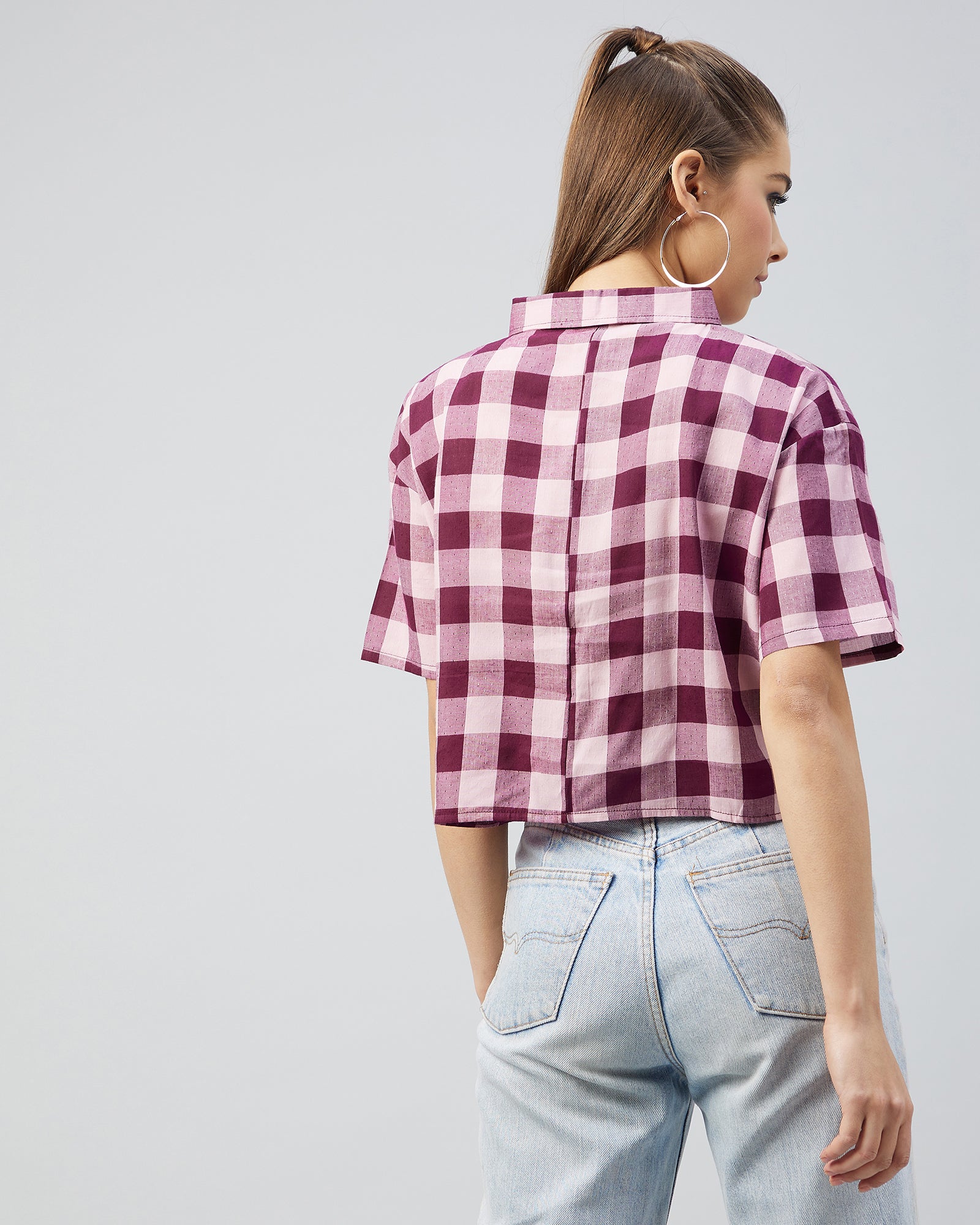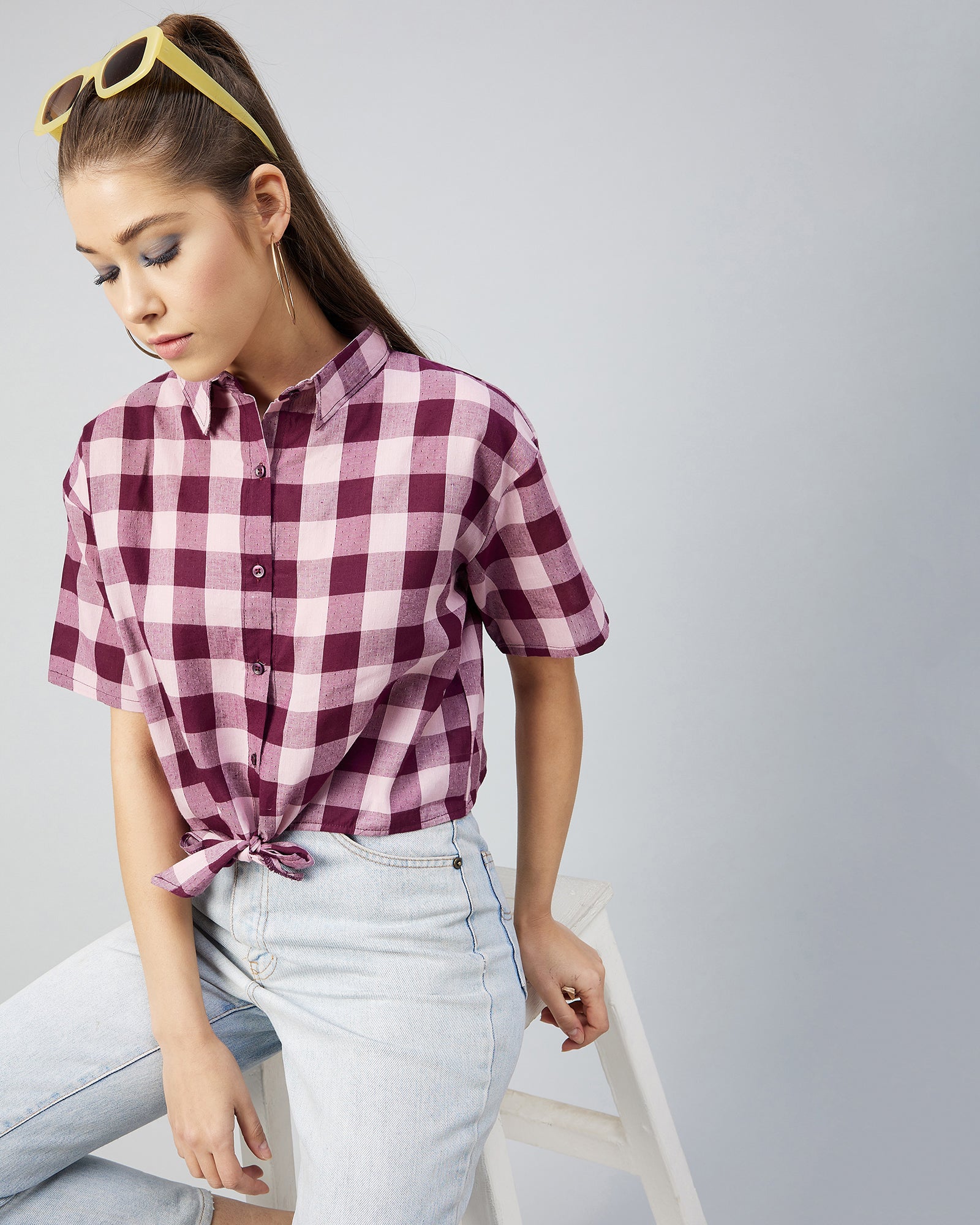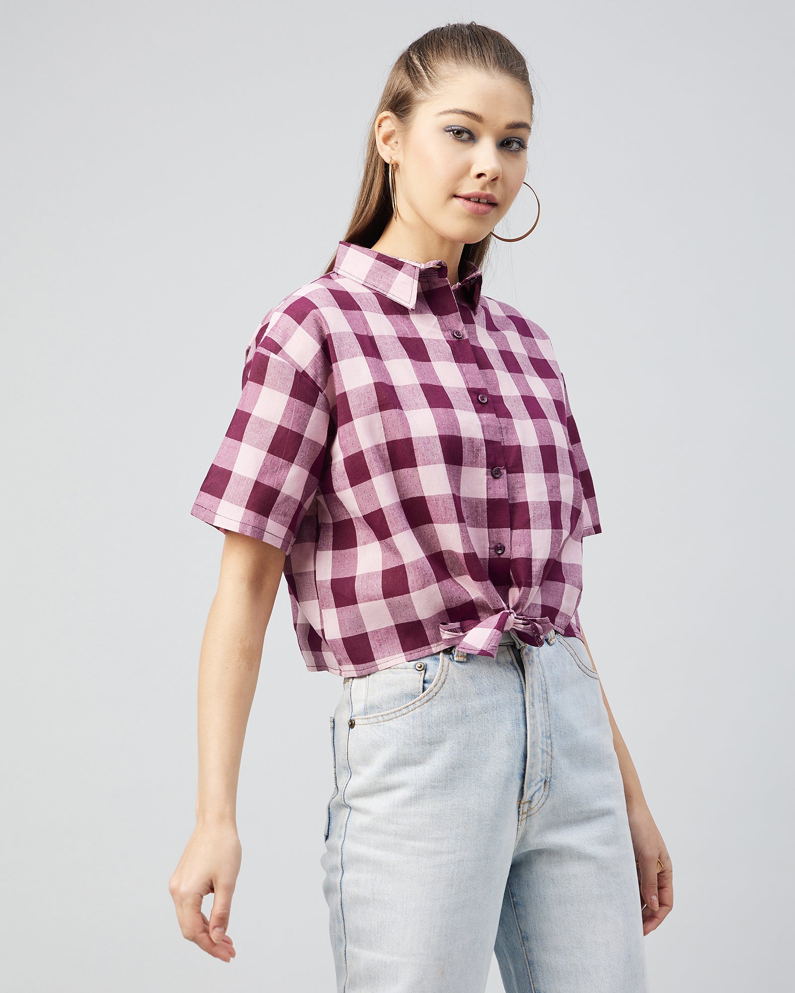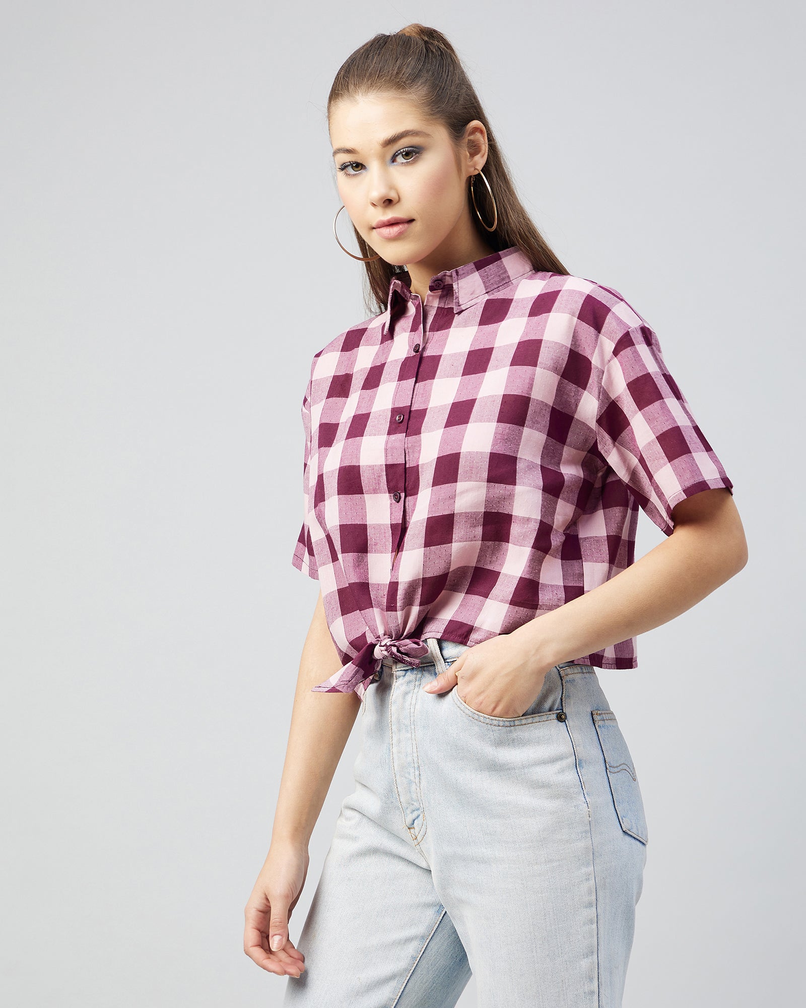 Chimpaaanzee Women Purple Half Sleeve Knotted Shirt