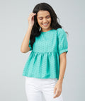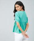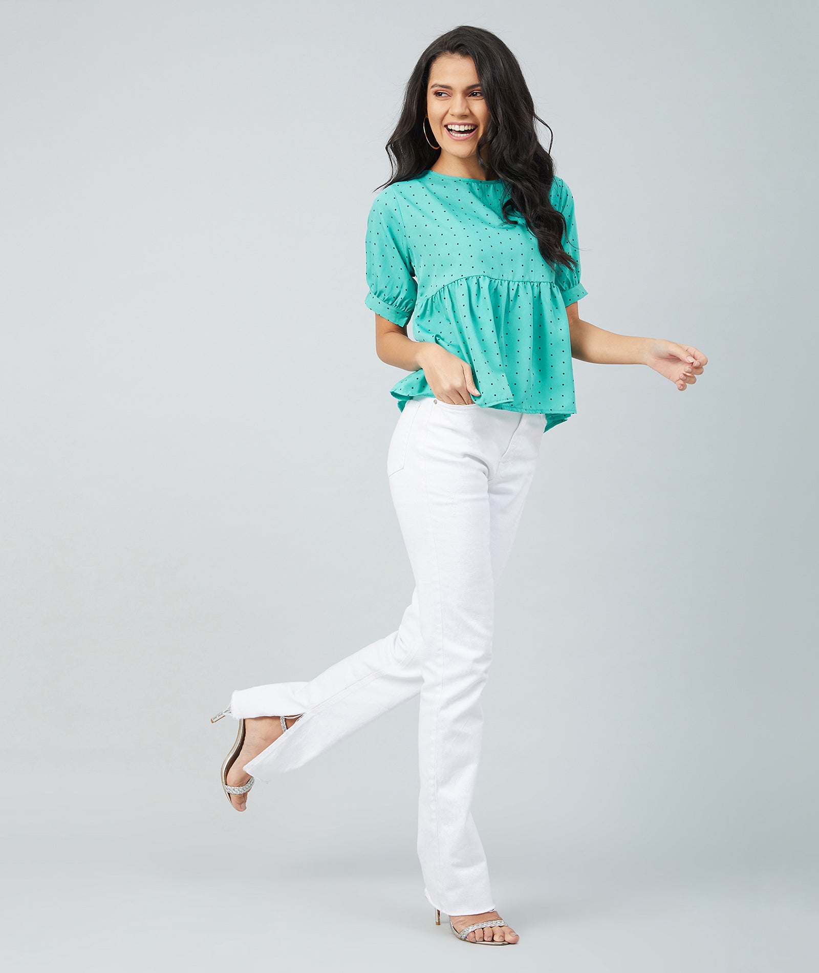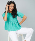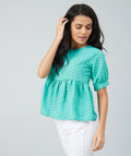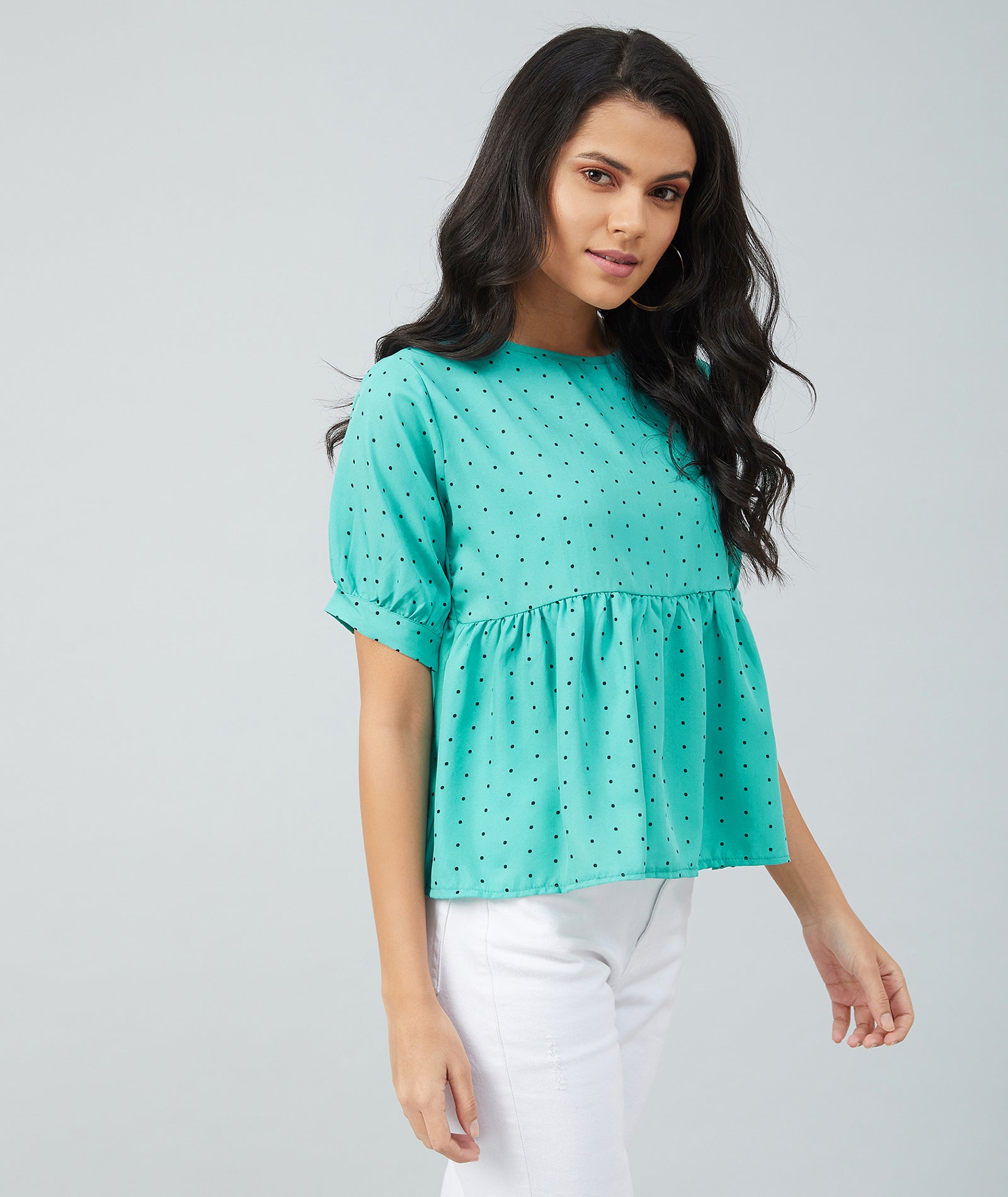 Chimpaaanzee women Rama Green Crepe Polka Doted Half Sleeve Top