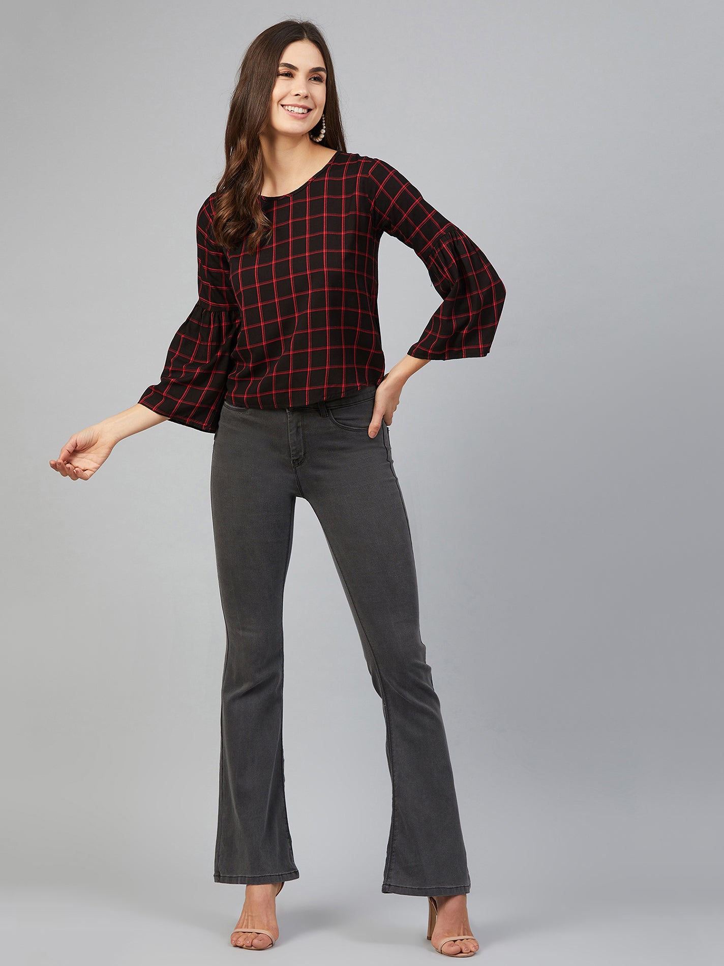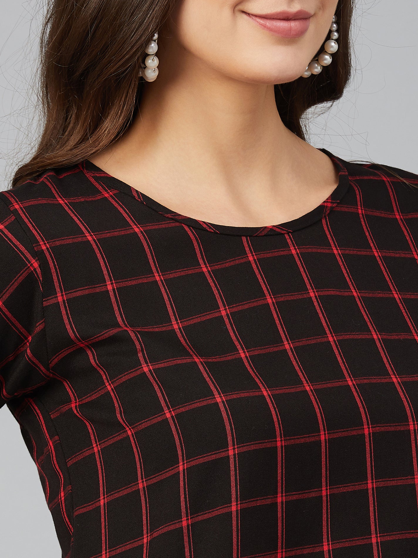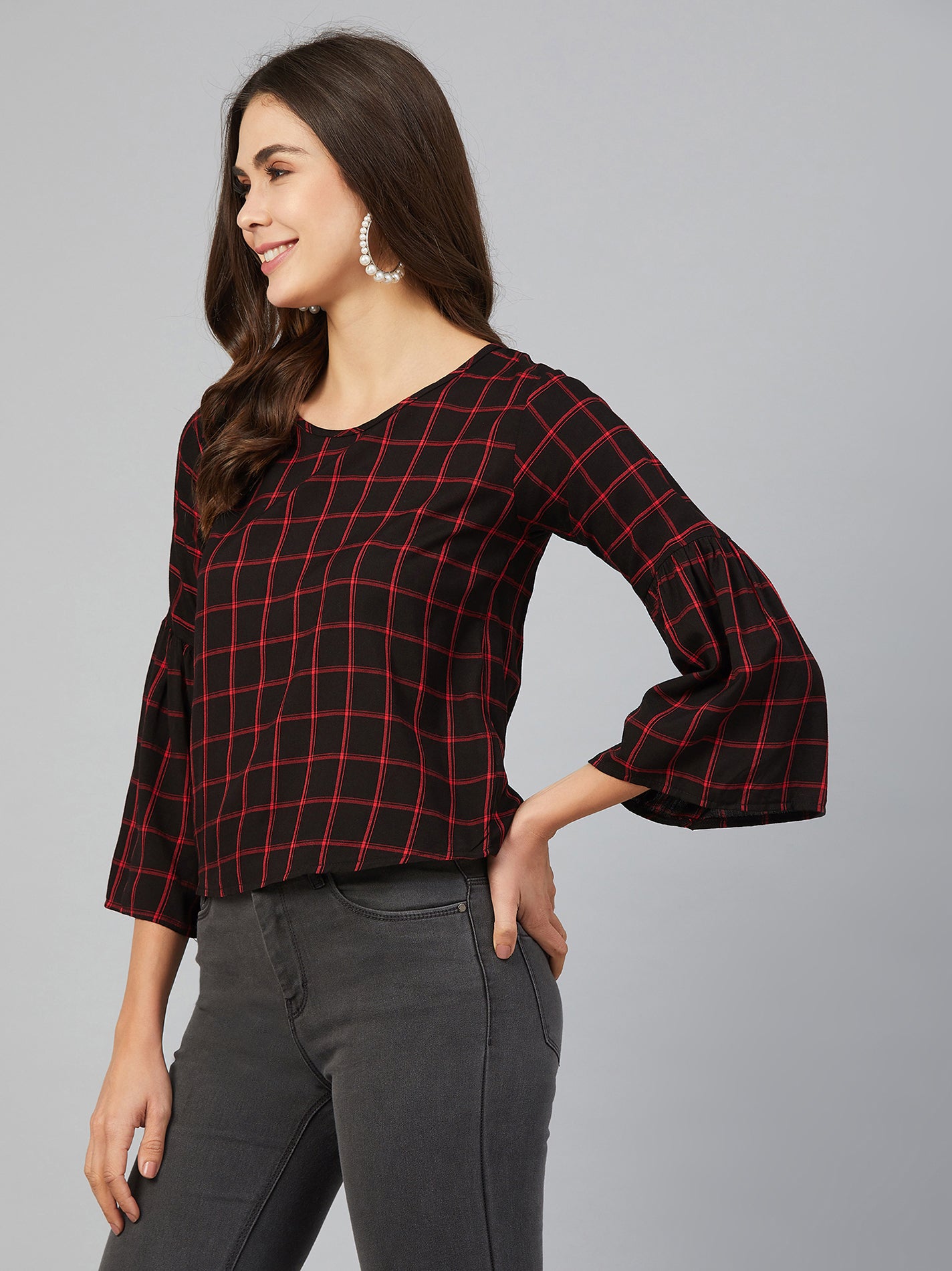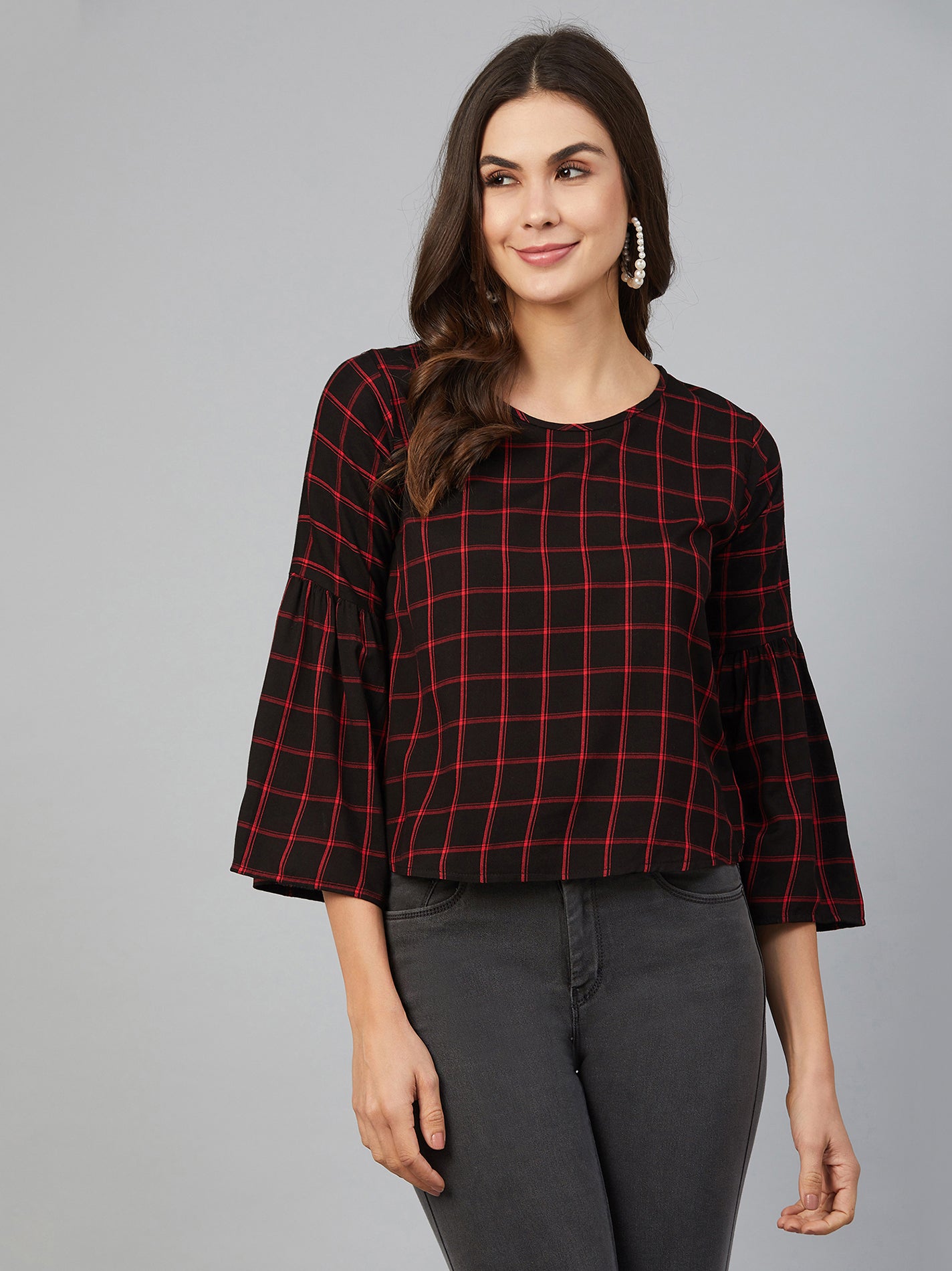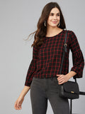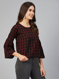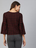 Chimpaaanzee Women Red and Black Checks Cold Shoulder Top