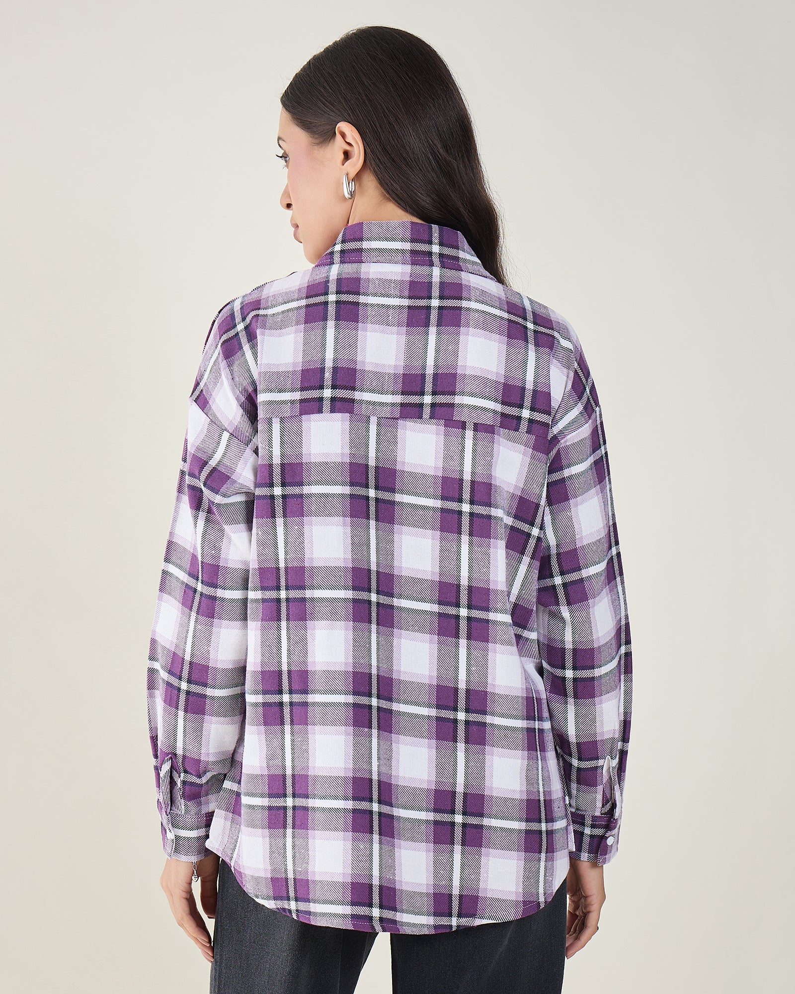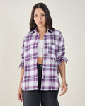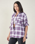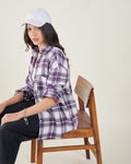 Chimpaaanzee Women Purple & White Oversized Shirt