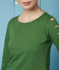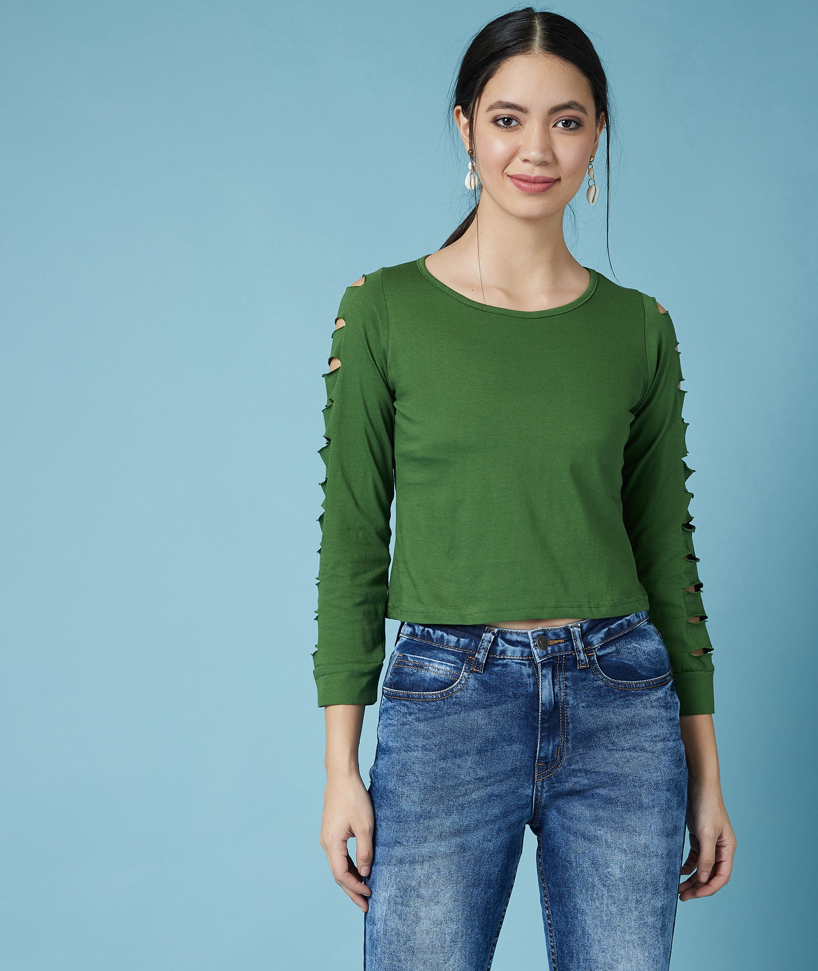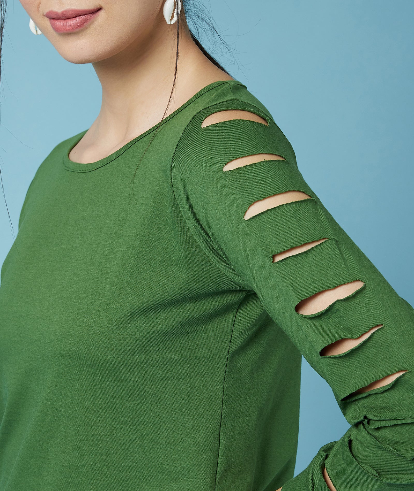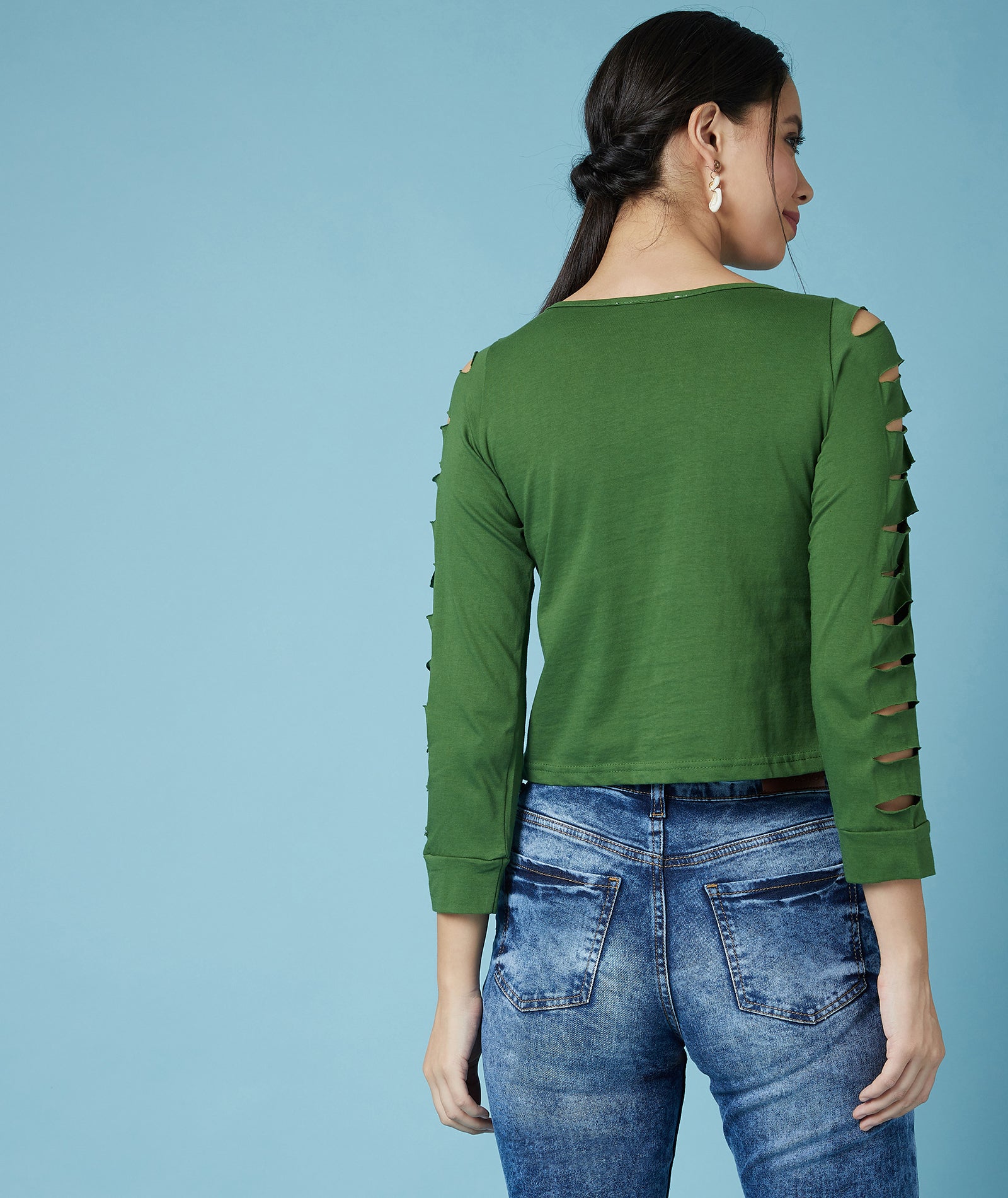 Chimpaaanzee Women Ripped Sleeve Cropped Green Tee