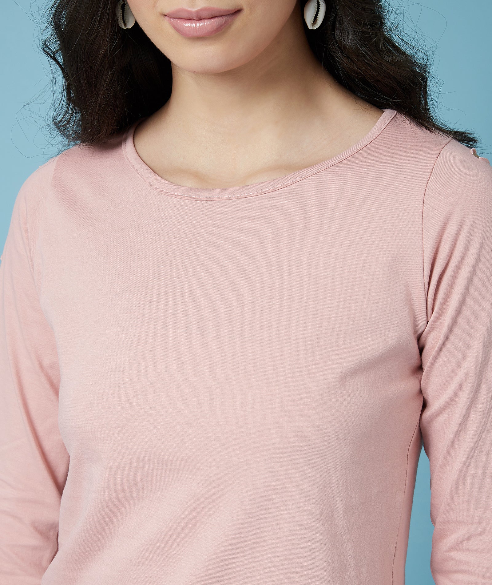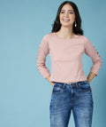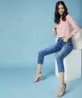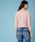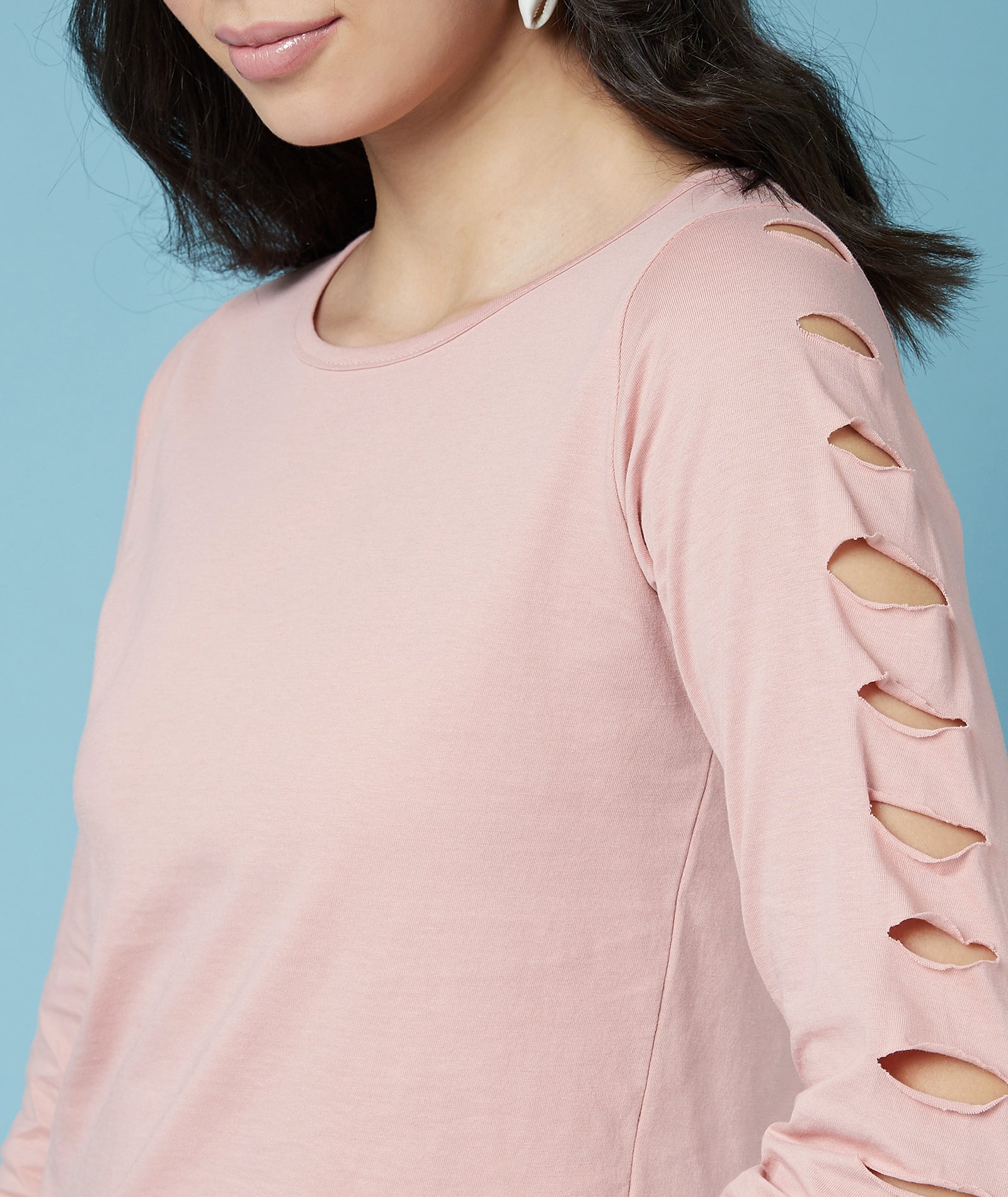 Chimpaaanzee Women Ripped Sleeve Cropped Pink Tee