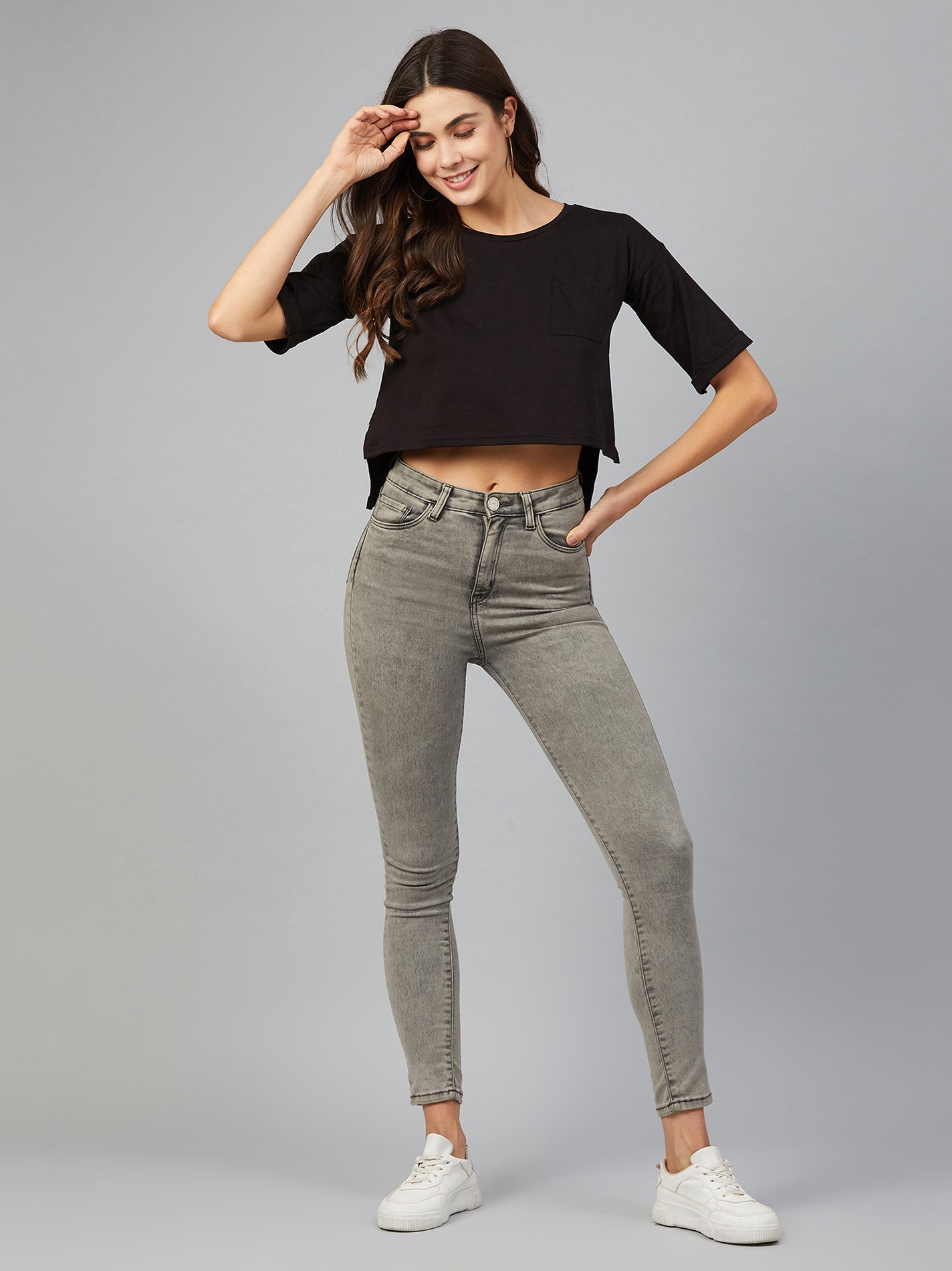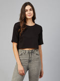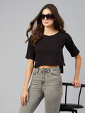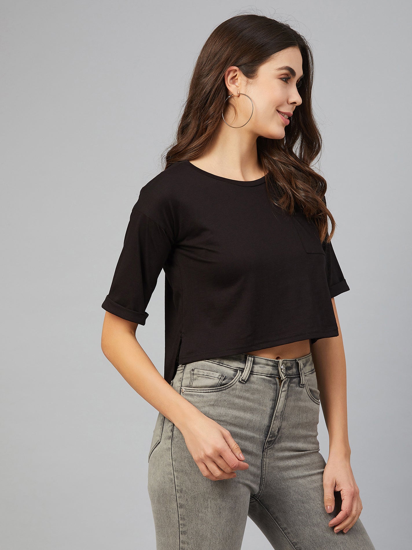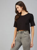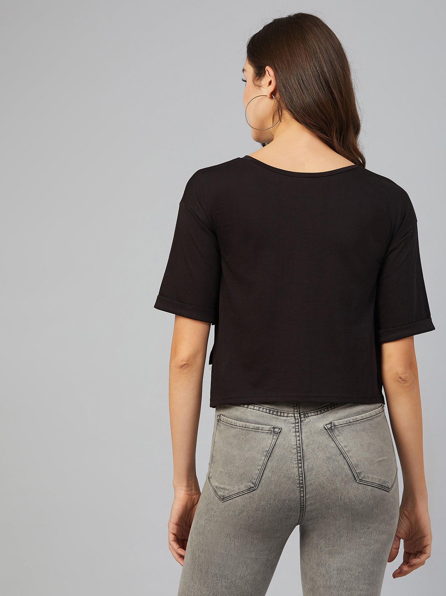 Chimpaaanzee Women Round Neck Assymetrical Crop T-shirt