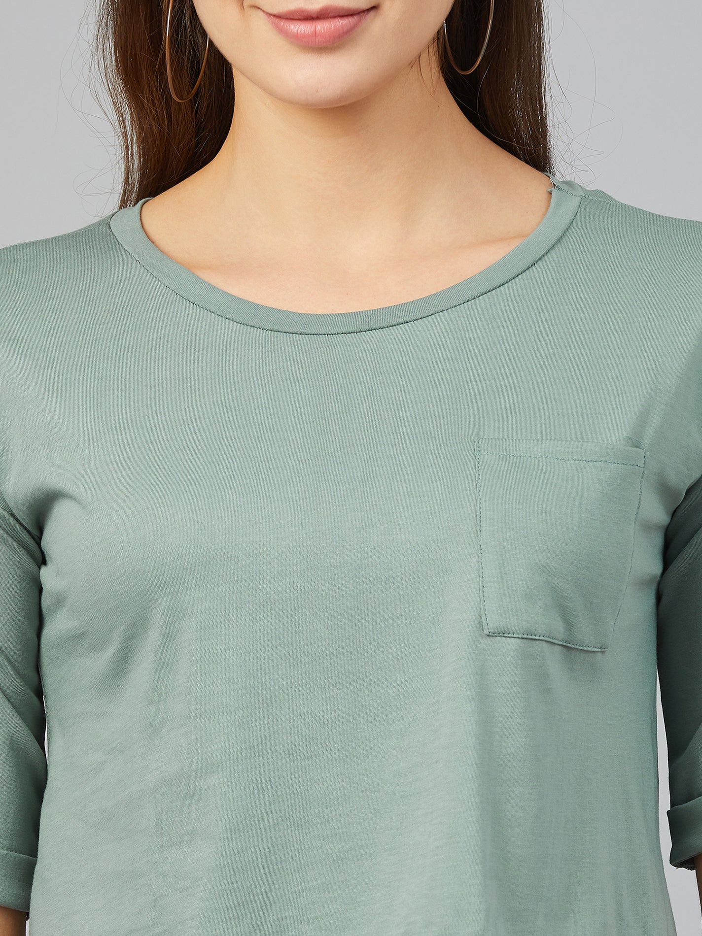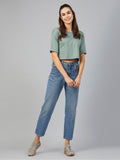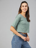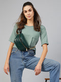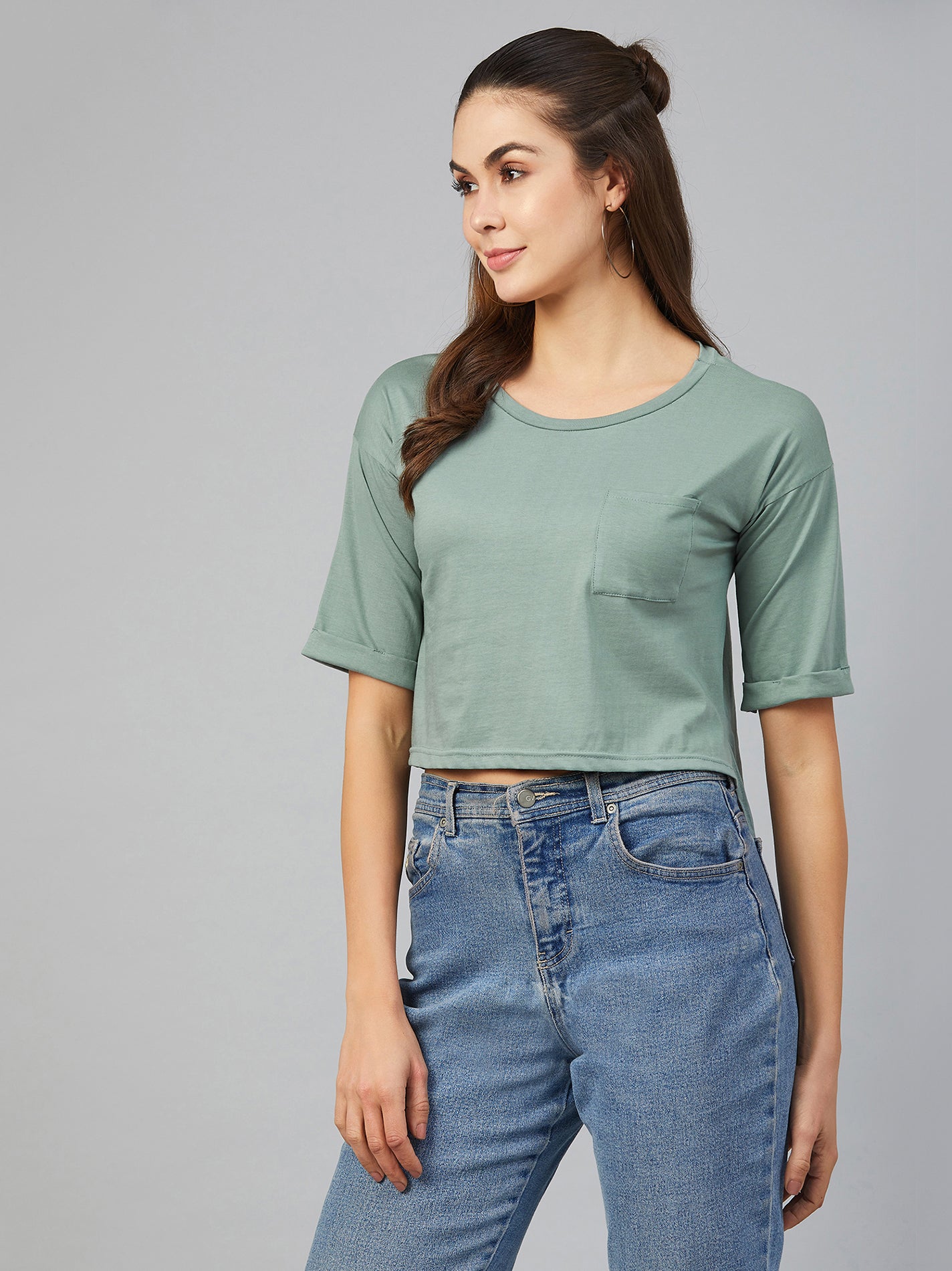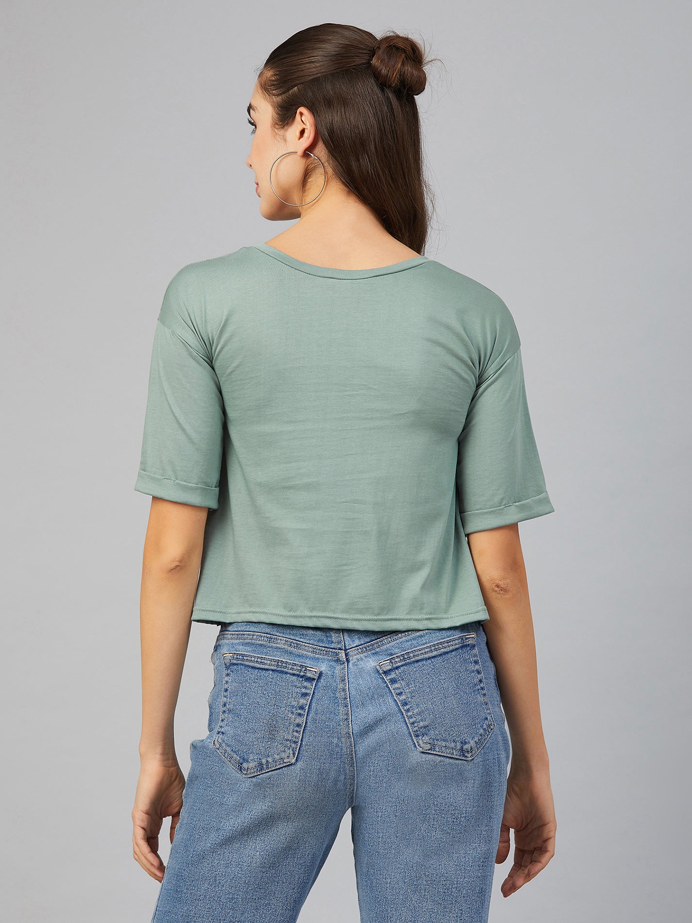 Chimpaaanzee Women Round Neck Assymetrical Crop T-shirt